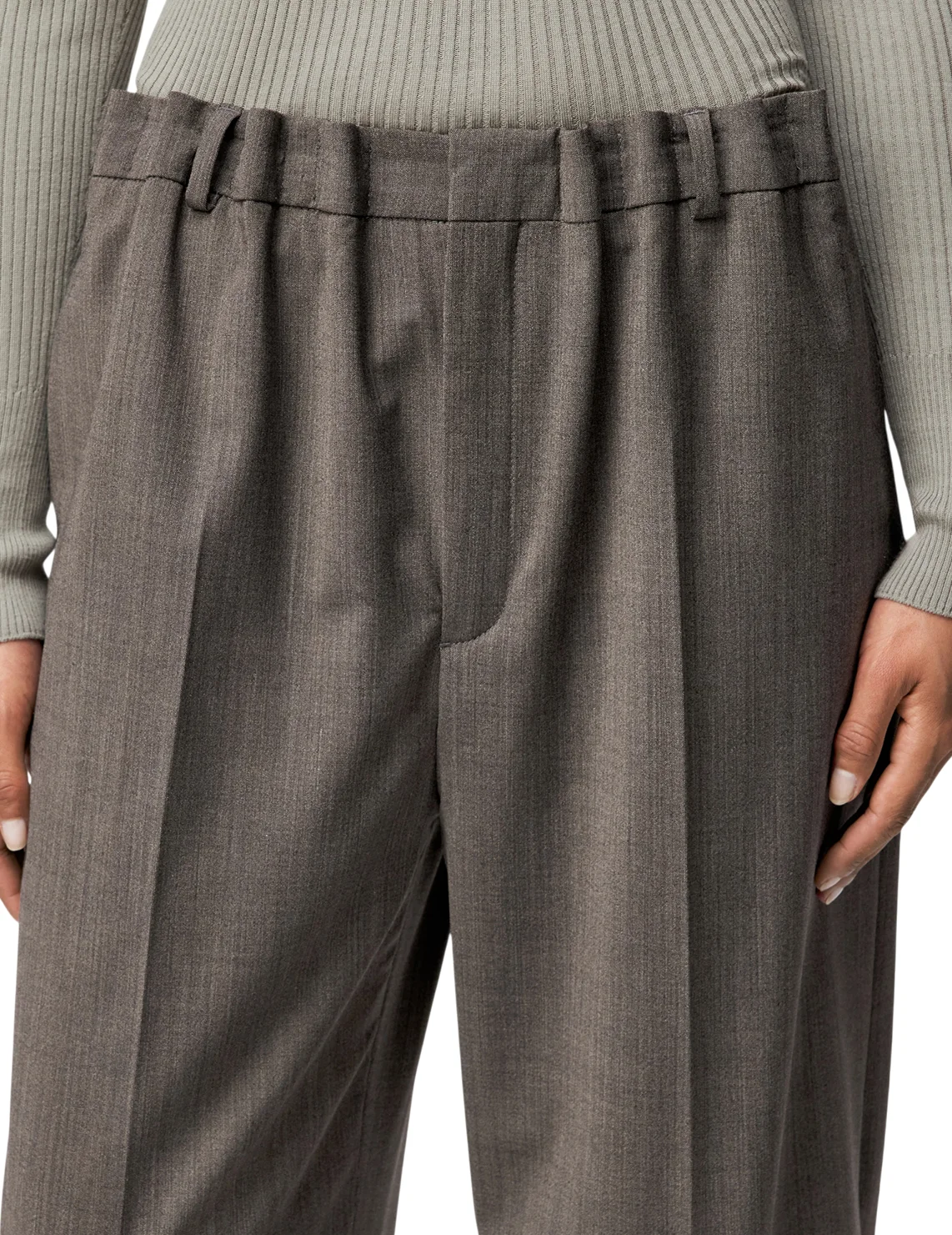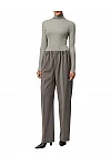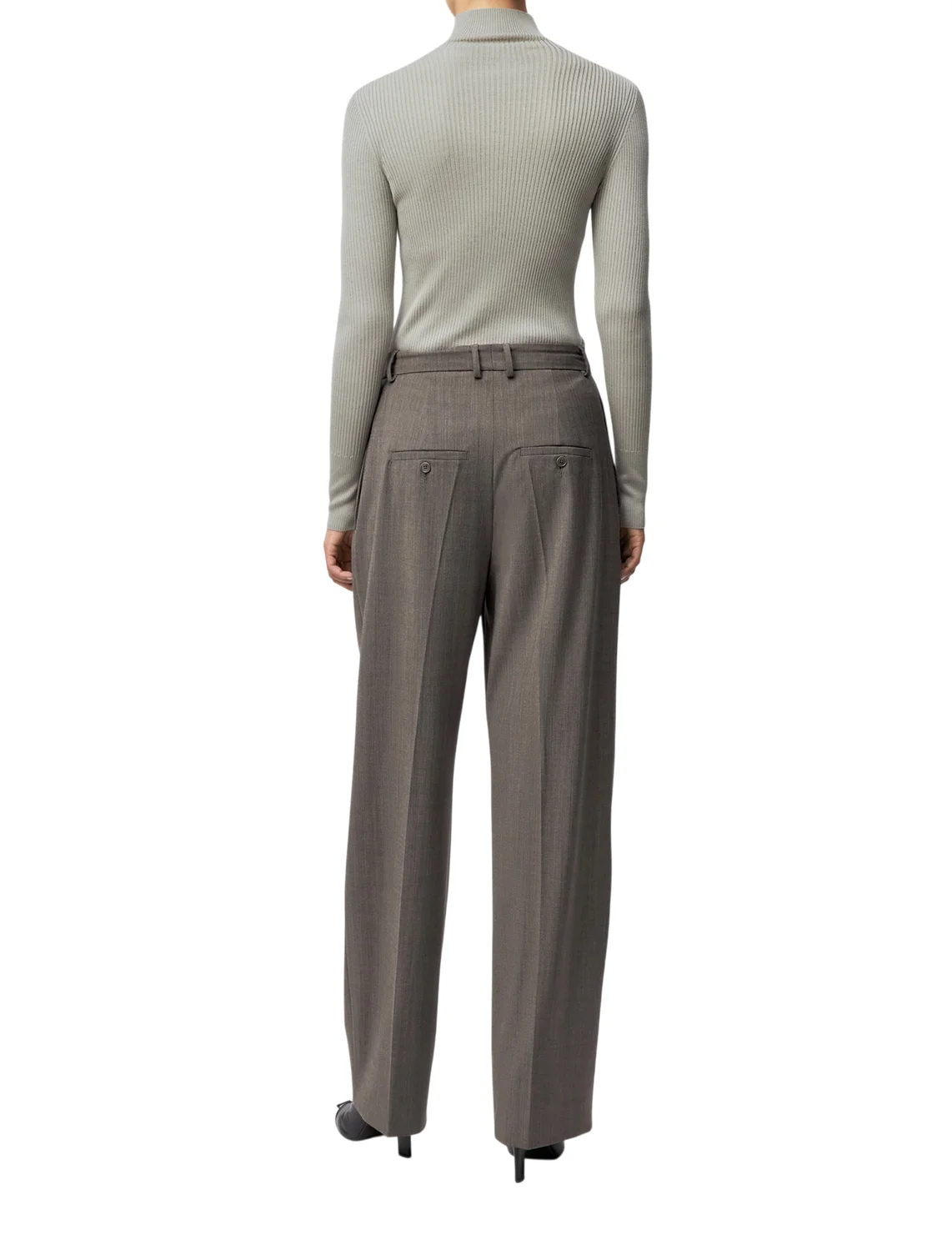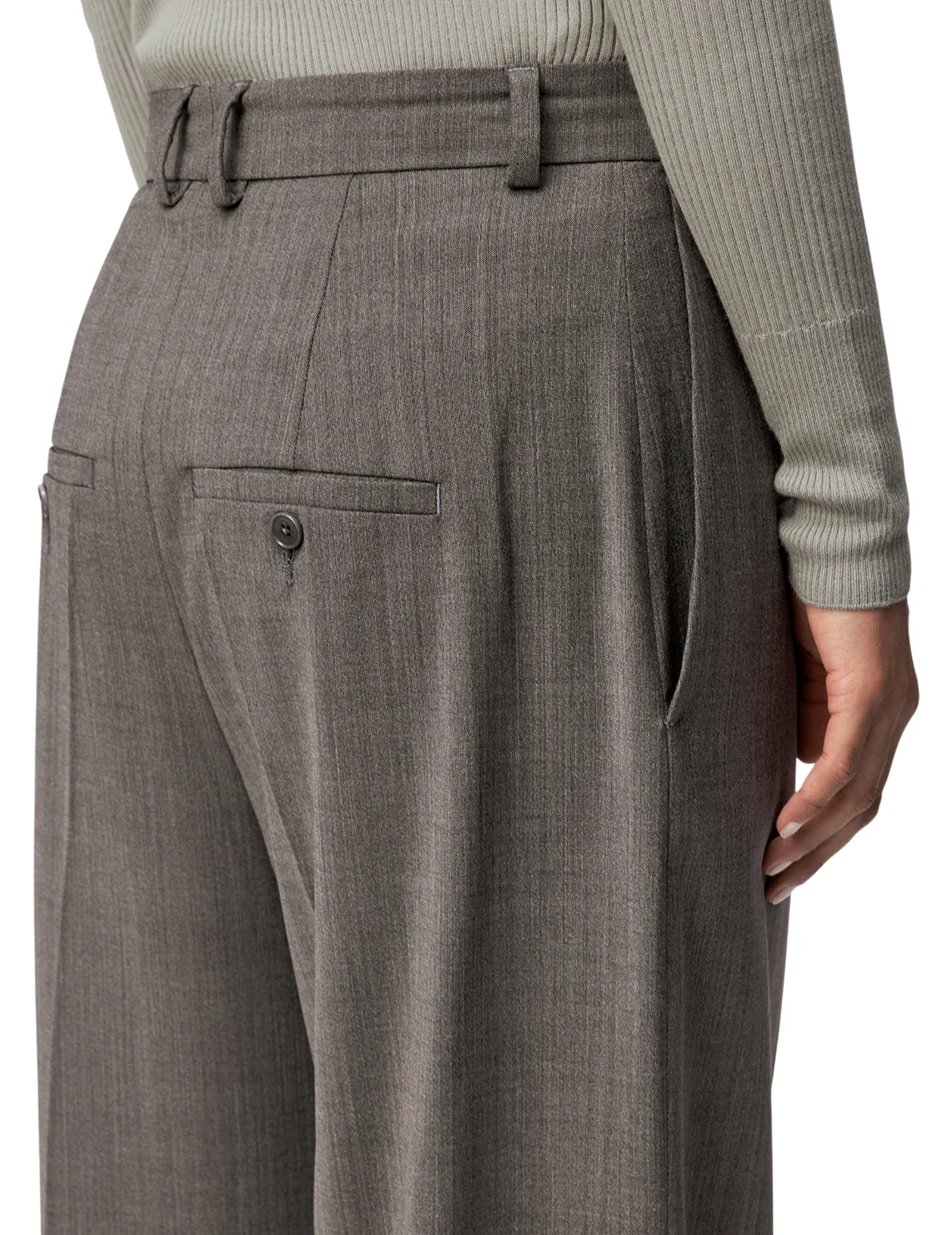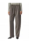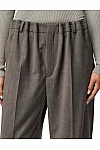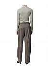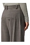 Штани виготовлені з поліестеру, вовни та еластану. Модель виконана у вільному крої. Має петлі для ременя, пресовані стрілки, декоративні складки, приховану застібку-блискавку з гачком і прорізні кишені.