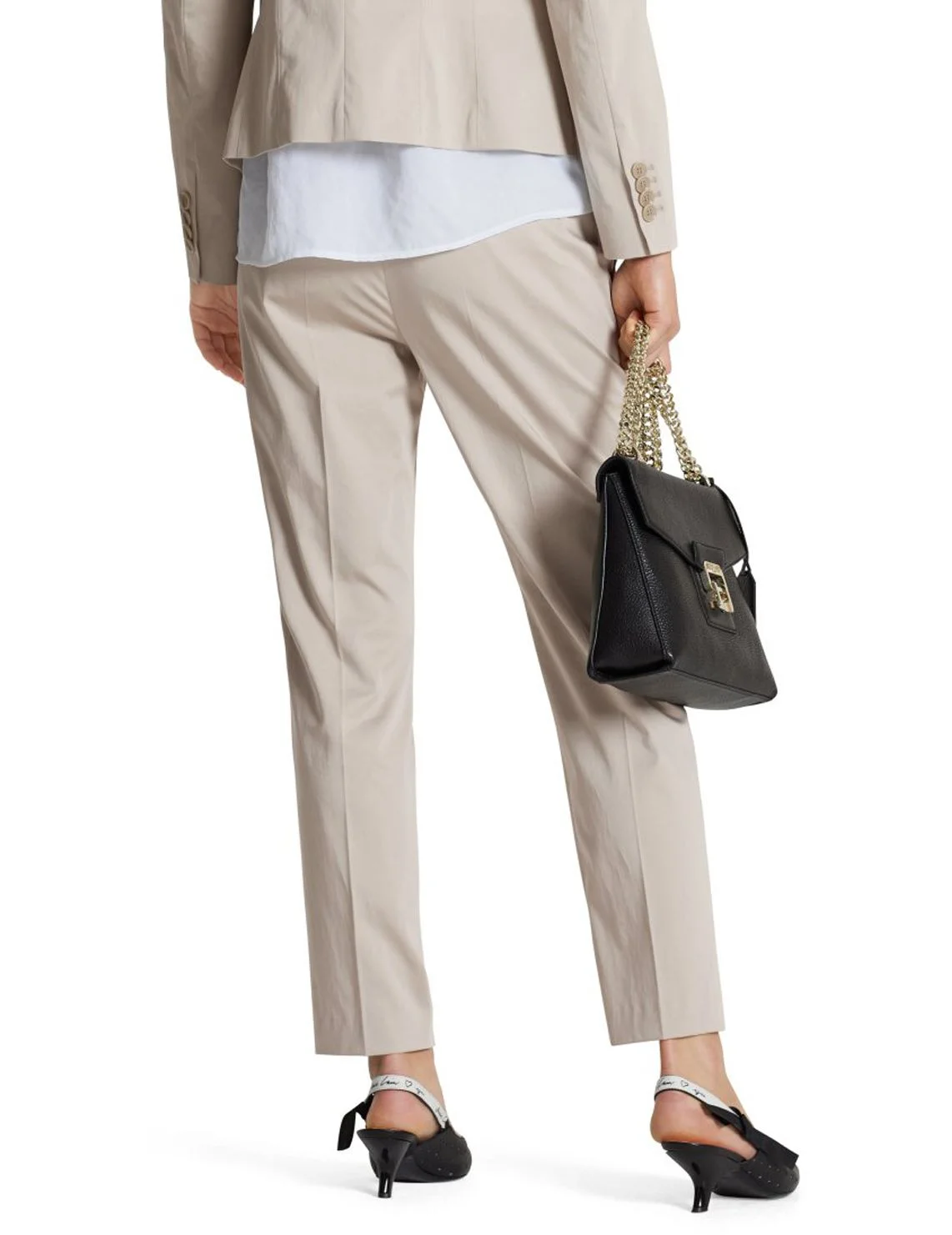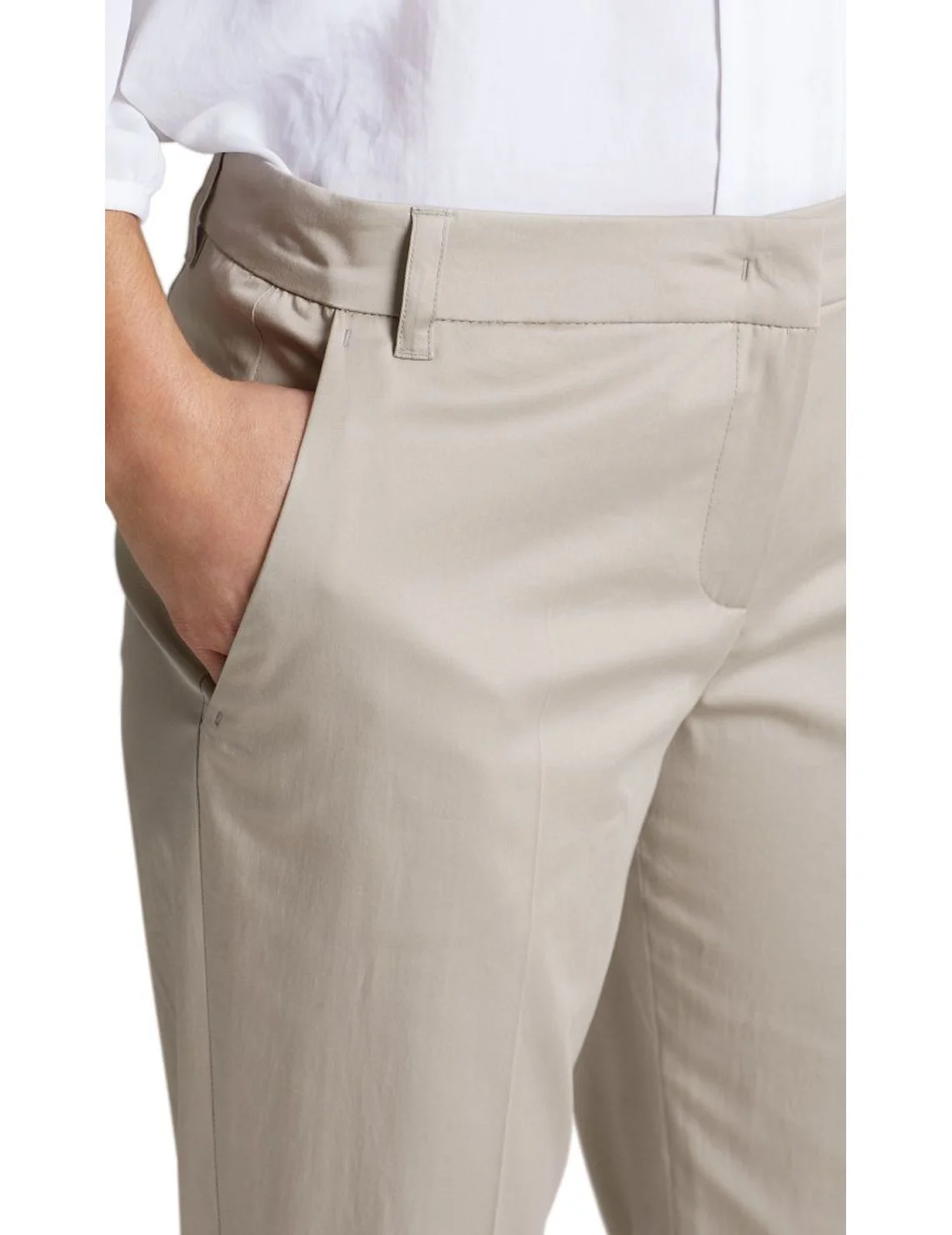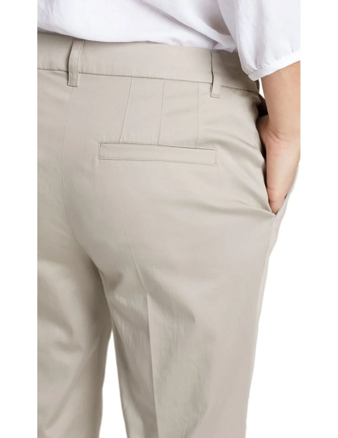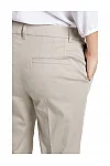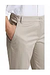 Штани виготовлені з бавовни та еластану. Модель виконана в звуженому крої. Має петлі для ременя, приховану застібку-блискавку з гачком, пресовані стрілки та прорізні кишені.