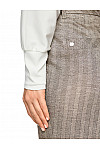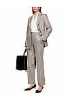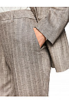Штани виготовлені з віскози, поліестеру, вовни та еластану. Модель виконана в прямому крої. Має петлі для ременя, приховану застібку-блискавку з ґудзиком, пресовані стрілки та прорізні кишені. Декоровані принтом у смужку.