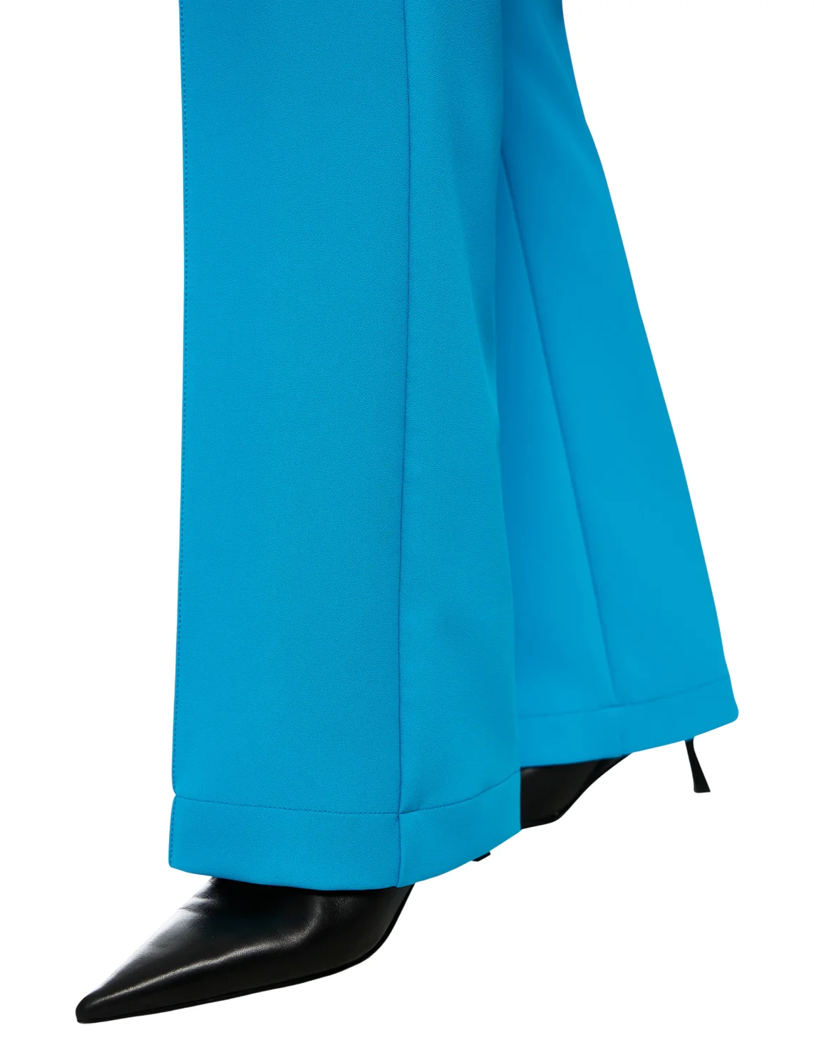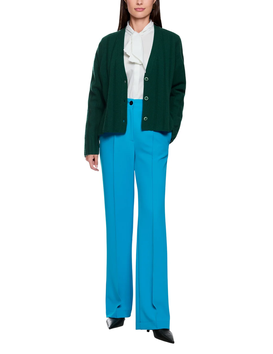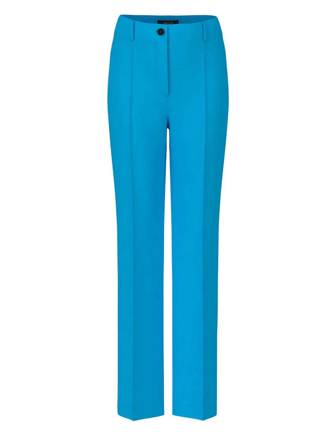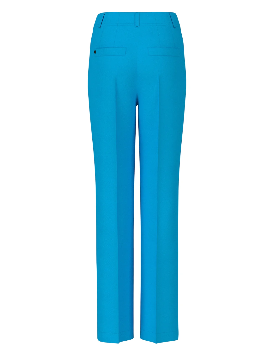 Штани виготовлені з поліестеру й еластану. Модель виконана у вільному крої. Має петлі для ременя, приховану застібку-блискавку з ґудзиком, прорізні кишені, прострочені стрілки спереду і пресовані стрілки ззаду.