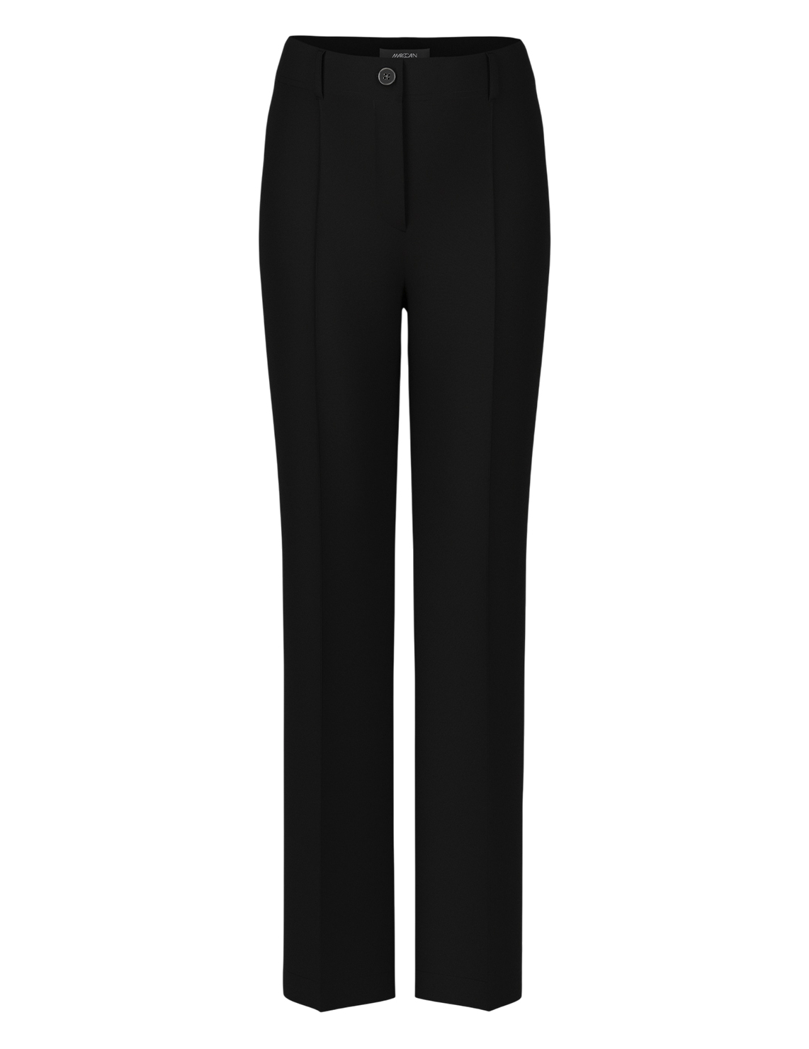 Штани виготовлені з поліестеру й еластану. Модель виконана у вільному крої. Має петлі для ременя, приховану застібку-блискавку з ґудзиком, прорізні кишені, прострочені стрілки спереду і пресовані стрілки ззаду.