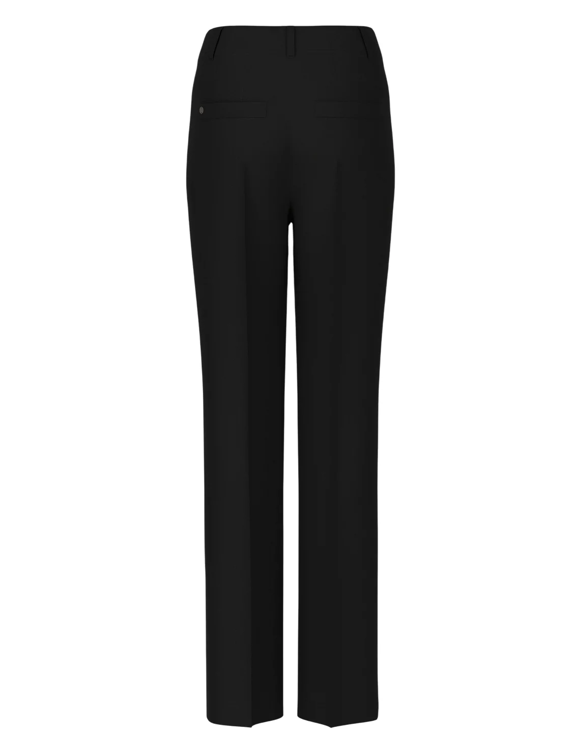 Штани виготовлені з поліестеру й еластану. Модель виконана у вільному крої. Має петлі для ременя, приховану застібку-блискавку з ґудзиком, прорізні кишені, прострочені стрілки спереду і пресовані стрілки ззаду.