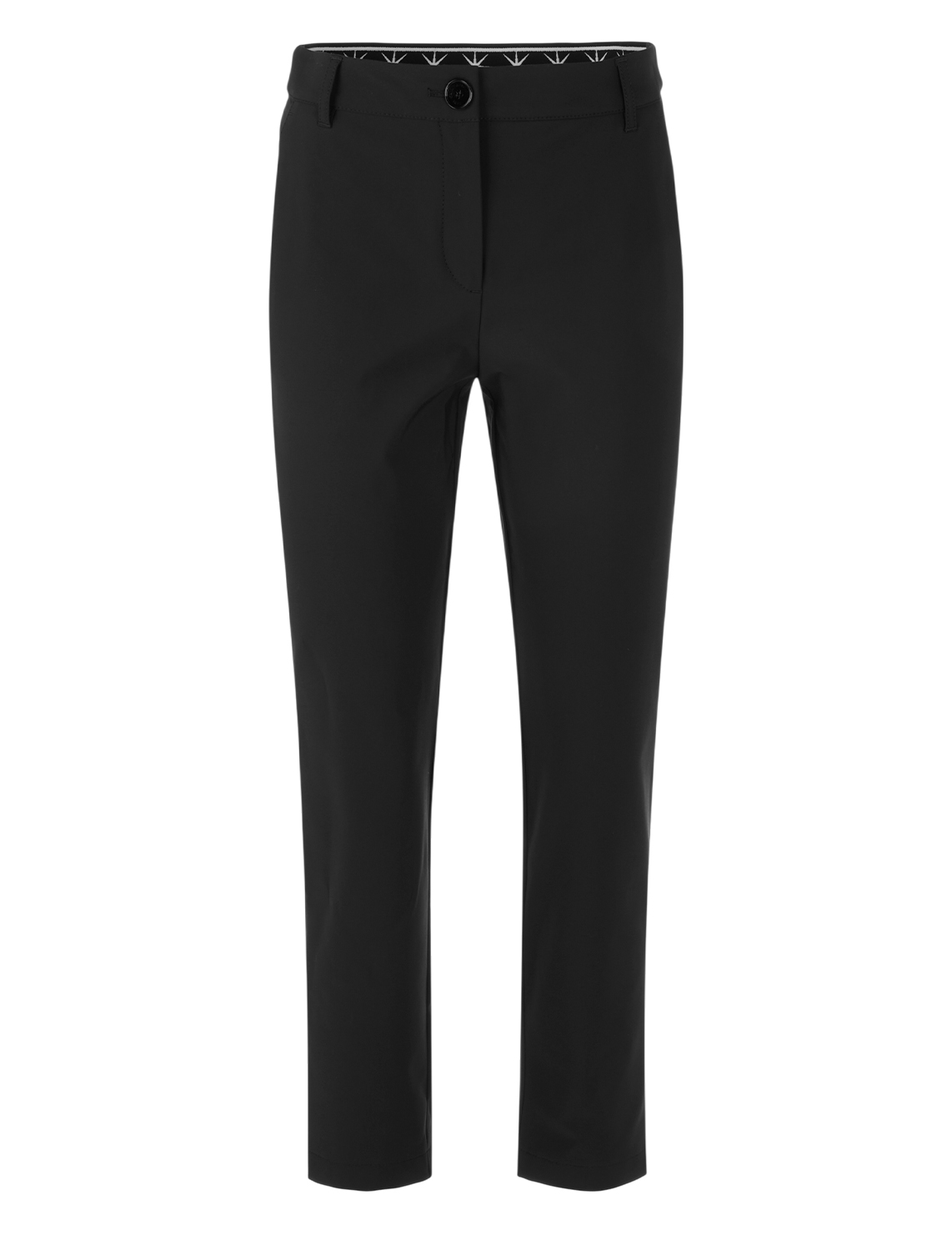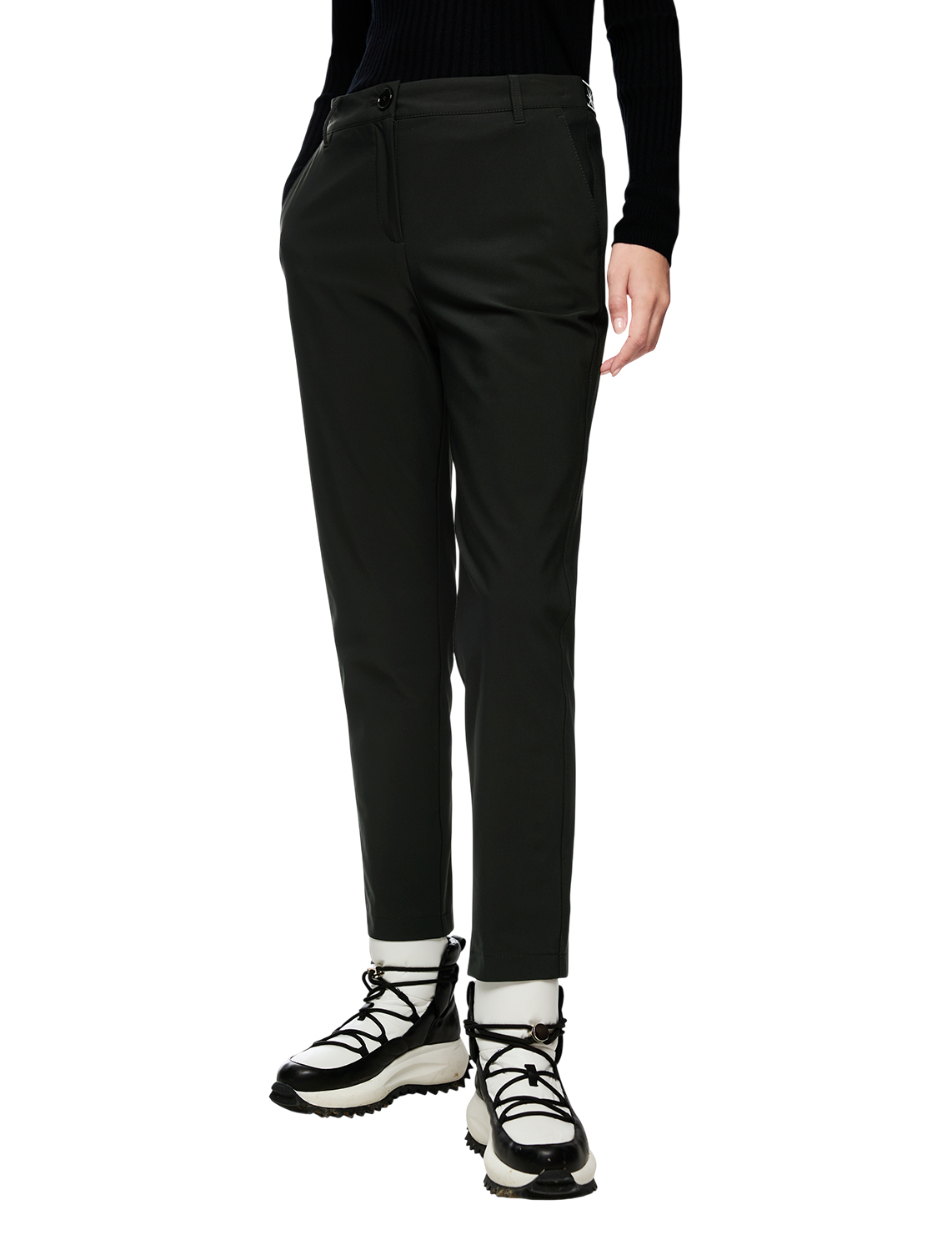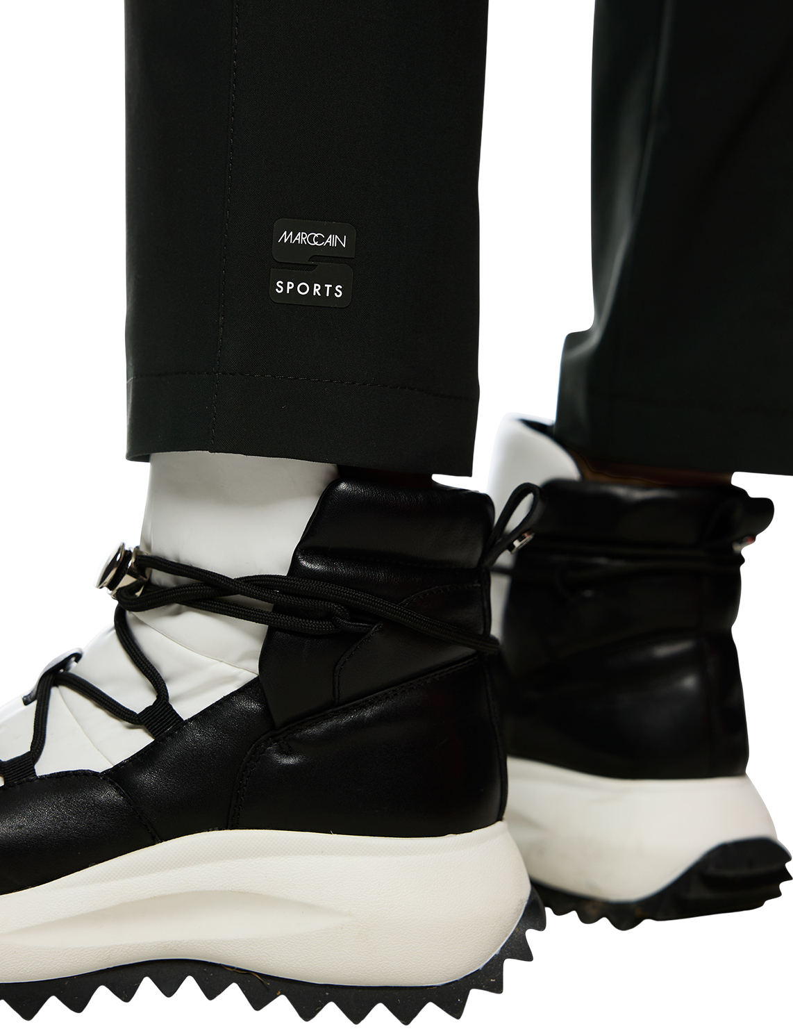 Штани виготовлені з поліаміду, бавовни та еластану. Модель виконана в звуженому крої. Має петлі для ременя, приховану застібку-блискавку з ґудзиком і прорізні кишені.