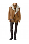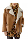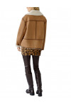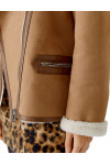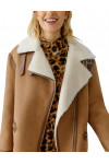 Дублянка виготовлена з поліестеру та еластану. Модель виконана у вільному крої. Має відкладний комір з лацканами та пряжками, довгі рукави, прорізні кишені на блискавках, а також застібку на блискавці.
