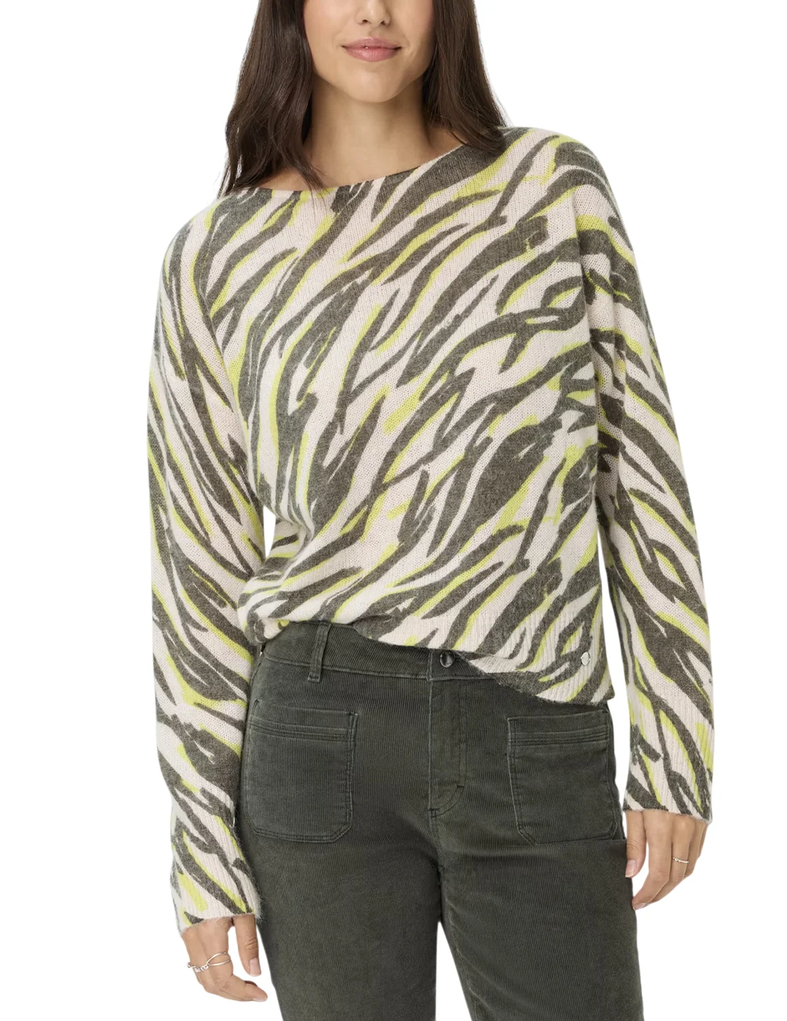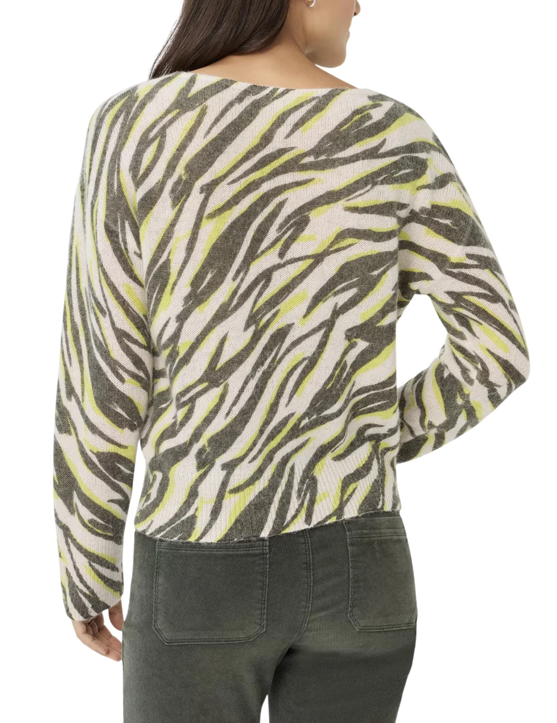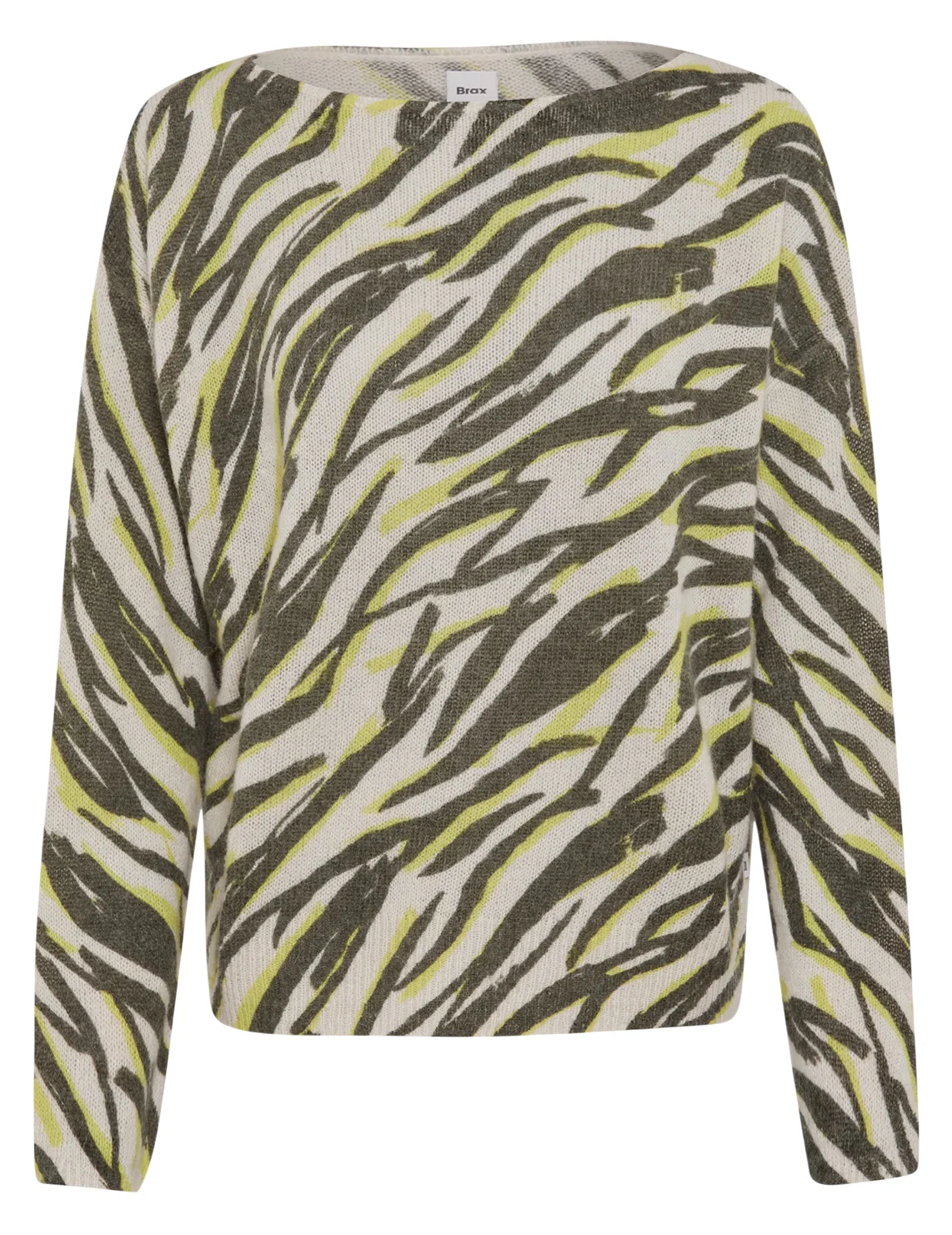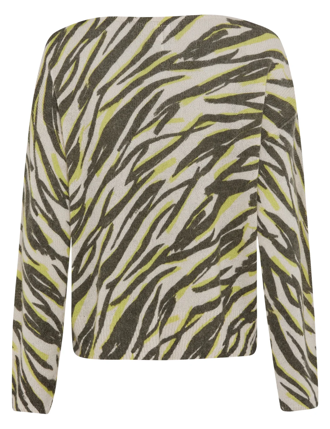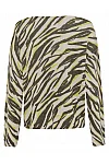 Джемпер виготовлений із поліаміду, альпаки та вовни. Модель виконана у вільному крої. Має круглий виріз горловини, занижену плечову лінію та довгі рукави з манжетами. Декорований анімалістичним принтом.
