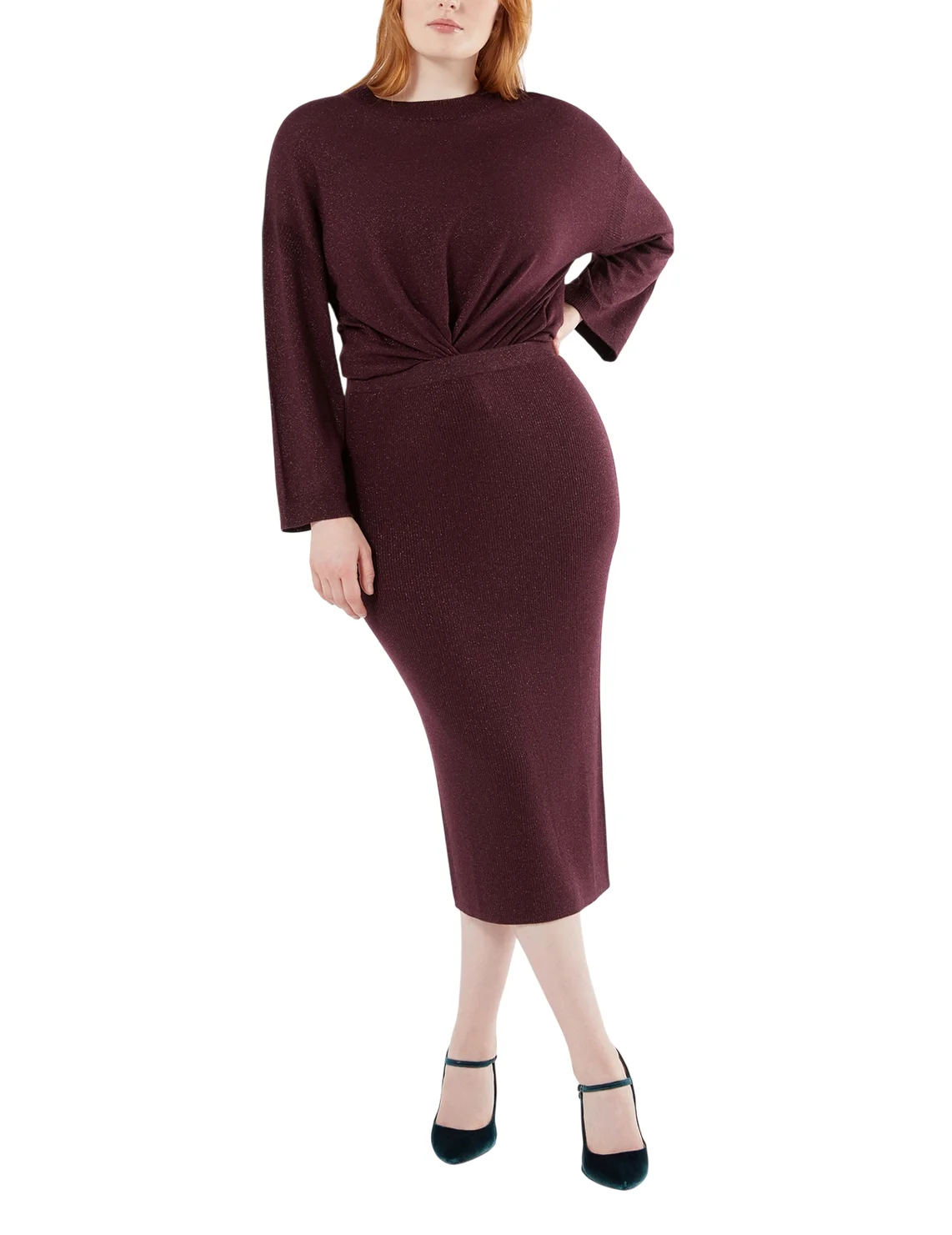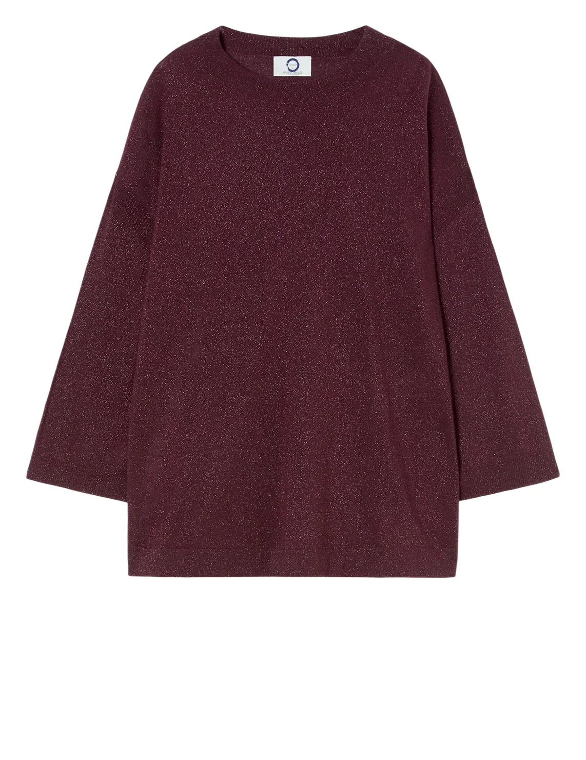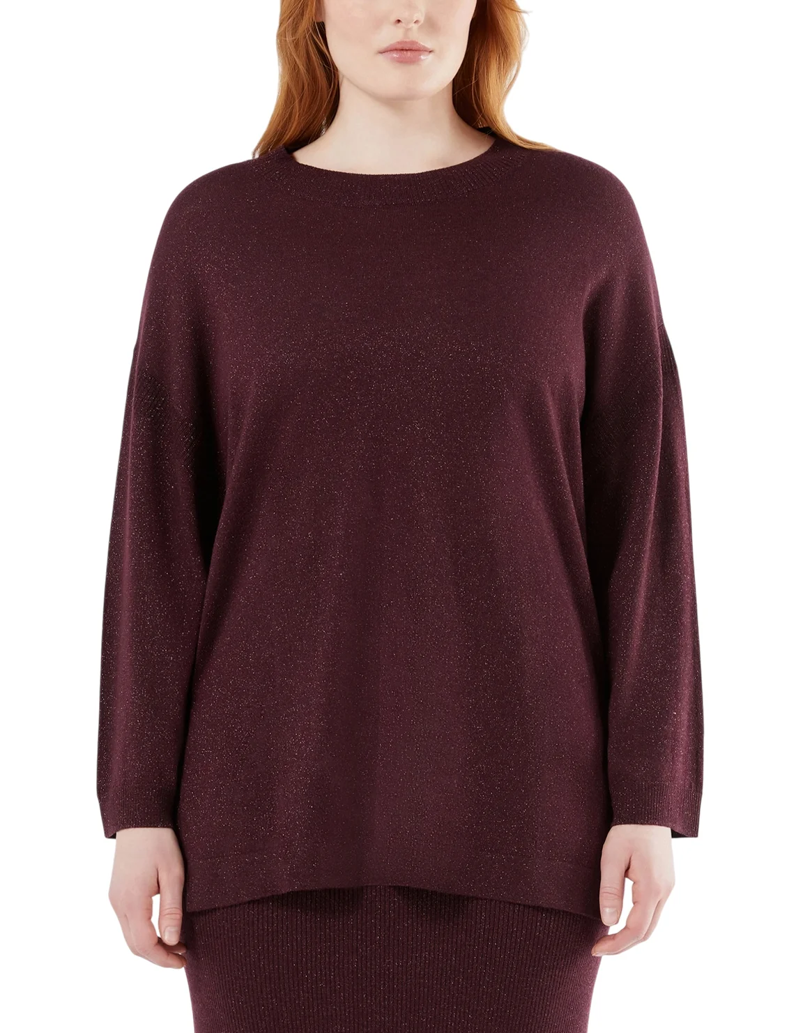 Джемпер виготовлений із вовни, поліаміду та металізованої нитки. Модель виконана у вільному крої. Має круглий виріз горловини, бічні розрізи та довгі рукави.