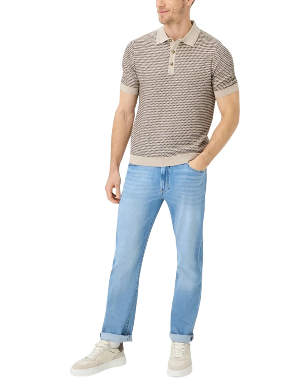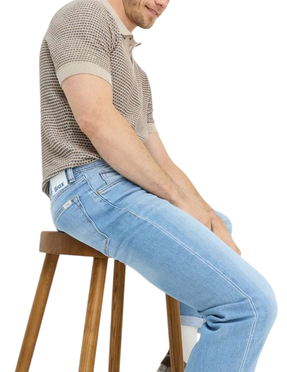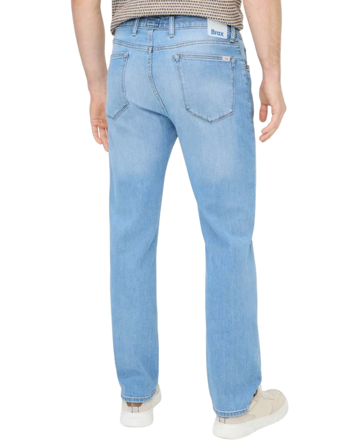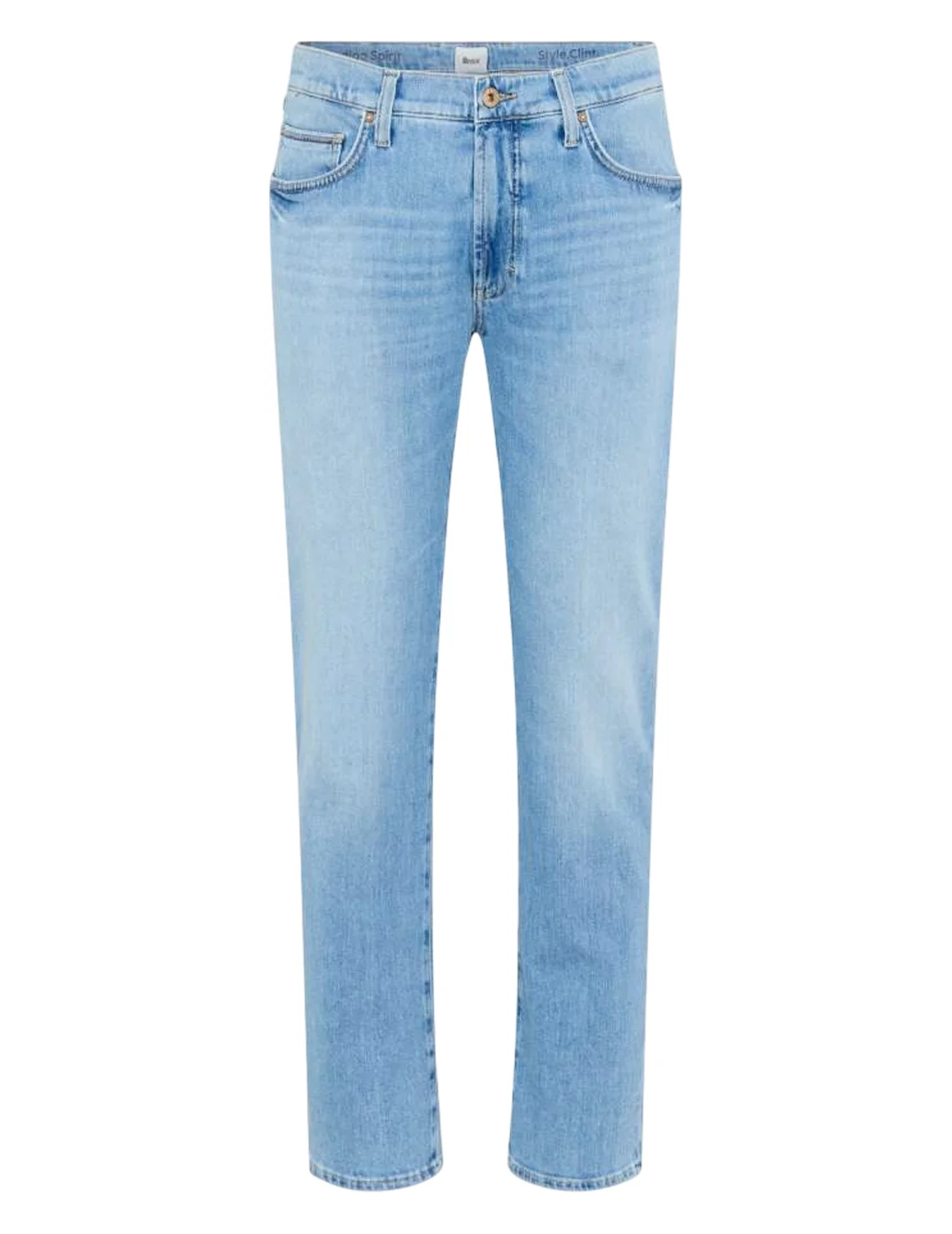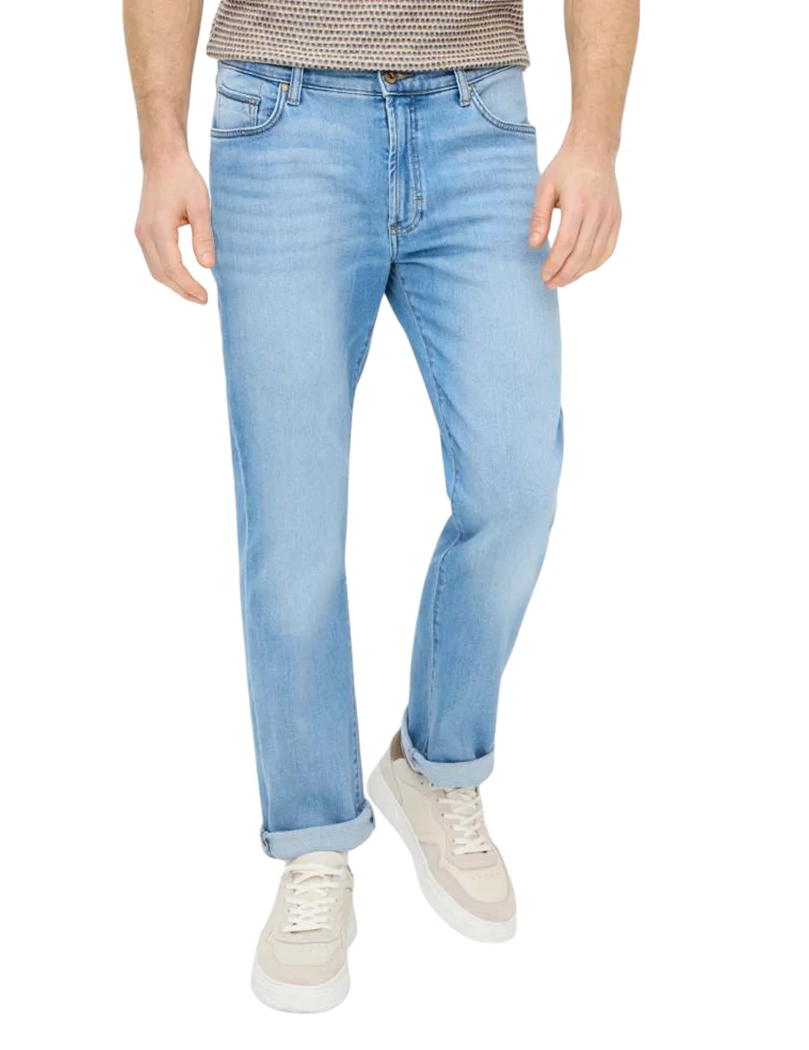 Джинси виготовлені з бавовни, еластомультіестеру й еластану. Модель виконана в прямому крої. Має шльовки для ременя, приховану застібку-блискавку з ґудзиком, а також пару передніх прорізних і пару задніх накладних кишень.
