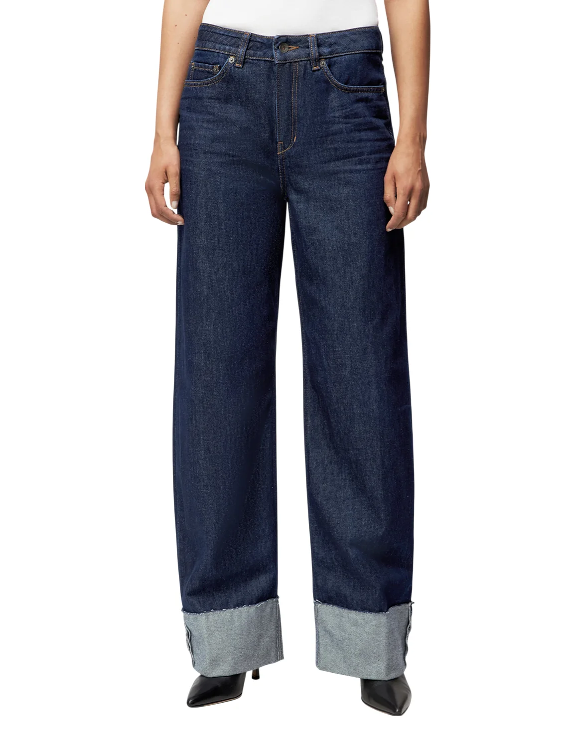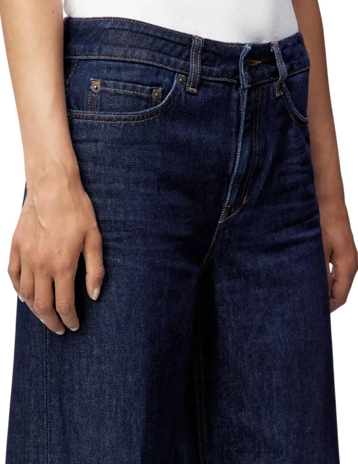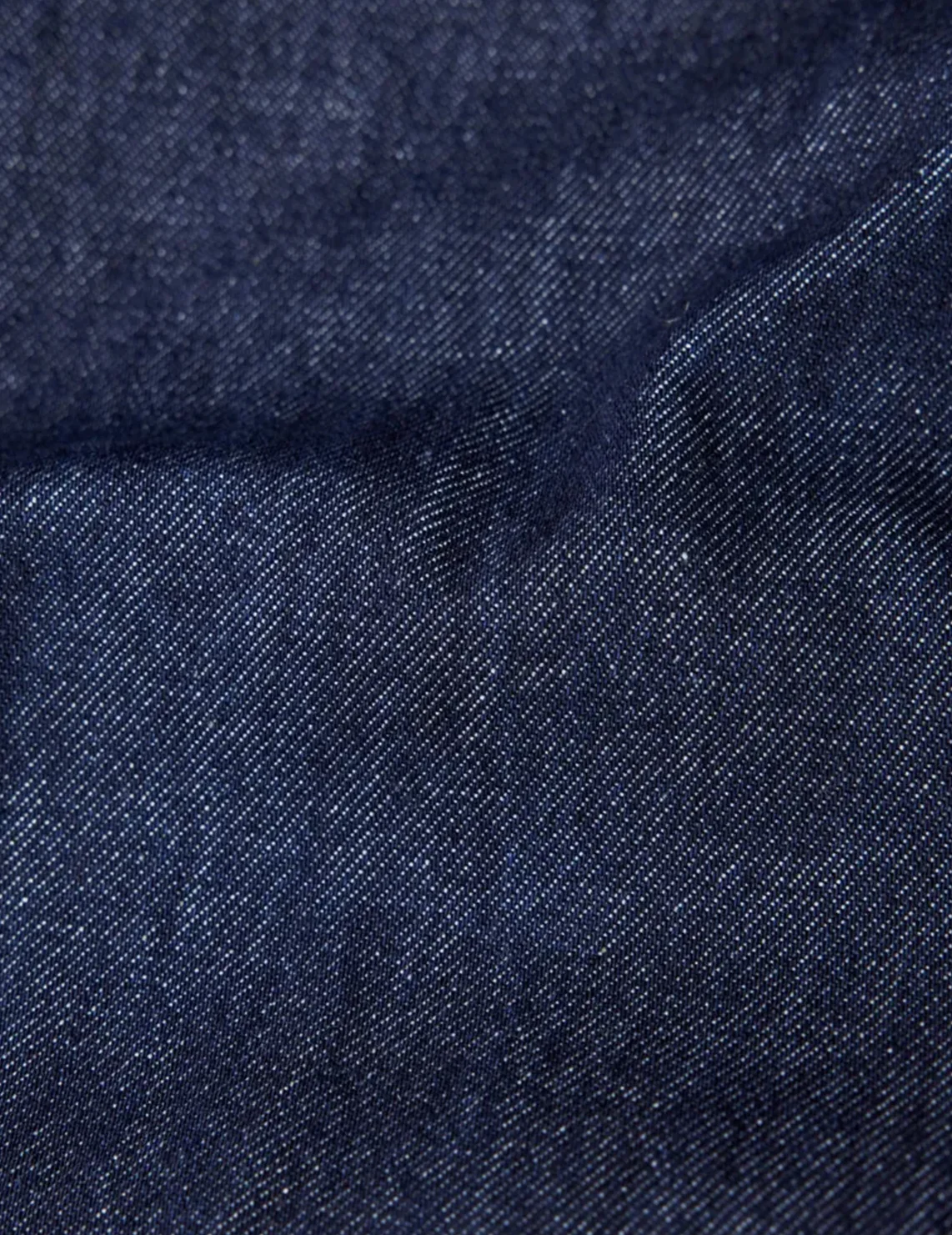 Джинси виготовлені зі 100% натуральної бавовни. Модель виконана у вільному крої. Має петлі для ременя, приховану застібку-блискавку з ґудзиком, відвороти з бахромою, а також пару передніх і пару задніх накладних кишень.