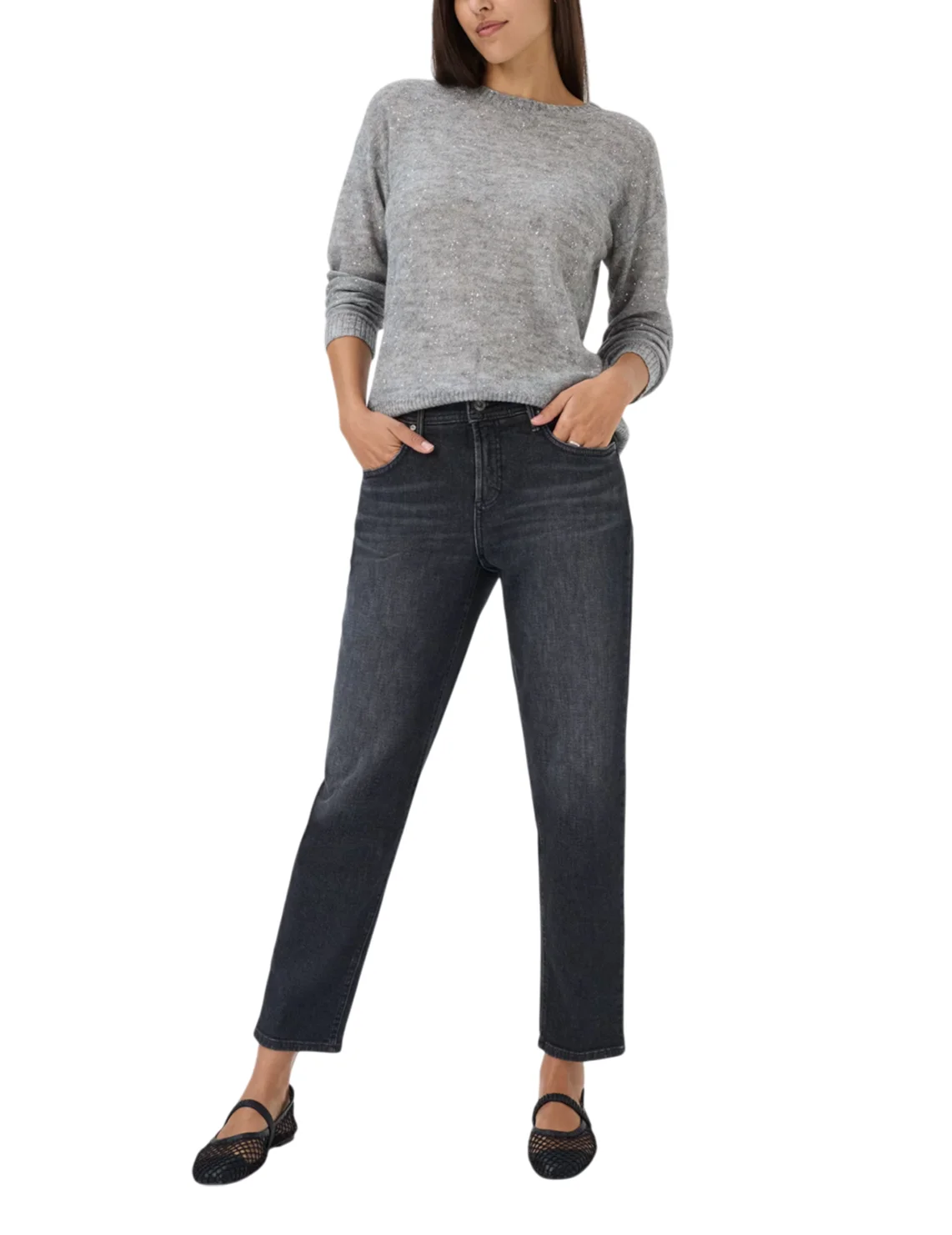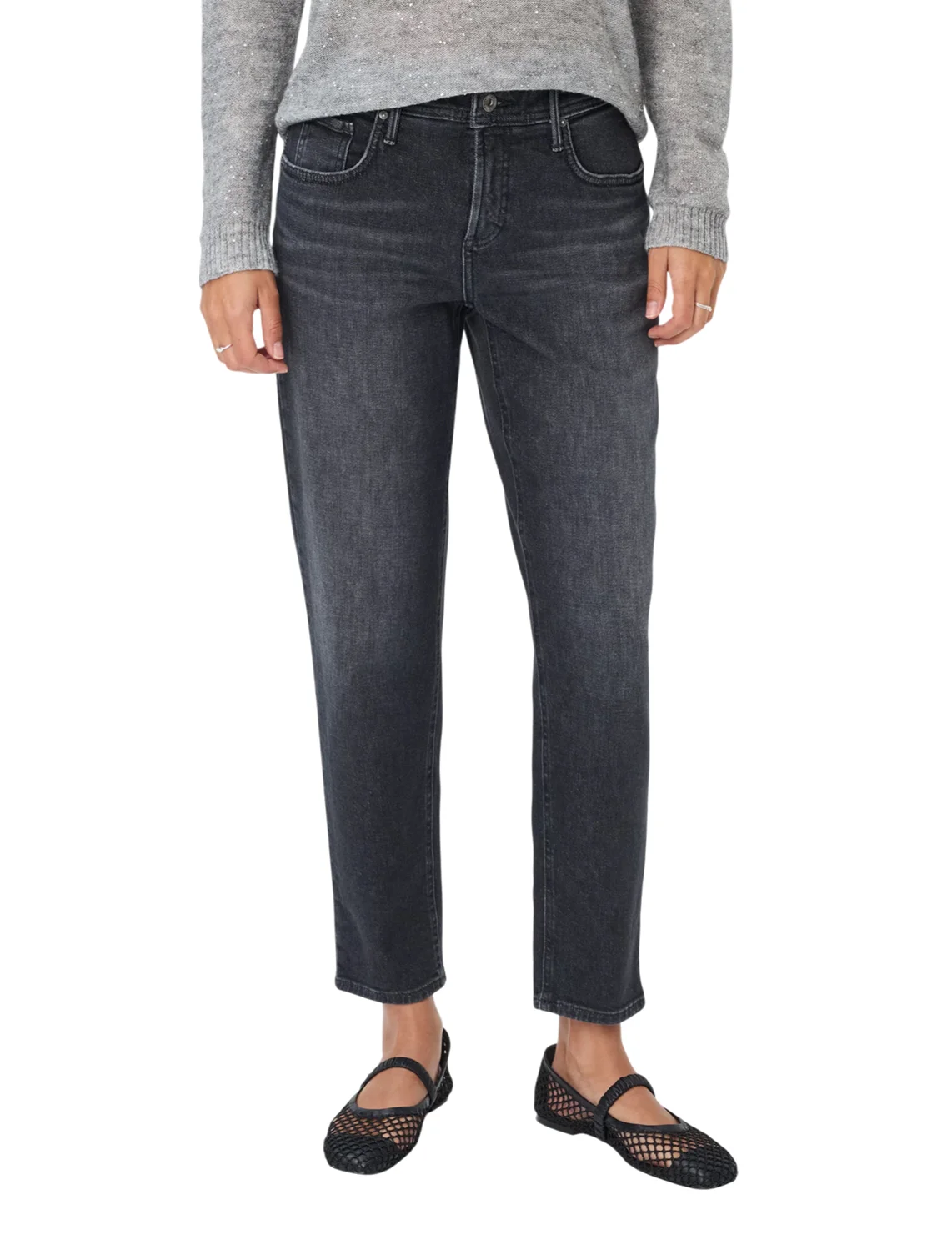 Джинси виготовлені з бавовни, еластомультіестеру й еластану. Модель виконана в прямому крої. Має петлі для ременя, приховану застібку-блискавку з ґудзиком, а також кілька передніх прорізних та кілька задніх накладних кишень.