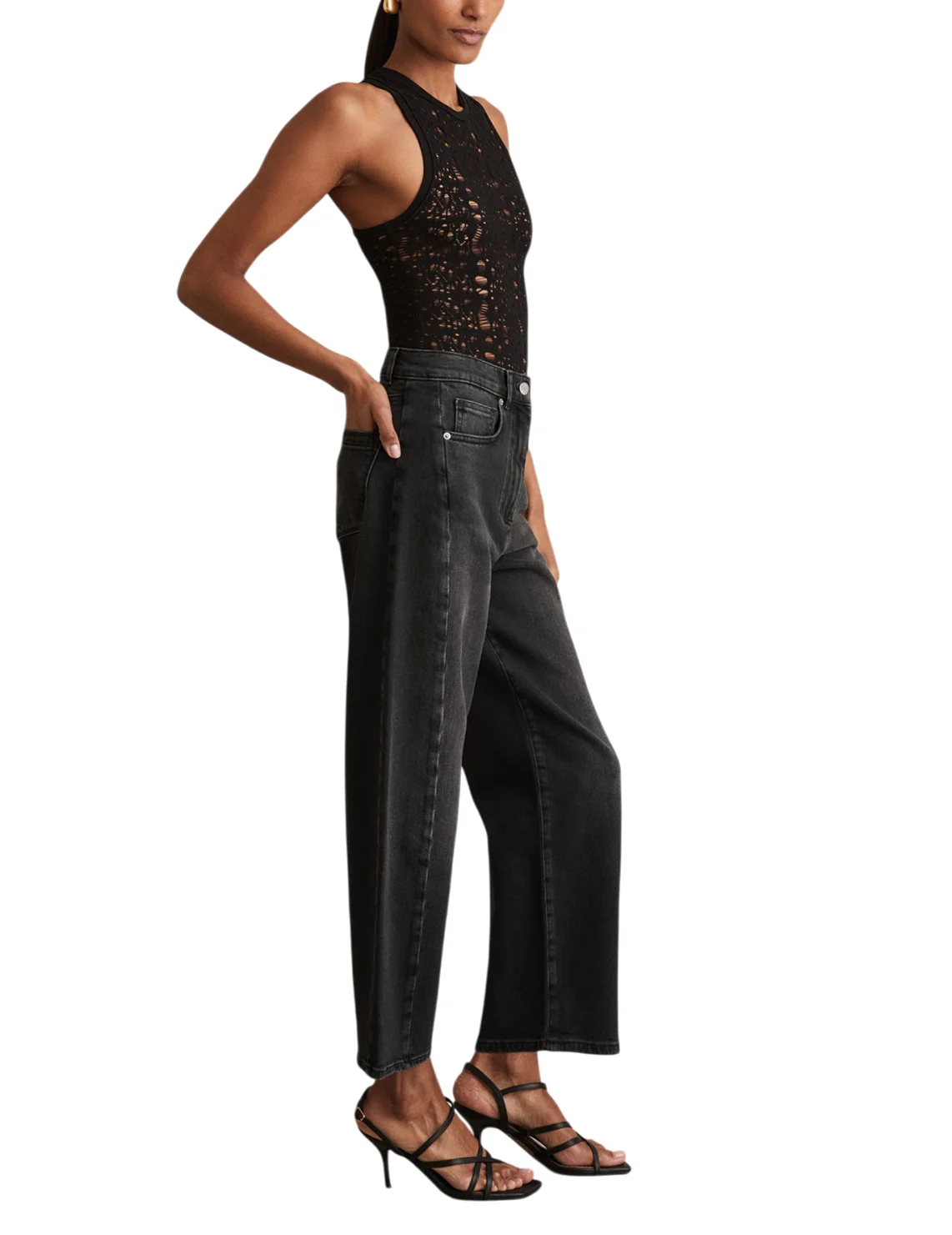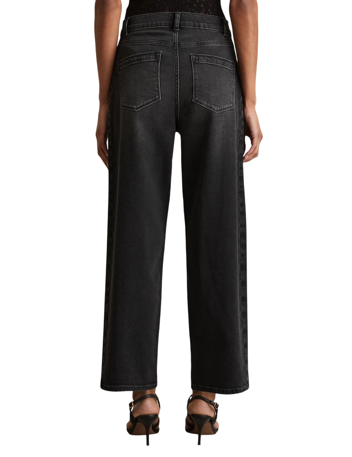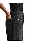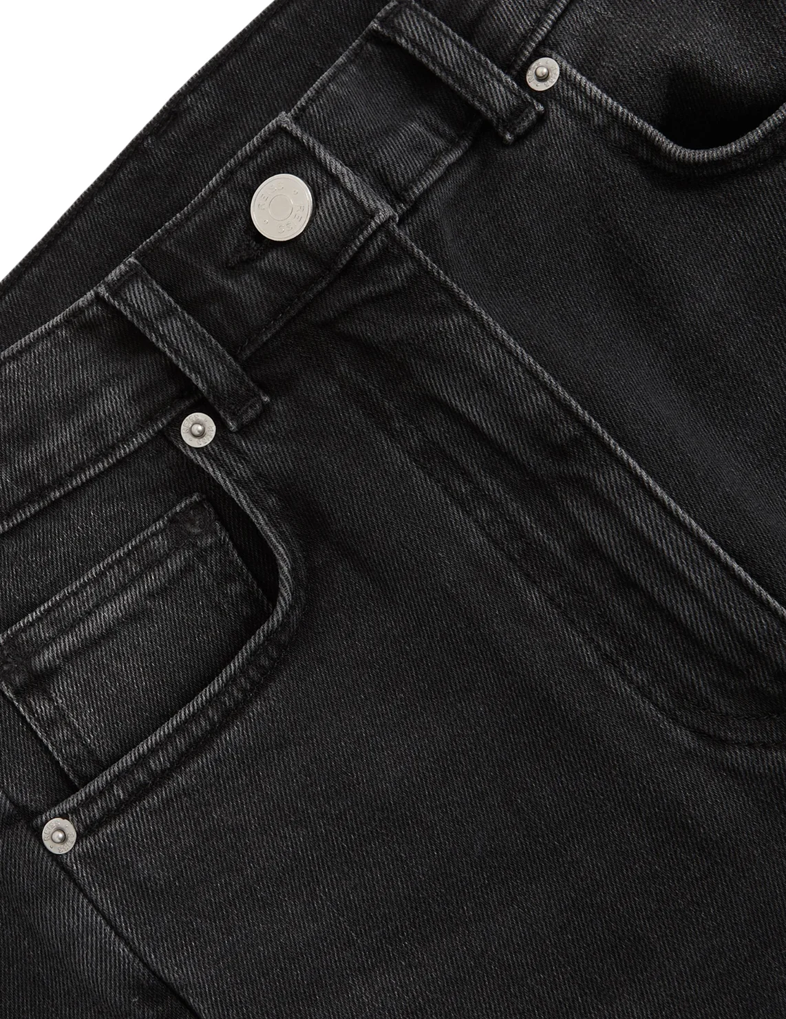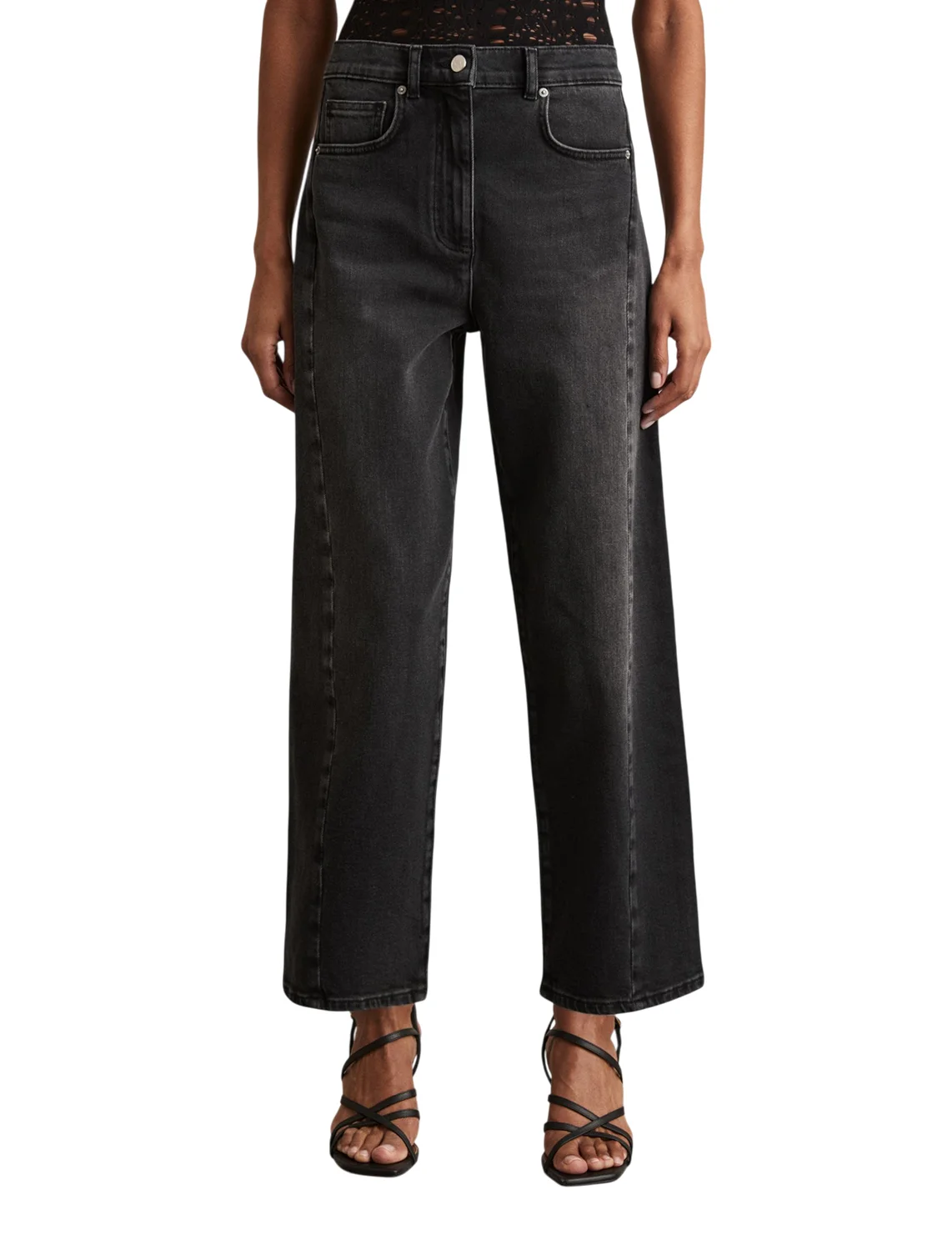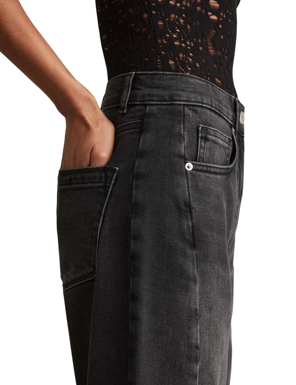 Джинси виготовлені з бавовни та еластану. Модель виконана у вільному крої. Має шльовки для ременя, приховану застібку-блискавку з ґудзиком, а також пару передніх і пару задніх накладних кишень.