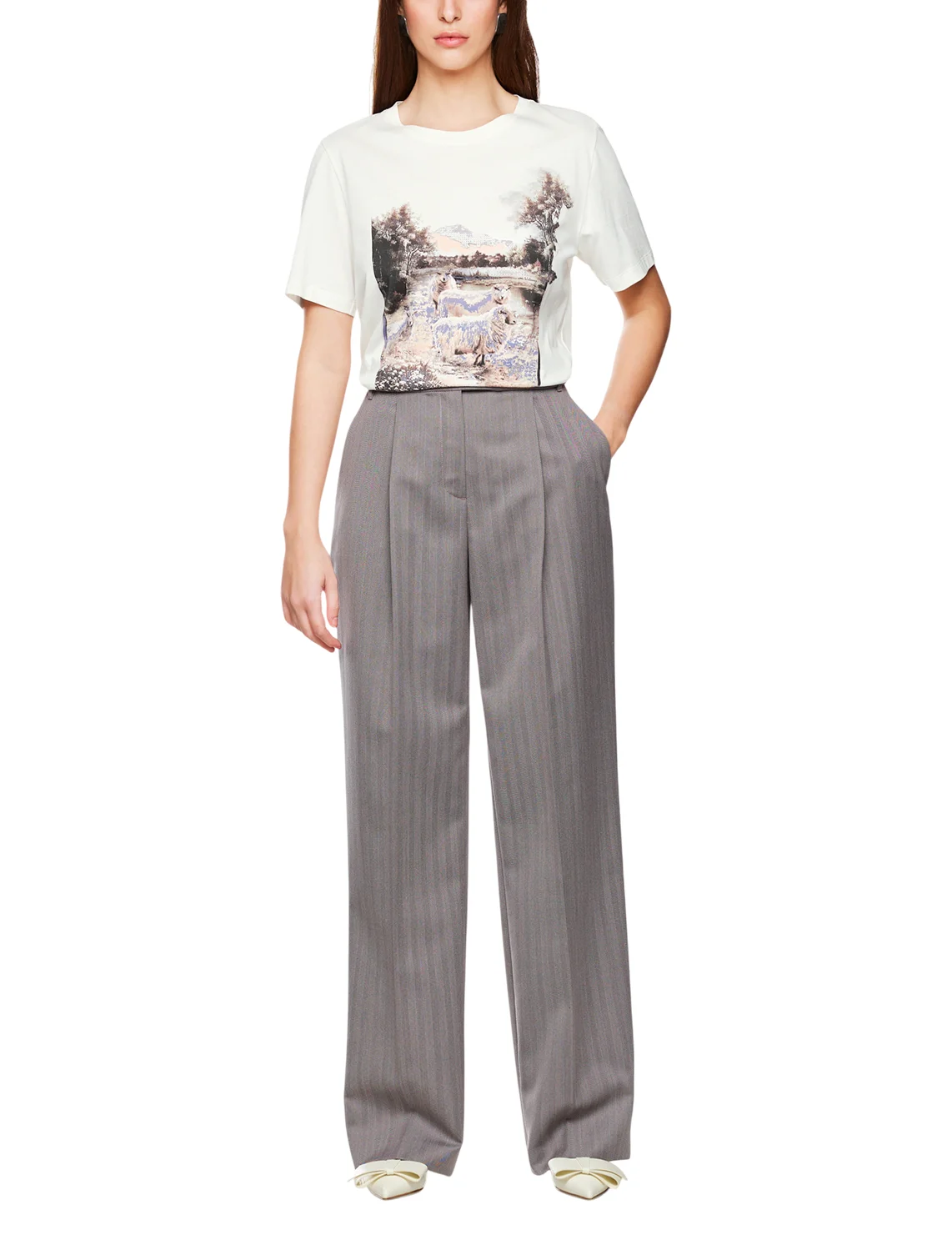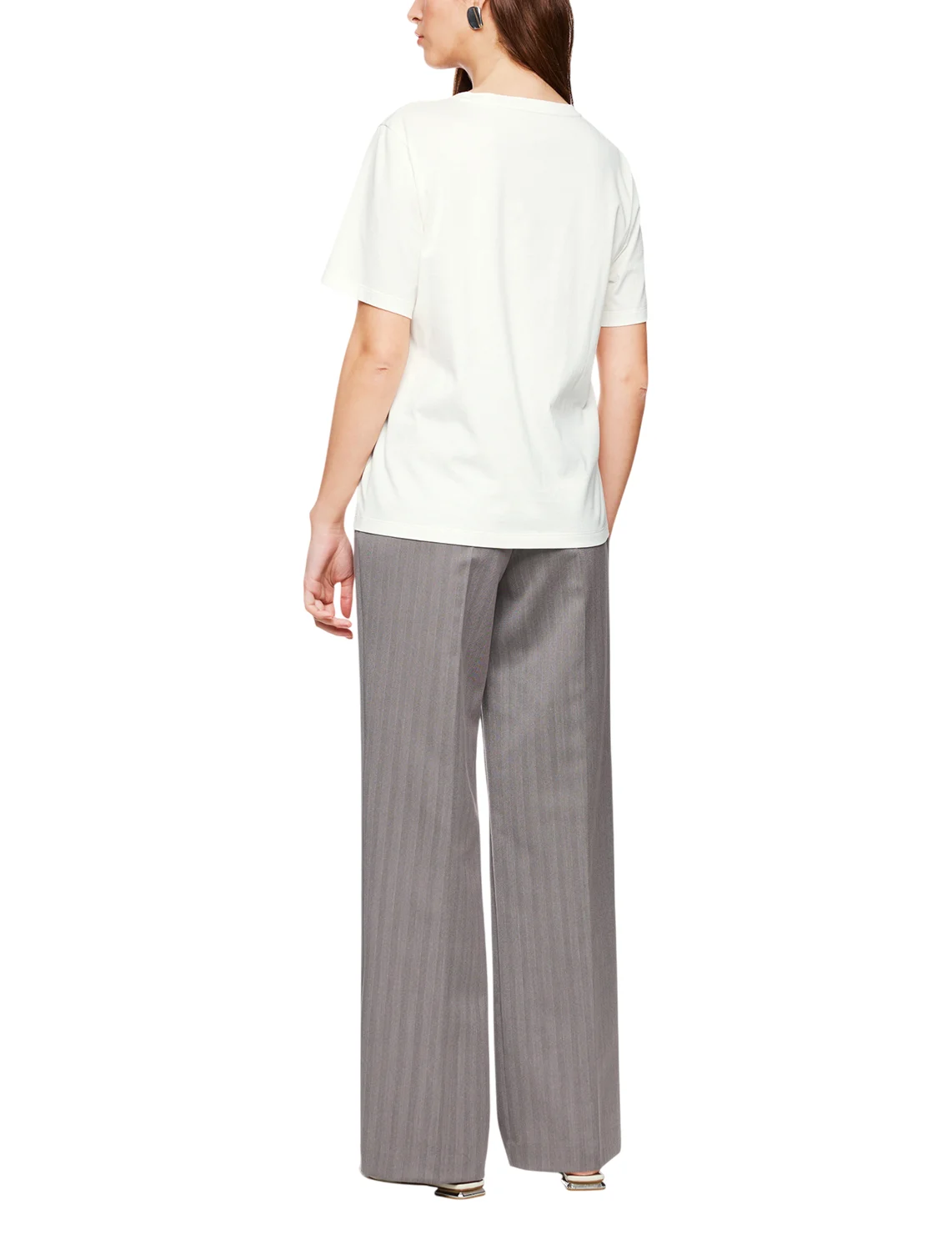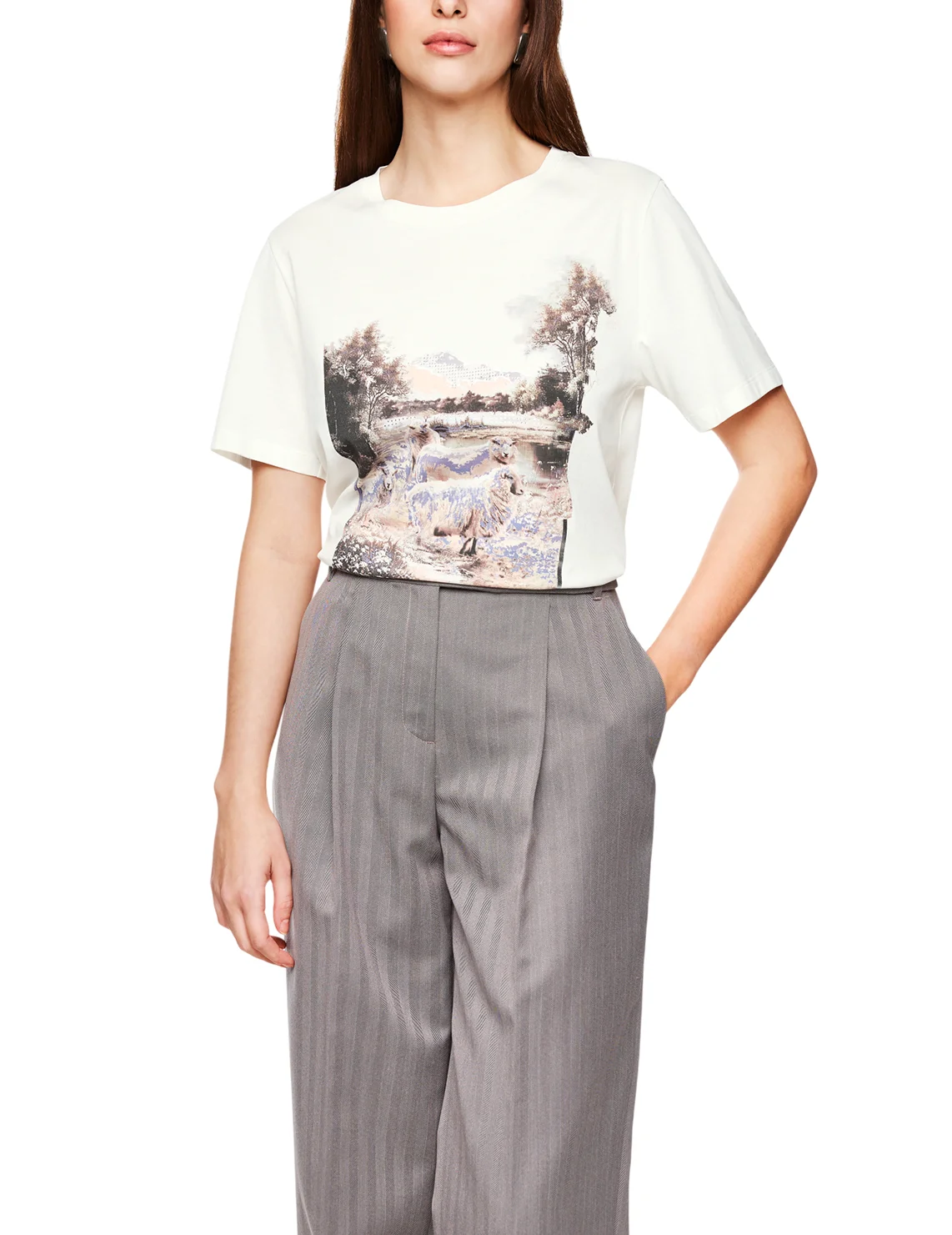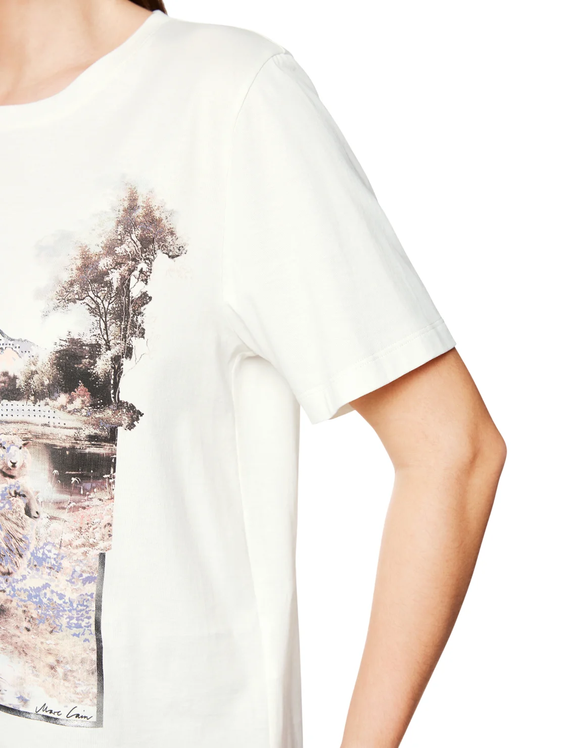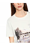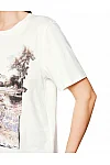 Футболка виготовлена зі 100% бавовни високої якості. Модель виконана в прямому крої. Має круглий виріз горловини та короткі рукави. Декорована оригінальним принтом.
