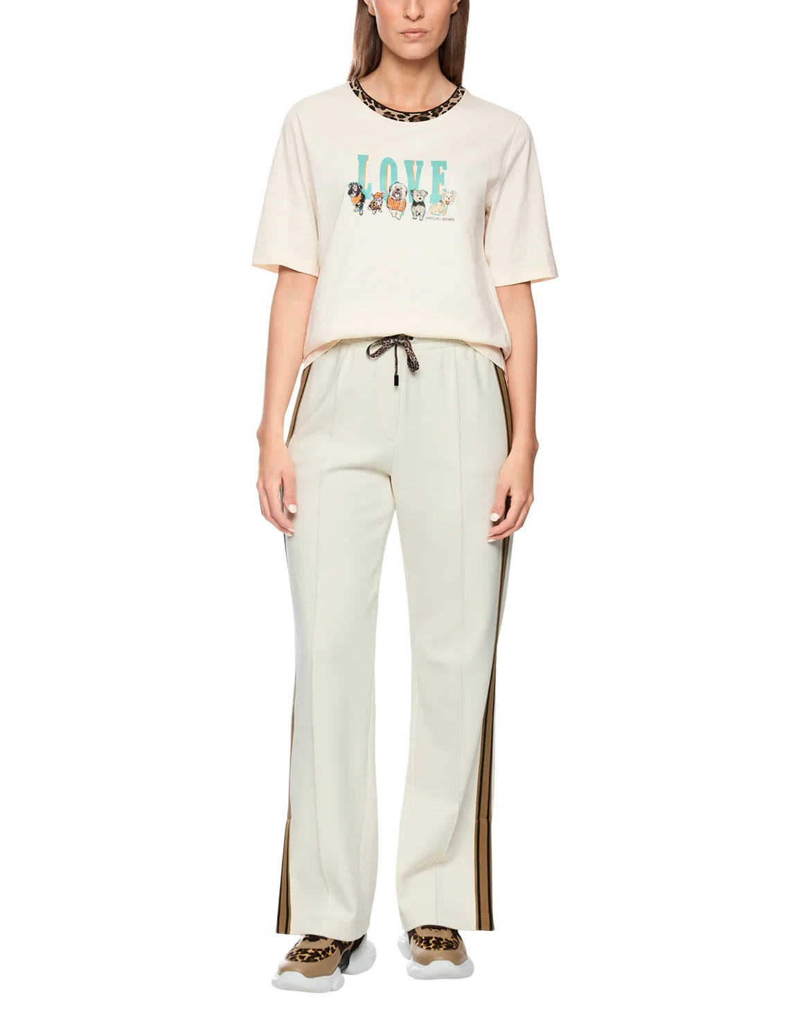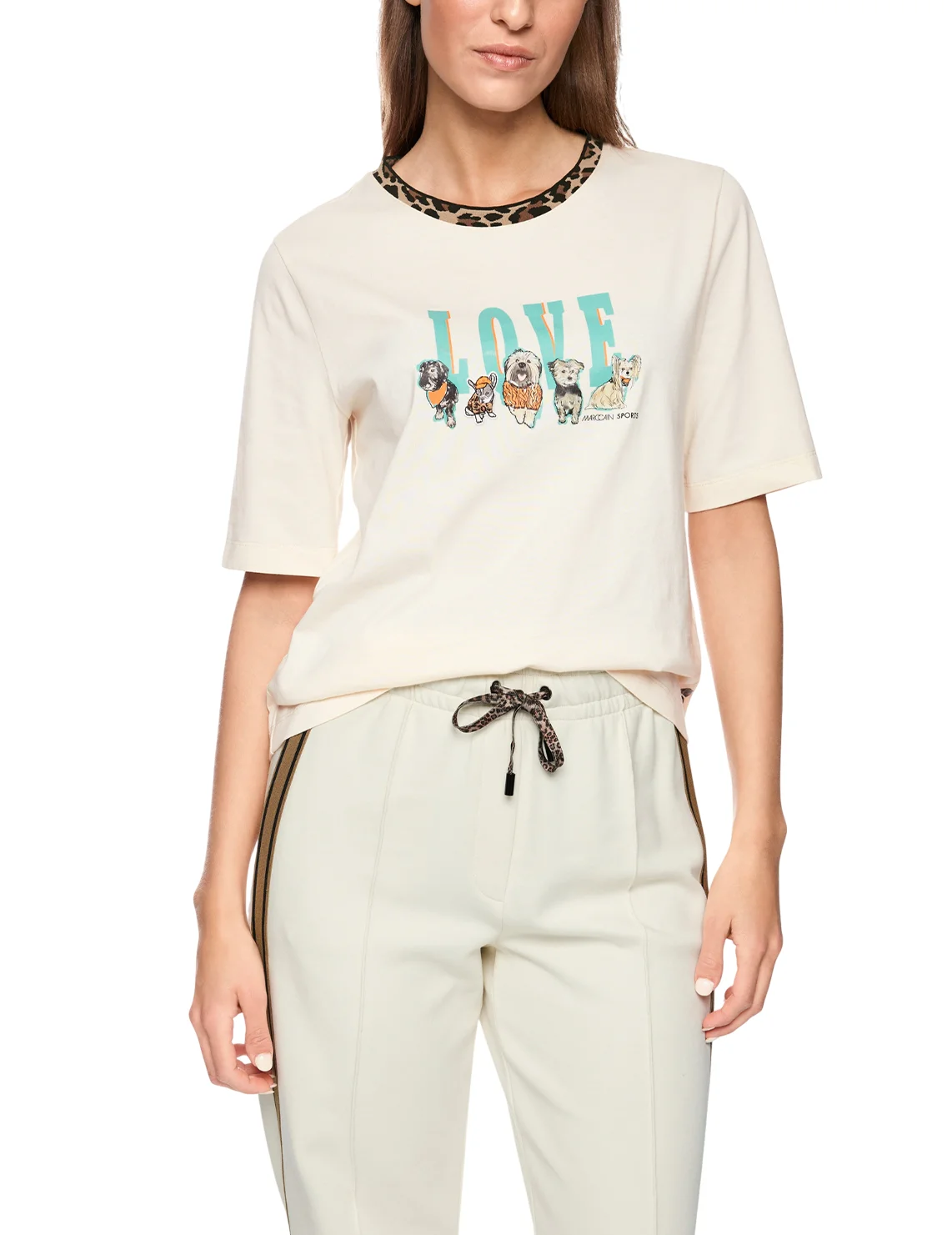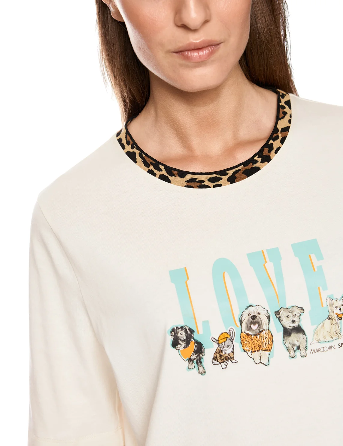 Футболка виготовлена зі 100% бавовни високої якості. Модель виконана у вільному крої. Має круглий виріз горловини та короткі рукави. Декорована оригінальним принтом.