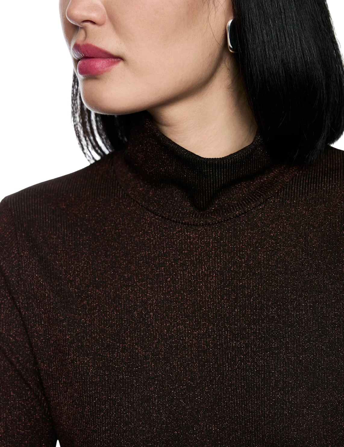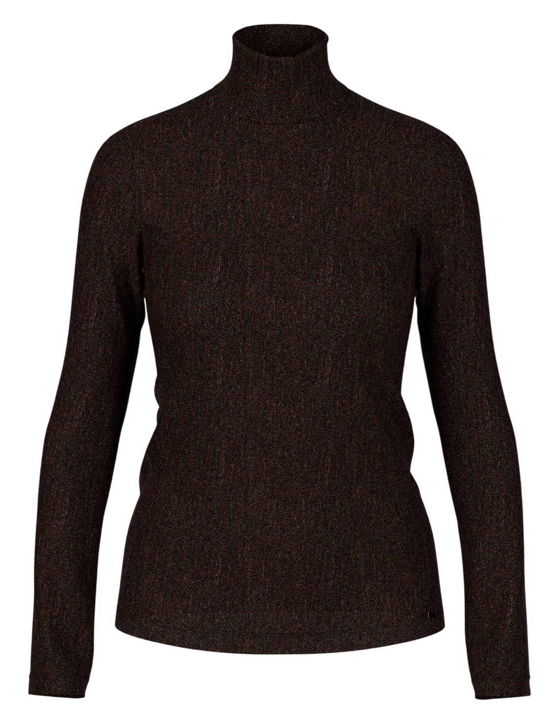 Гольф виготовлений з поліестеру, металізованого волокна, поліаміду та еластану. Модель виконана в приталеному крої. Має комір-стійку та довгі рукави.