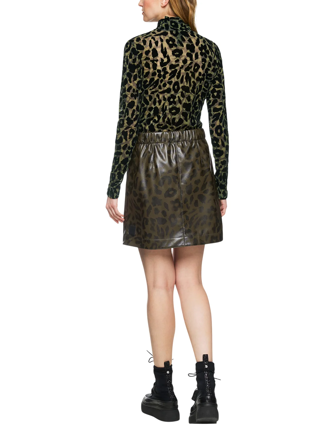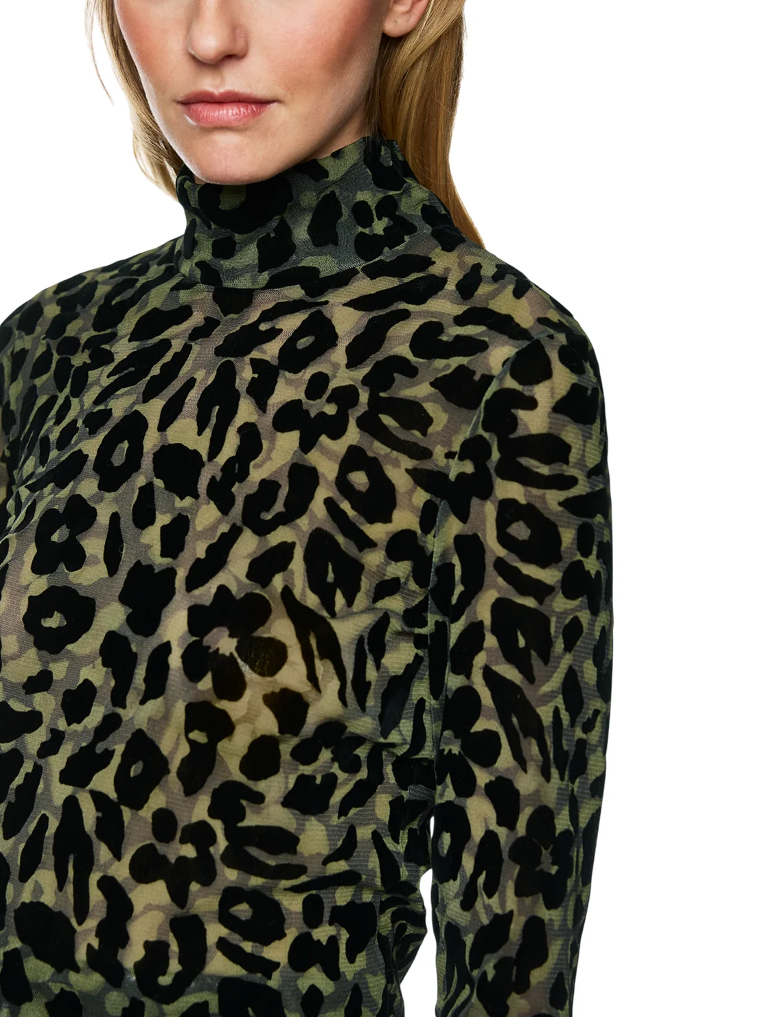 Гольф виготовлений із поліаміду та віскози. Модель виконана в приталеному крої. Має комір-стійку та довгі рукави. Декорований анімалістичним принтом.