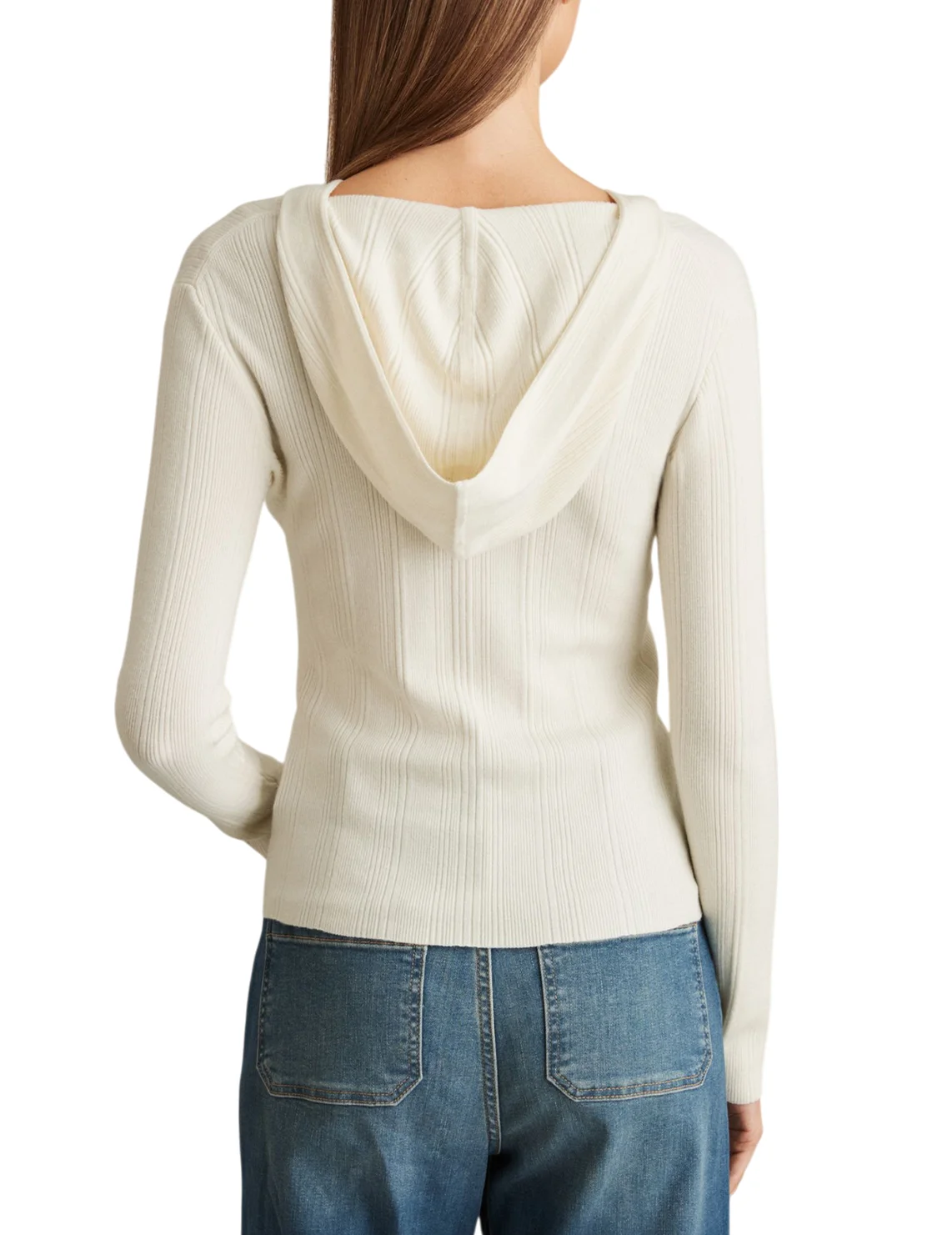 Худі виготовлено з вовни, поліаміду та еластану. Модель виконана в приталеному крої. Має V-подібний виріз горловини, капюшон і довгі рукави.