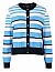 Кардиган виготовлений з ліоцелу, поліестеру, бавовни та поліаміду. Модель виконана в прямому крої. Має круглий виріз горловини, довгі рукави з манжетами, куліску на подолі. Застібається на кнопки. Декорований смугастим принтом.