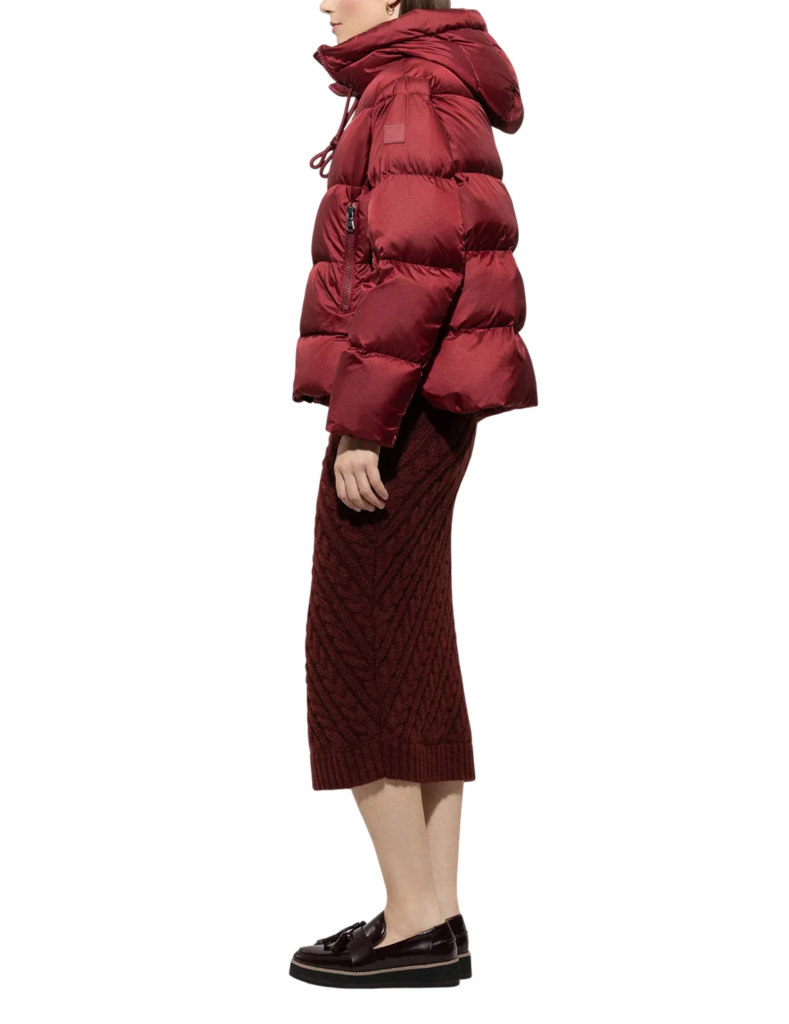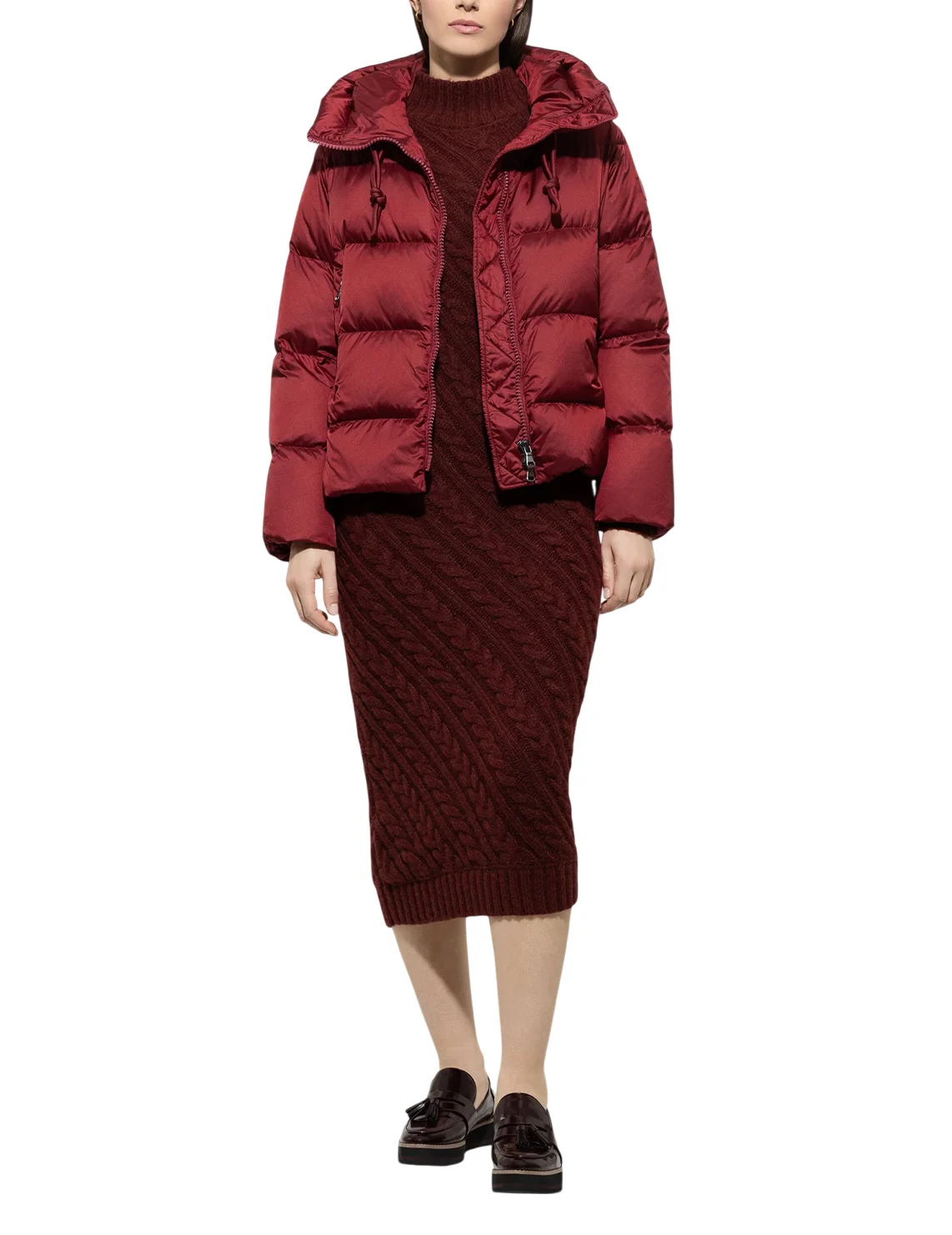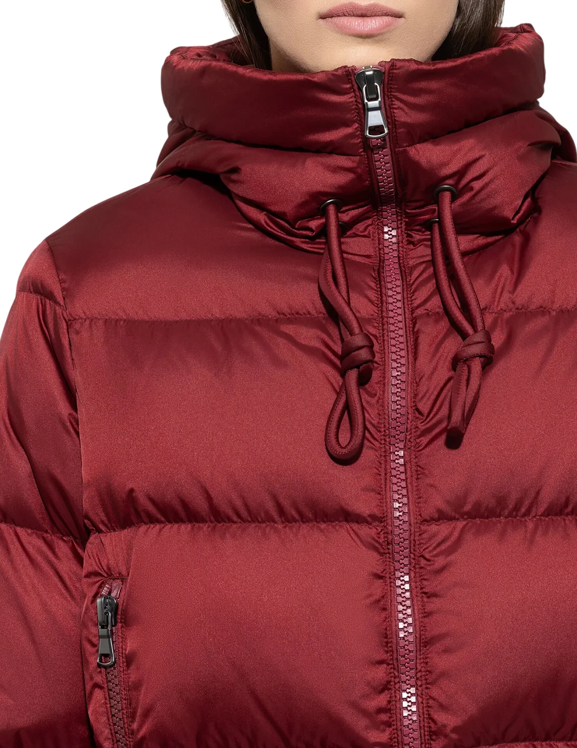 Куртка виготовлена зі 100% поліаміду, наповнювач - 90% пух, 10% перо, підкладка з поліаміду. Модель виконана в прямому крої. Має комір-стійку з куліскою, прорізні кишені на блискавці, довгі рукави з манжетами та двосторонню застібку-блискавку.