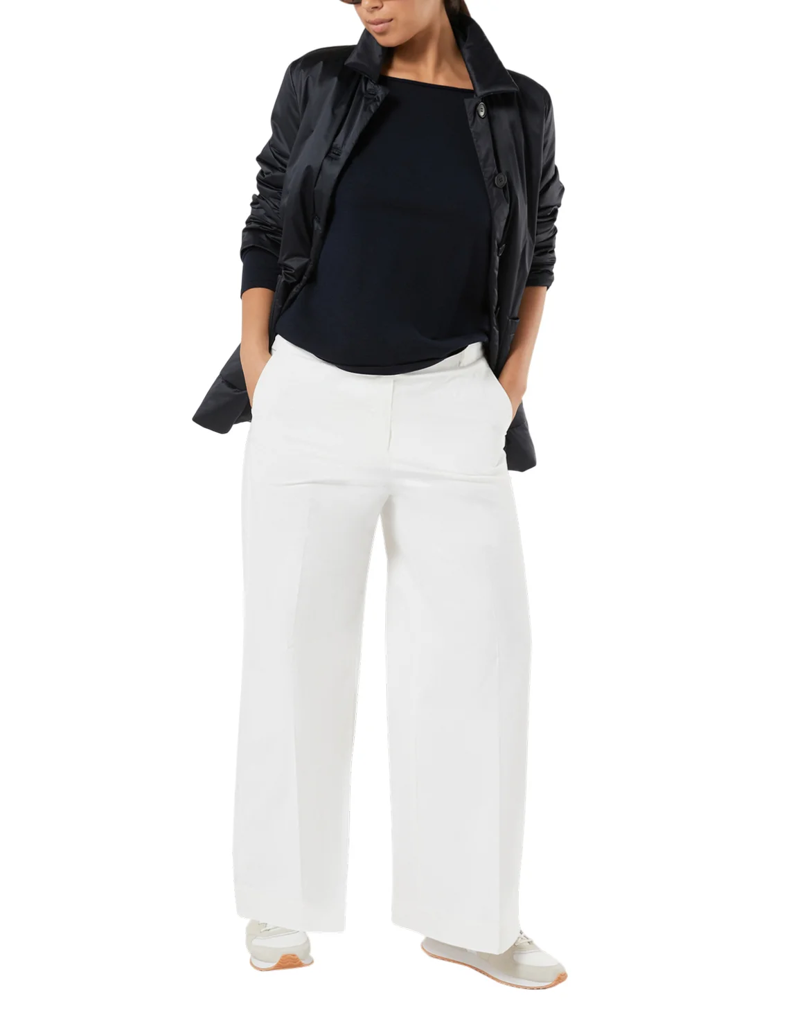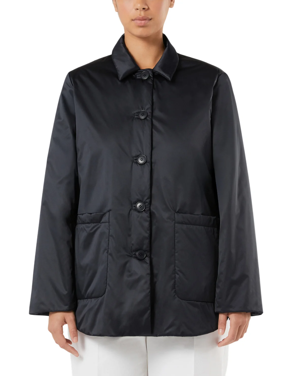 Куртка виготовлена зі 100% поліестеру, наповнювач із кашеміру, поліестеру та вовни, підкладка з поліестеру. Модель виконана в прямому крої. Має відкладний комір, довгі рукави, застібку на ґудзиках і накладні кишені.