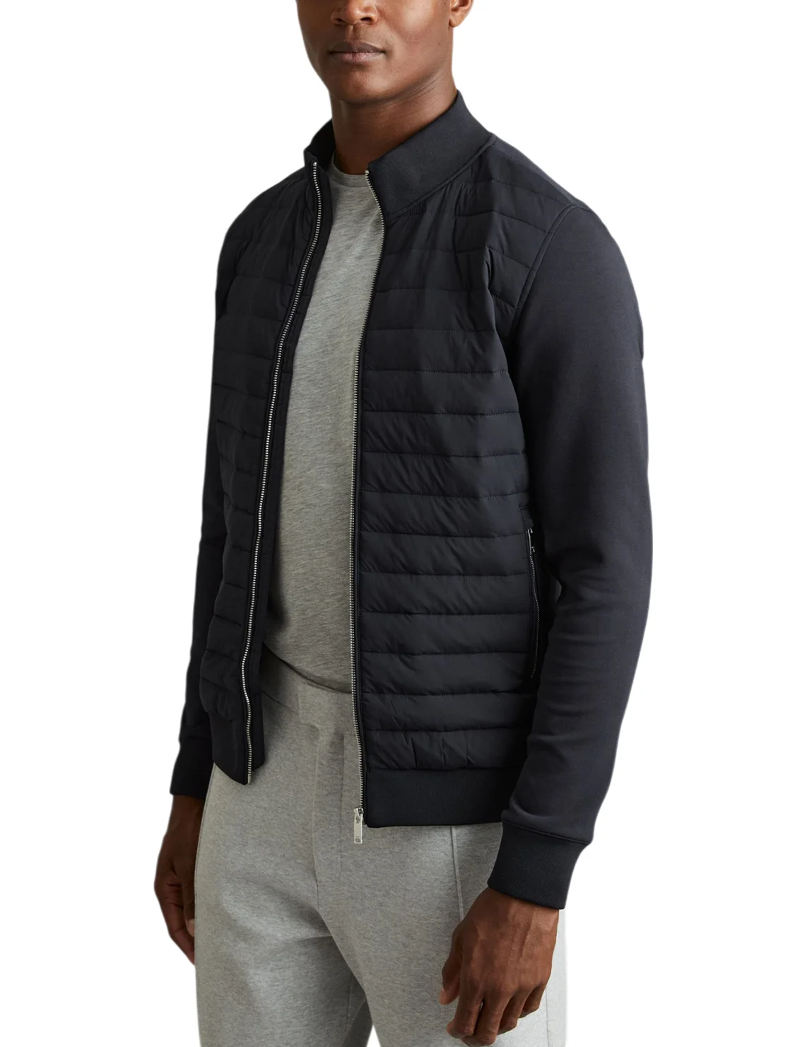 Куртка виготовлена з бавовни, поліестеру та еластану. Модель виконана в прямому крої. Має комір-стійку, застібку-блискавку, прорізні кишені на блискавці та довгі рукави з манжетами.