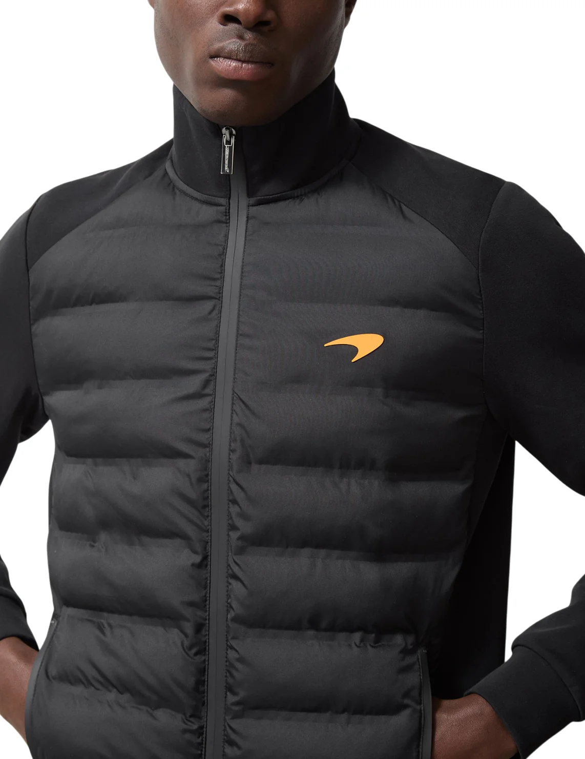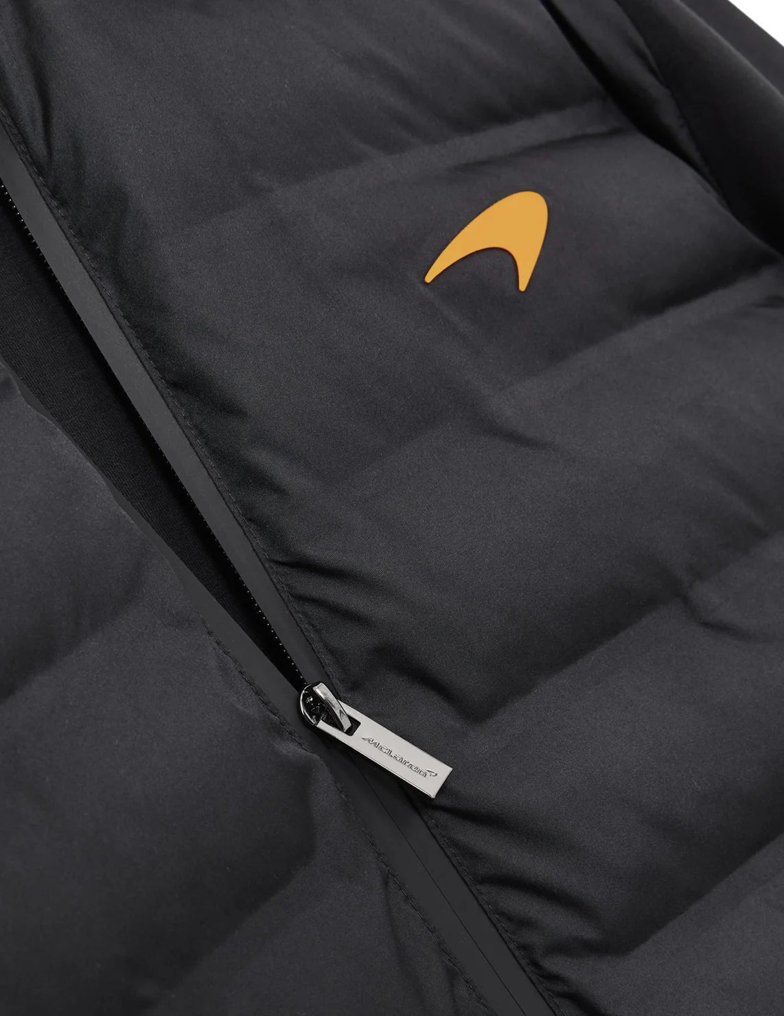 Куртка виготовлена з поліестеру, наповнювач також із поліестеру. Модель виконана в прямому крої. Має комір-стійку, застібку-блискавку, дві бічні кишені на блискавках і довгі рукави з манжетами. Декорована логотипом McLaren.