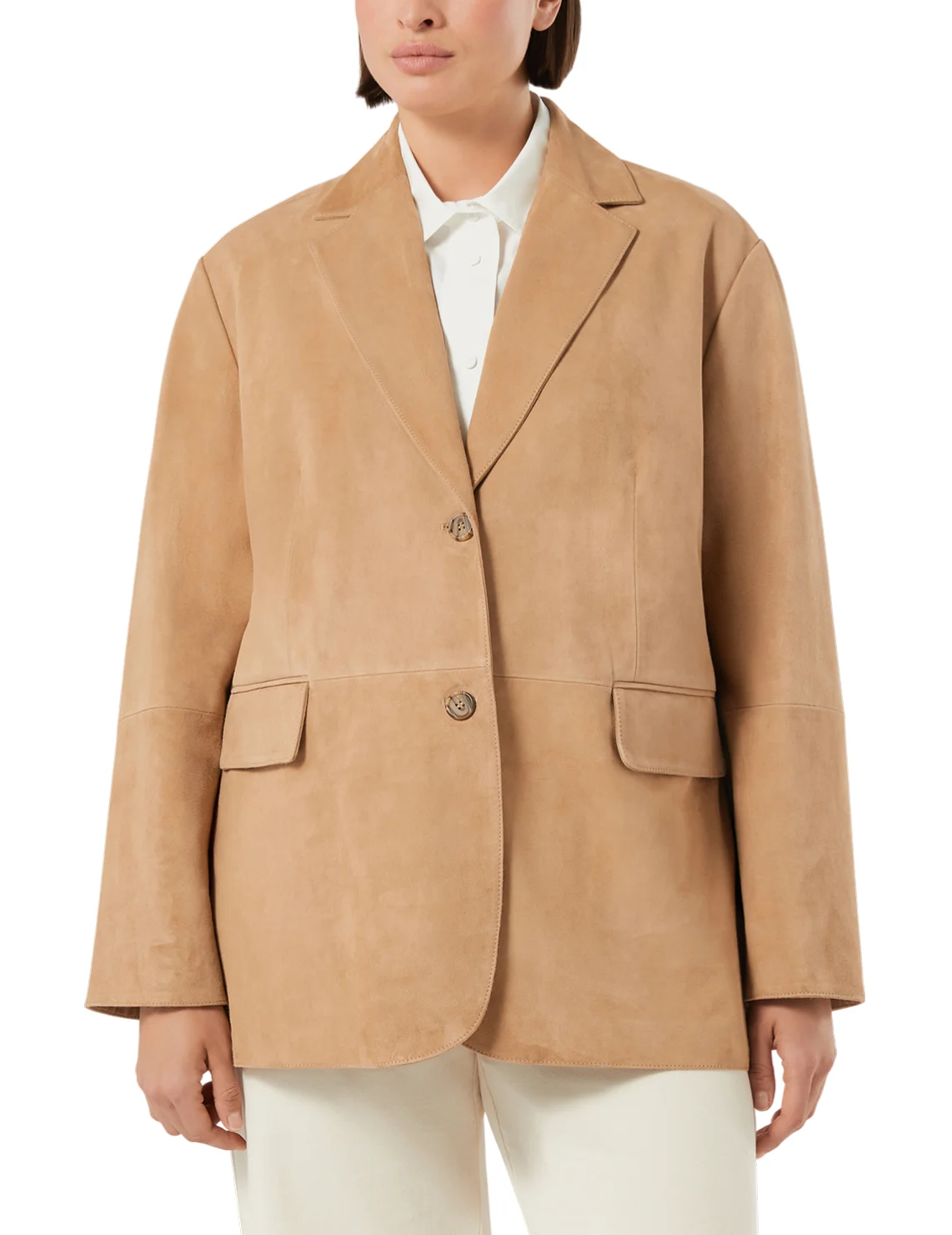 Куртка виготовлена зі 100% шкіри високої якості, підкладка з поліестеру. Модель виконана у вільному крої. Має відкладний комір з лацканами, довгі рукави, застібку на ґудзиках і кишені з клапанами.
