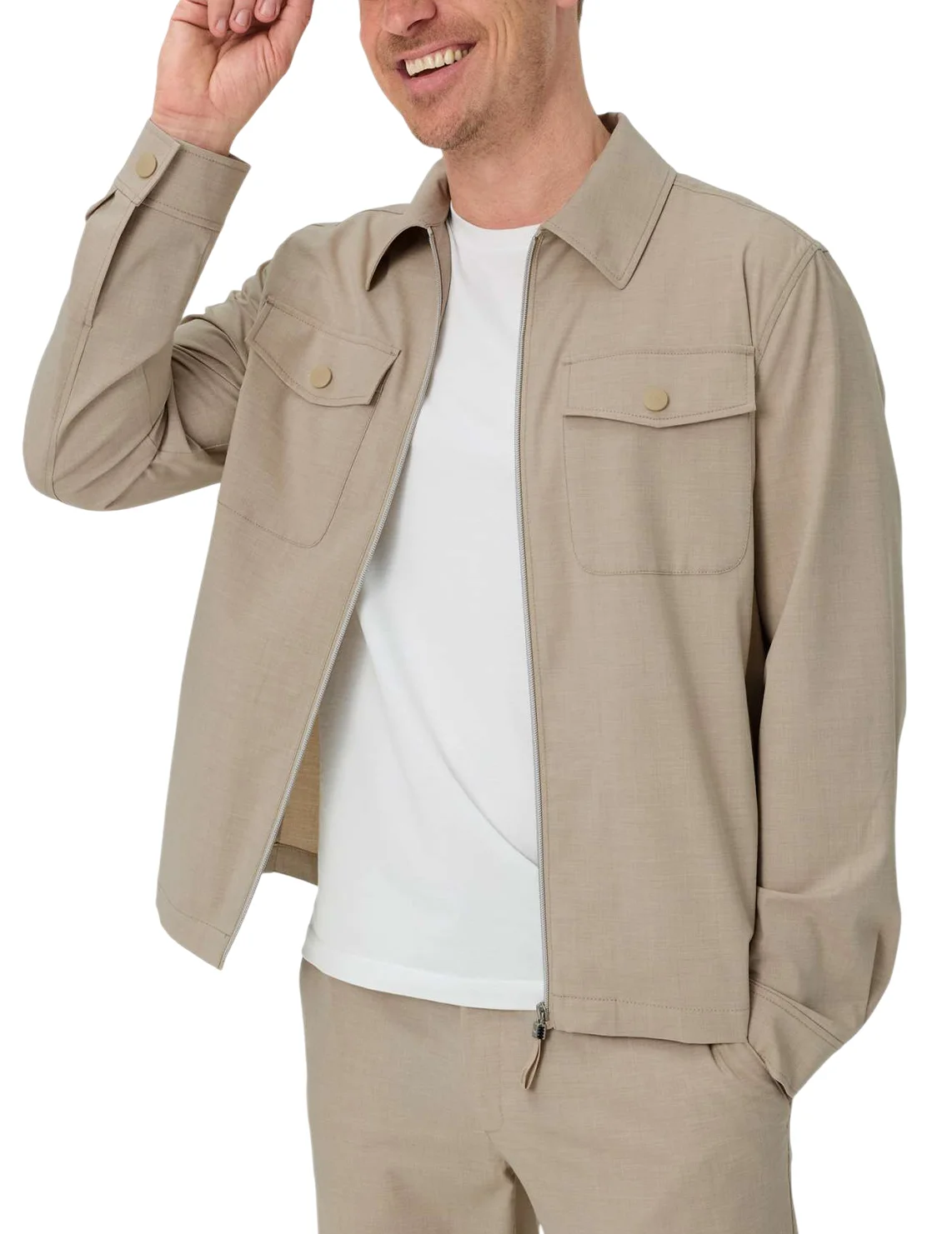 Куртка виготовлена з поліестеру, віскози та еластану. Модель виконана в прямому крої. Має відкладний комір, застібку на блискавці, довгі рукави з манжетами, прорізні бічні кишені та накладні нагрудні кишені з клапанами.