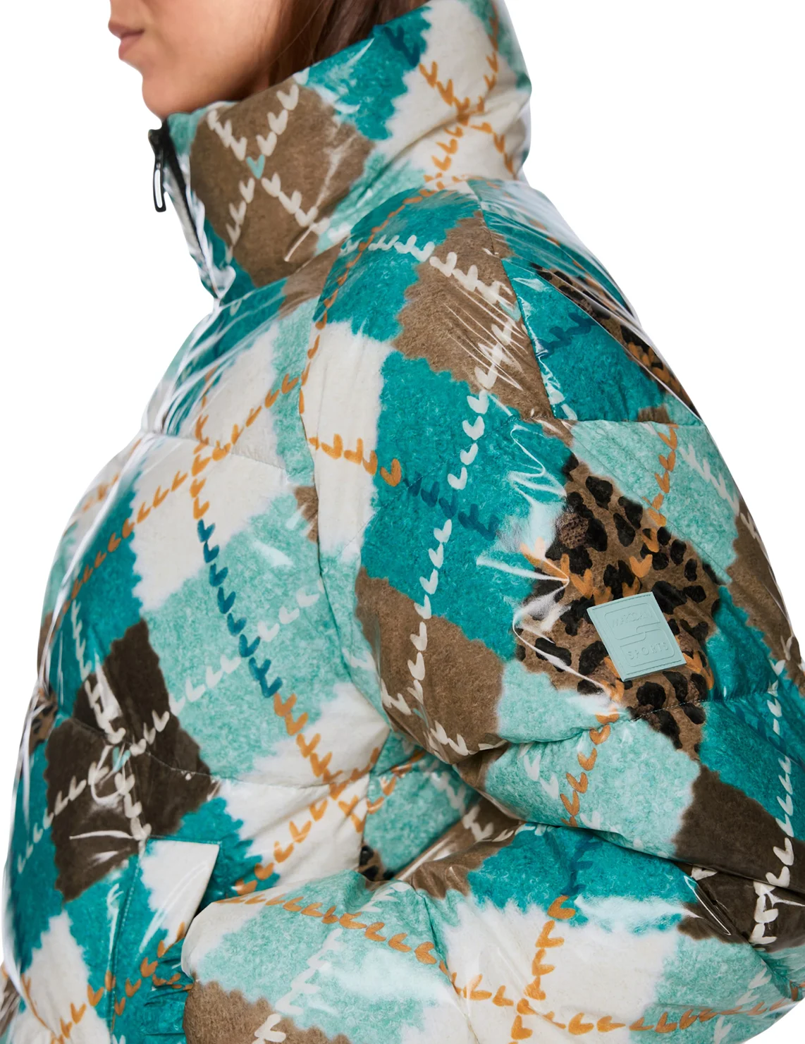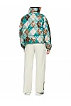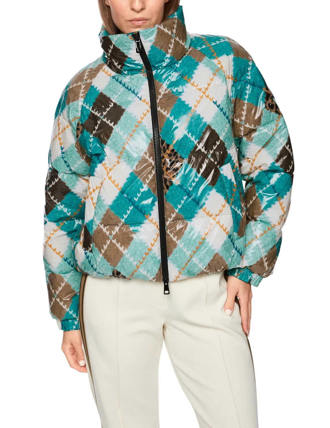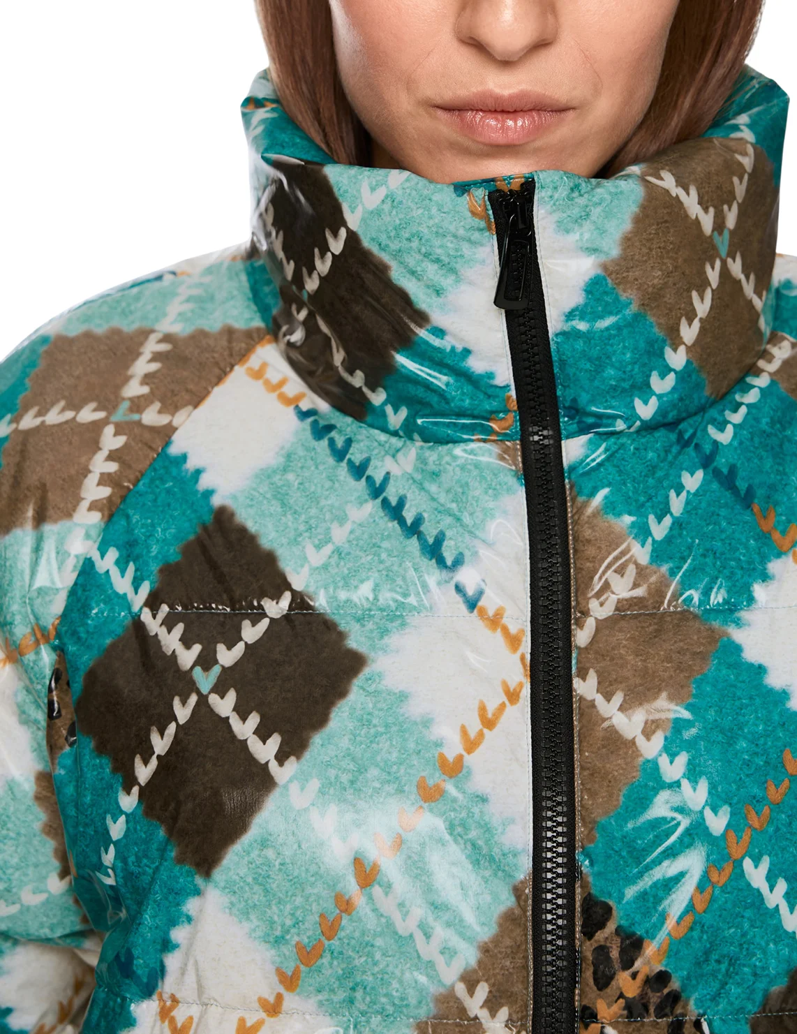 Куртка виготовлена зі 100% поліаміду з поліуретановим покриттям, наповнювач - поліестер. Модель виконана в прямому крої. Має комір-стійку, прорізні кишені, довгі рукави з манжетами та двосторонню застібку-блискавку. Декорована оригінальним принтом.