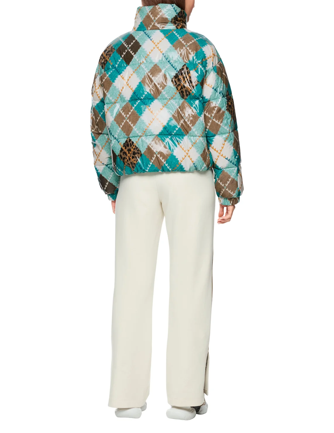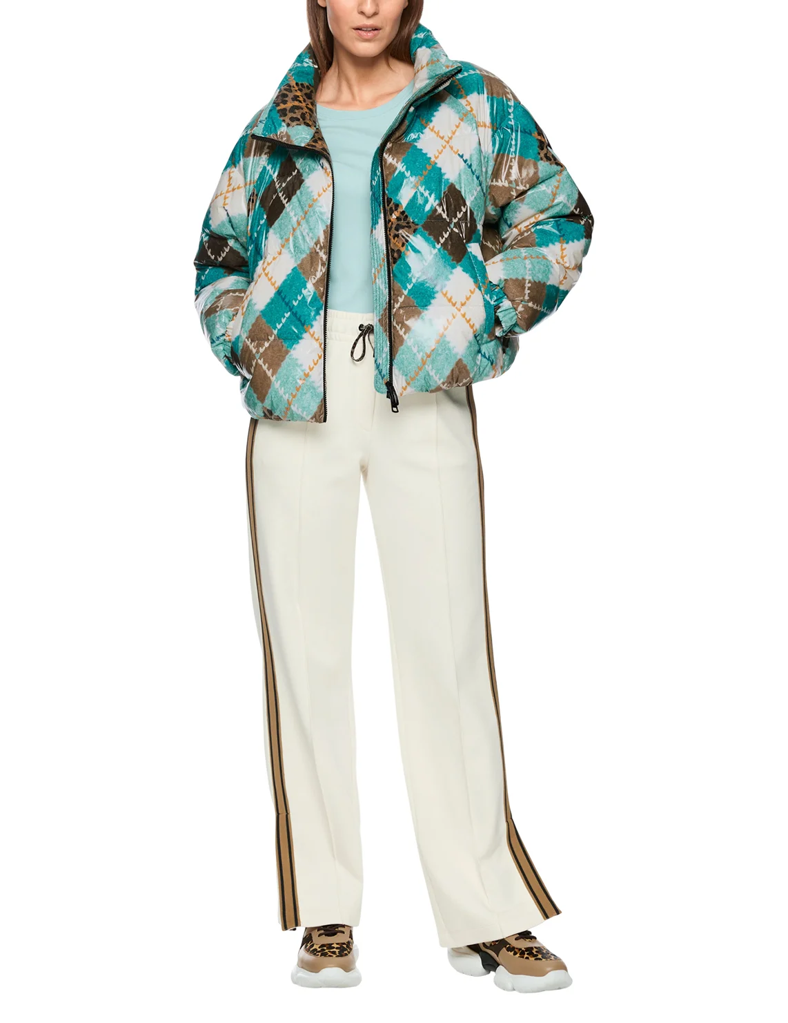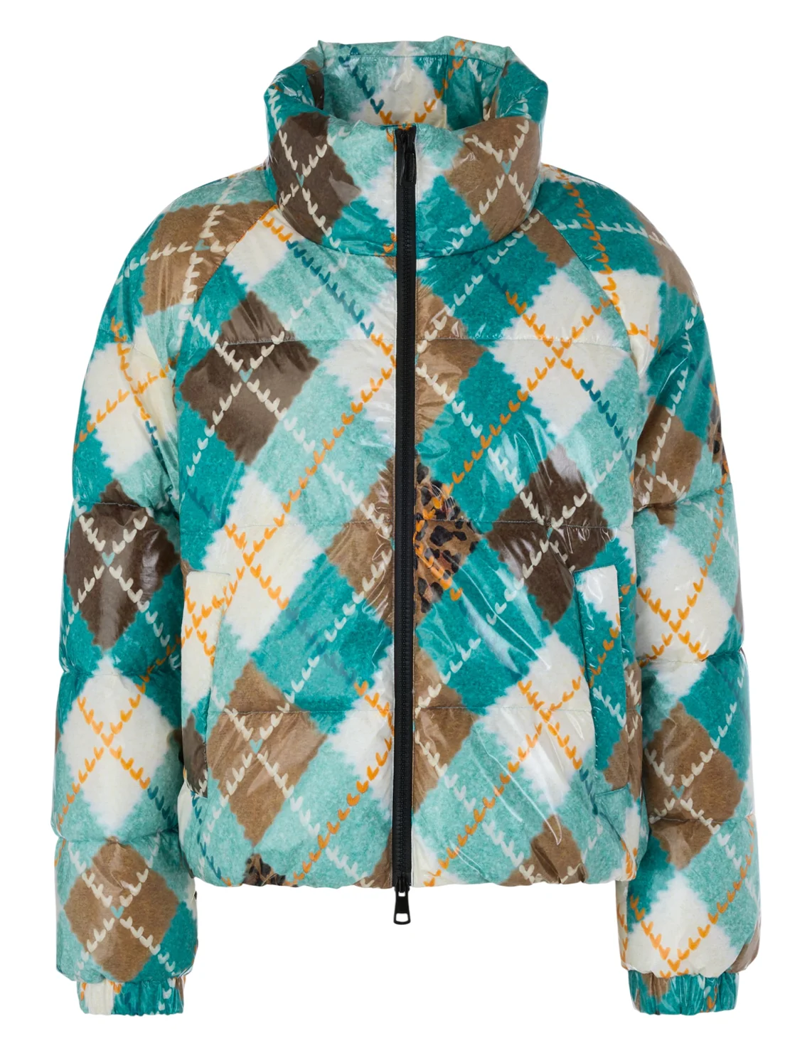 Куртка виготовлена зі 100% поліаміду з поліуретановим покриттям, наповнювач - поліестер. Модель виконана в прямому крої. Має комір-стійку, прорізні кишені, довгі рукави з манжетами та двосторонню застібку-блискавку. Декорована оригінальним принтом.
