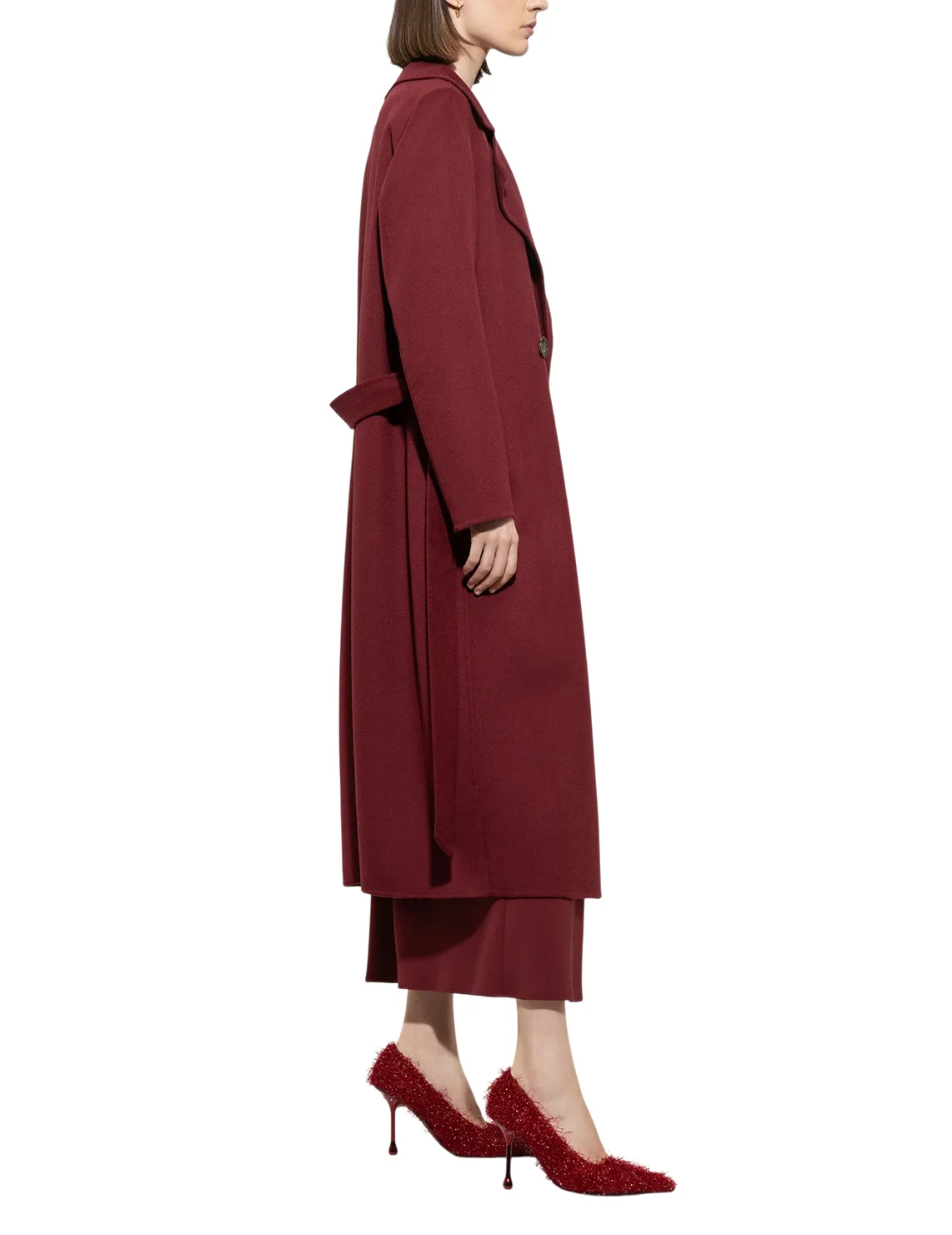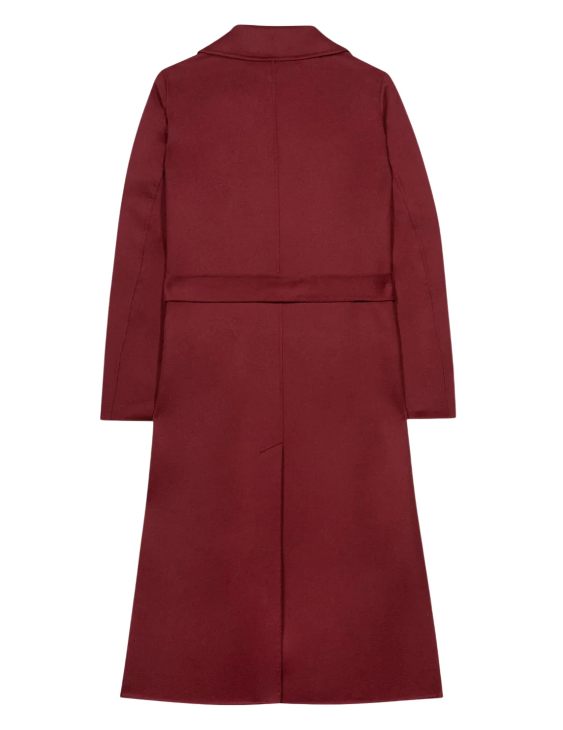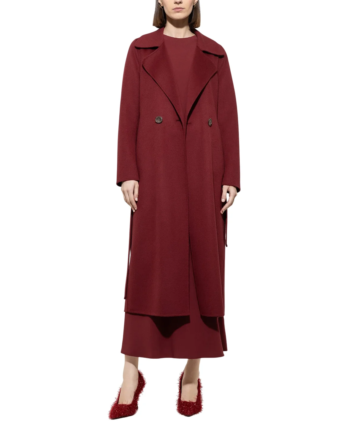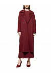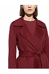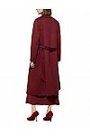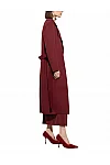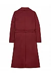 Двобортне пальто виготовлене з вовни та поліаміду, підкладка з віскози та поліестеру. Модель виконана в прямому крої. Має відкладний комір з лацканами, застібку на ґудзиках, довгі рукави, пояс у тон і прорізні кишені.