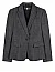 Однобортний піджак виготовлений з поліестеру, вовни та еластану, підкладка з віскози та поліестеру. Модель виконана в прямому крої. Має відкладний комір з лацканами, передні прорізні кишені з клапанами та довгі рукави. Декорований принтом у смужку.