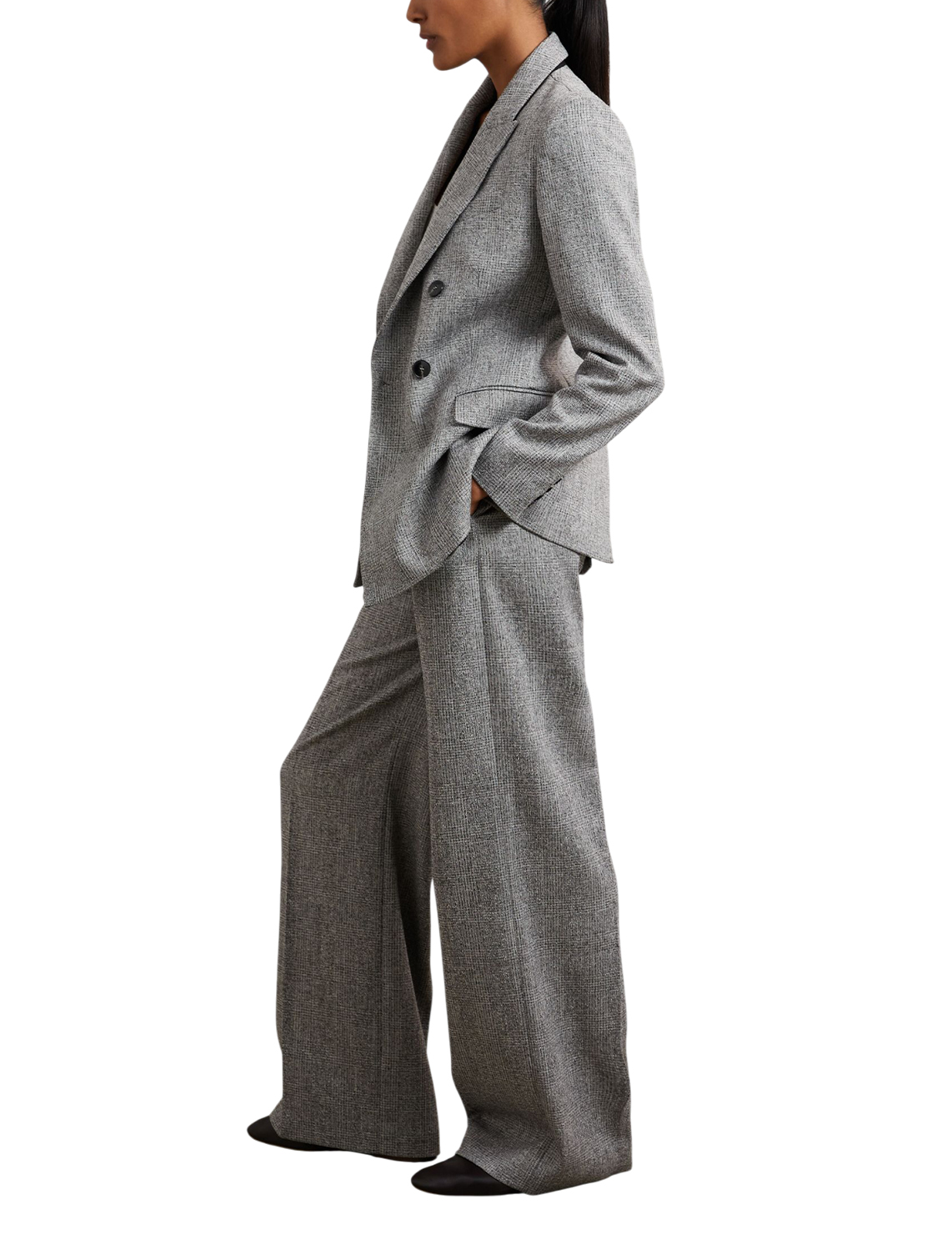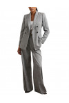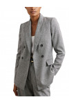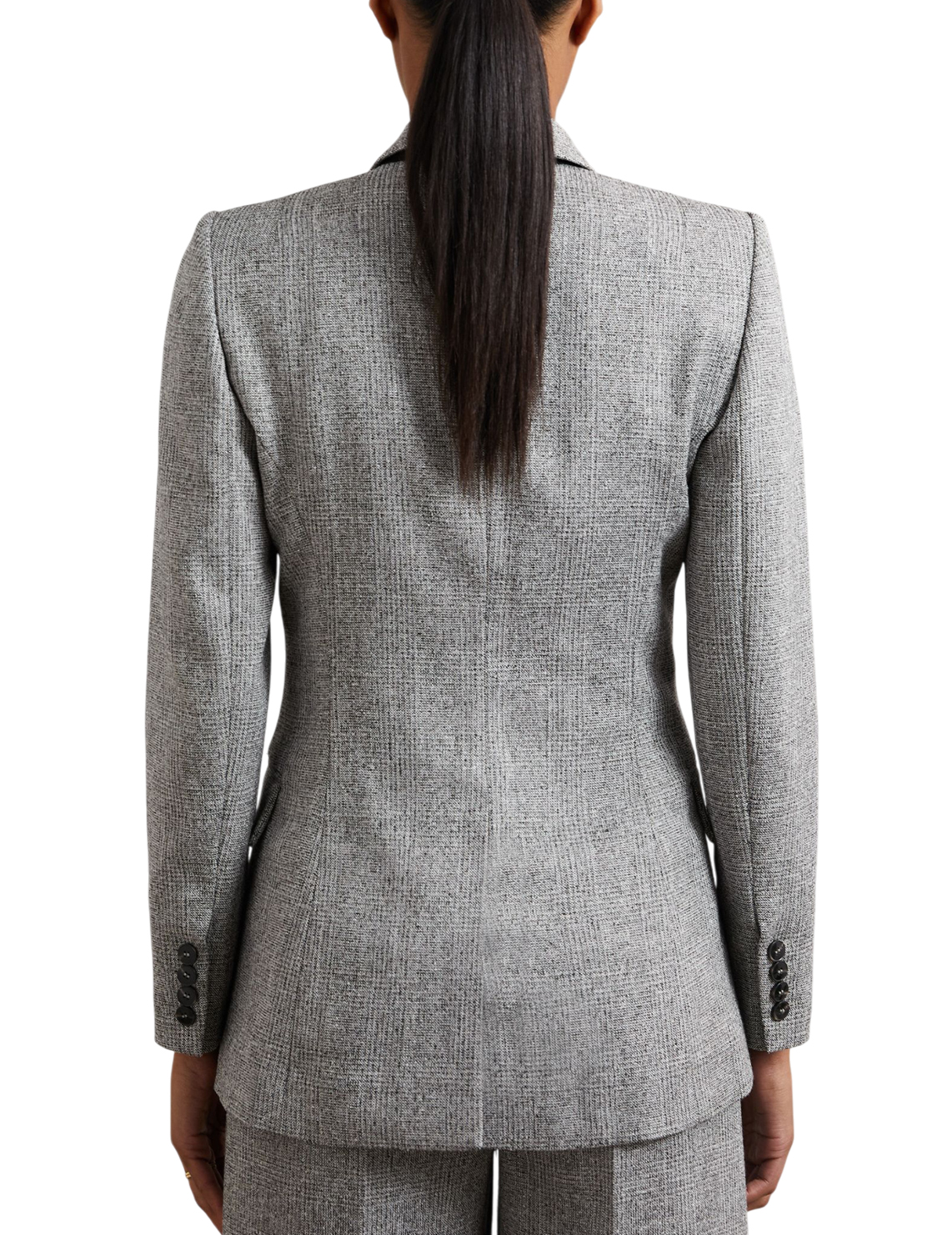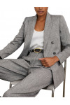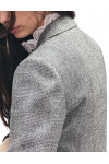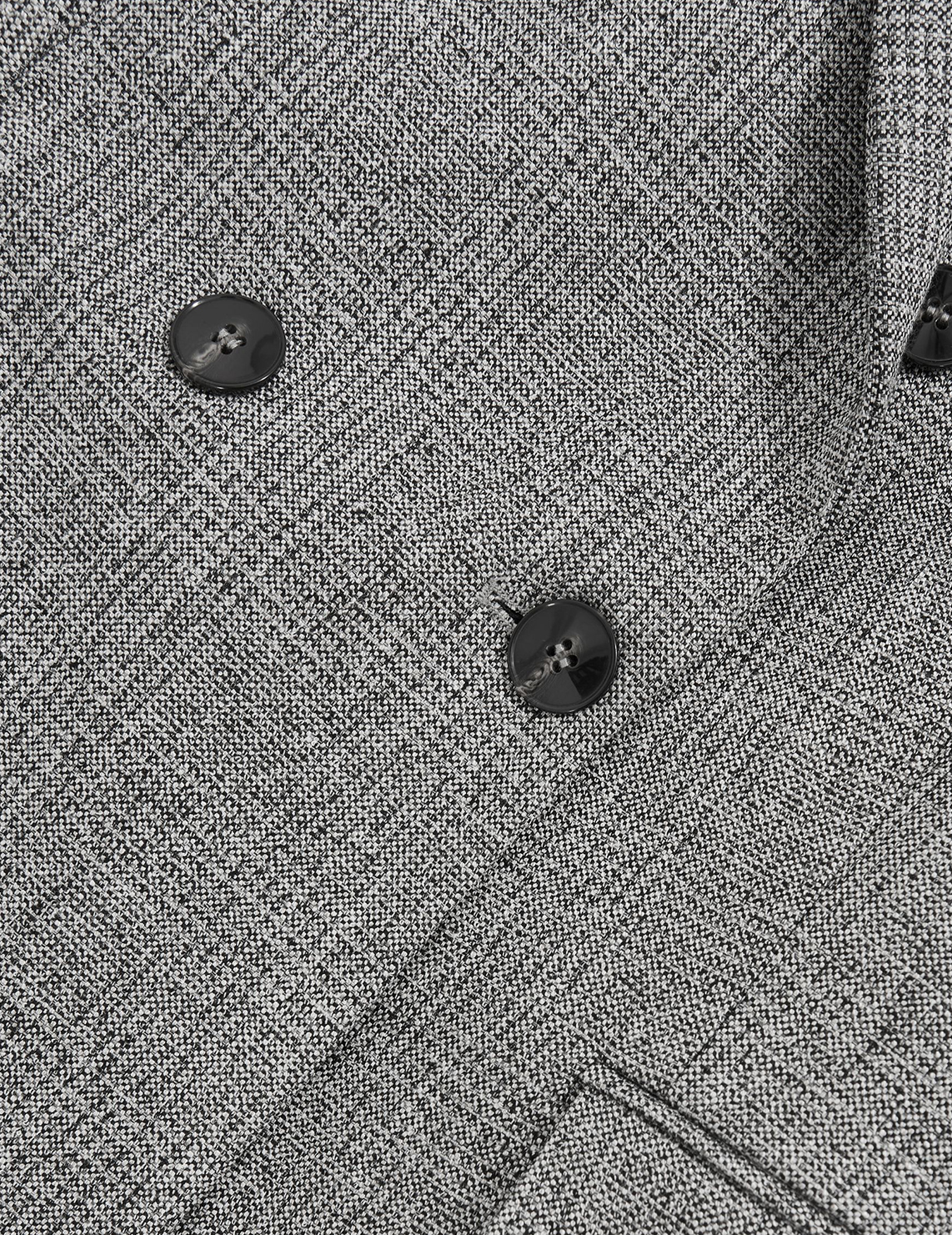 Двобортний піджак виготовлений з поліестеру, віскози та еластану. Модель виконана в прямому крої. Має відкладний комір з лацканами, довгі рукави, застібку на ґудзиках і декоративні клапани. Декорований принтом у клітинку.