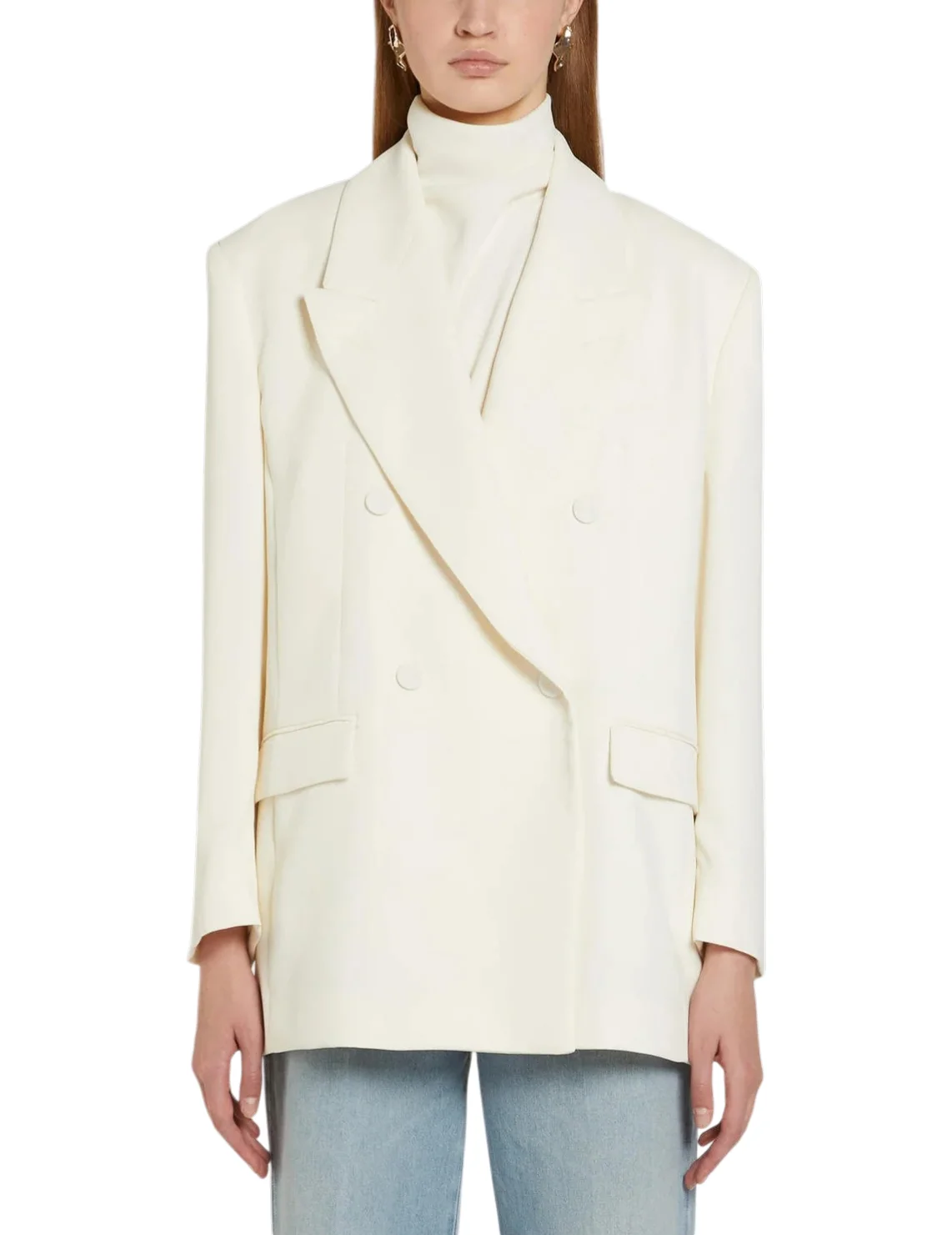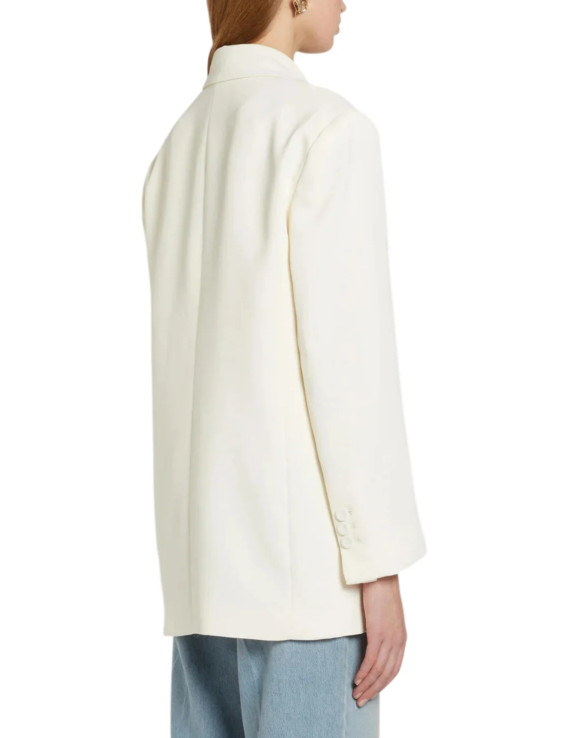 Піджак виготовлений зі 100% поліестеру, підкладка з ацетату та поліестеру. Модель виконана в прямому крої. Має відкладний комір з лацканами, застібку на ґудзиках, передні прорізні кишені з клапанами та довгі рукави.