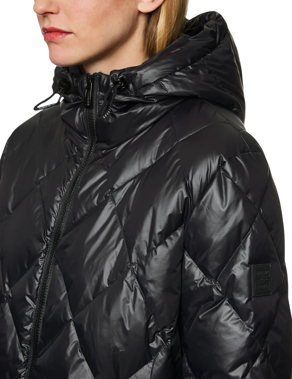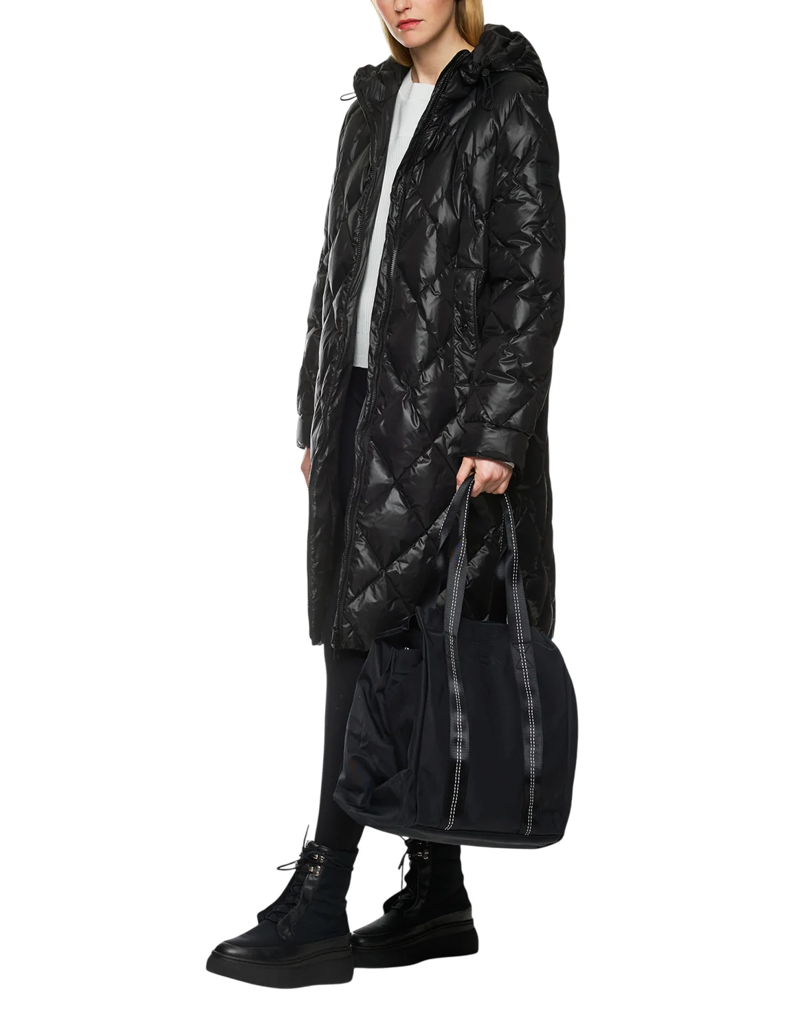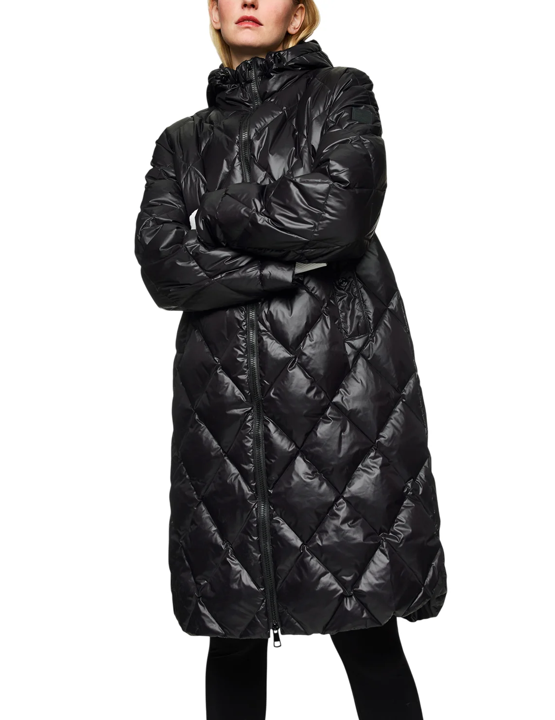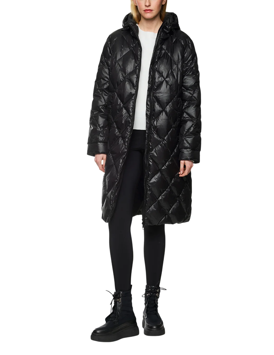 Пуховик виготовлений зі 100% поліаміду, наповнювач - 90% пух, 10% перо. Модель виконана в прямому крої. Має капюшон з куліскою, довгі рукави з манжетами, прорізні кишені на кнопках та двосторонню застібку-блискавку.