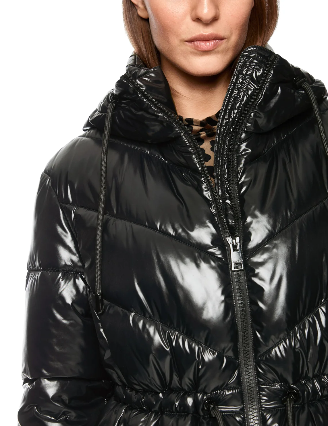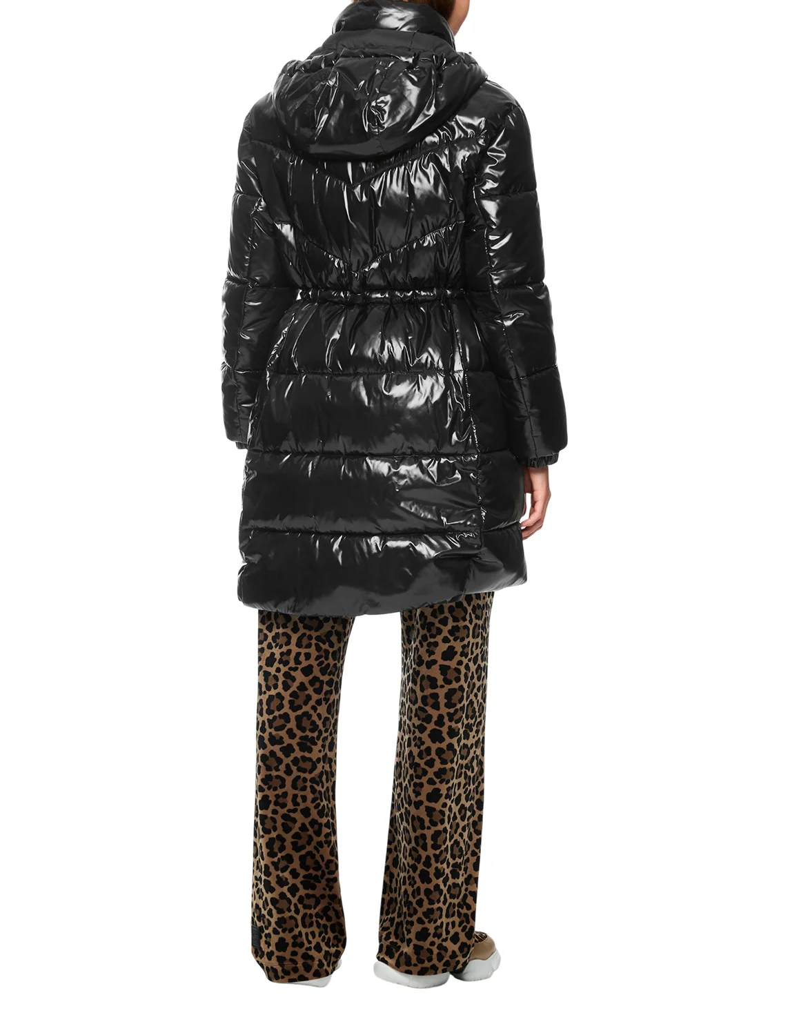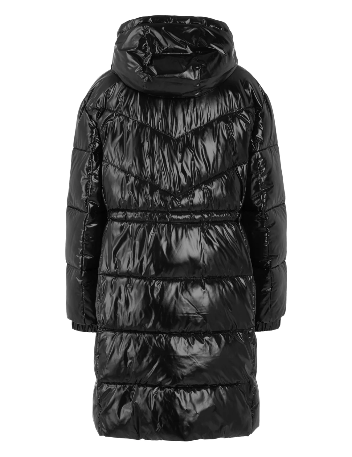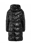 Пуховик виготовлений зі 100% поліаміду, наповнювач - поліестер. Модель виконана в прямому крої. Має капюшон з куліскою, довгі рукави з манжетами, прорізні кишені, куліску на талії та двосторонню застібку-блискавку.