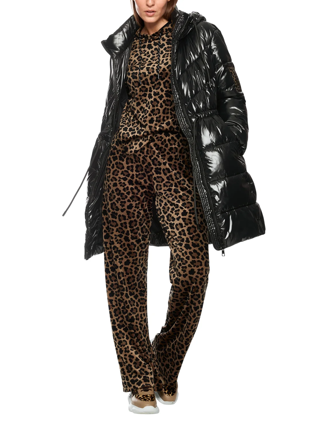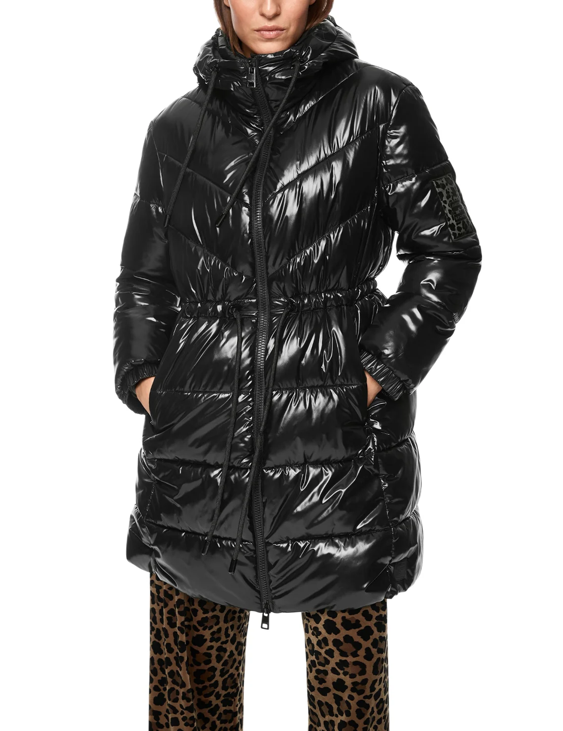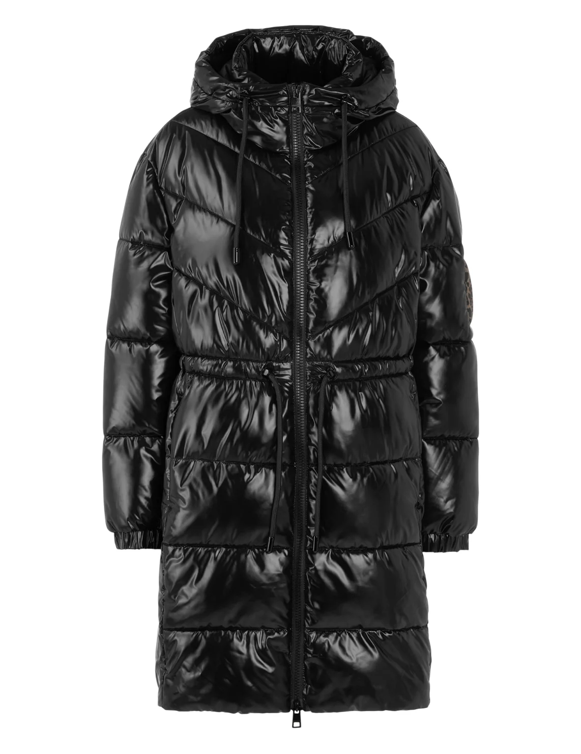 Пуховик виготовлений зі 100% поліаміду, наповнювач - поліестер. Модель виконана в прямому крої. Має капюшон з куліскою, довгі рукави з манжетами, прорізні кишені, куліску на талії та двосторонню застібку-блискавку.