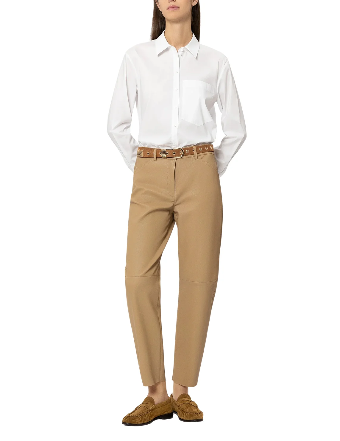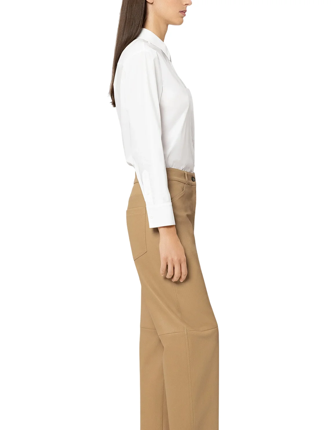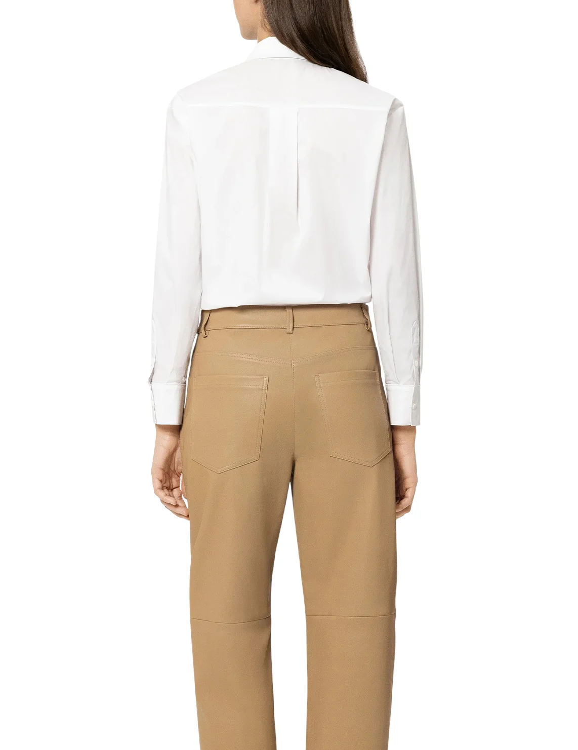 Сорочка виготовлена з бавовни, поліаміду та еластану. Модель виконана в прямому крої. Має відкладний комір, планку на ґудзиках, бічні розрізи, нагрудну кишеню та довгі рукави з манжетами.