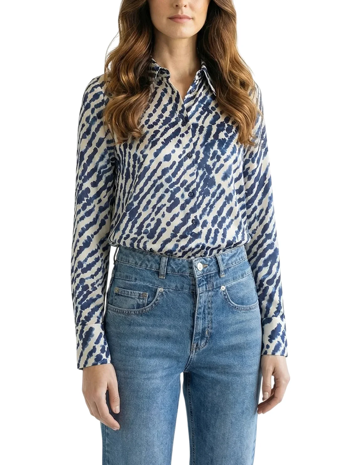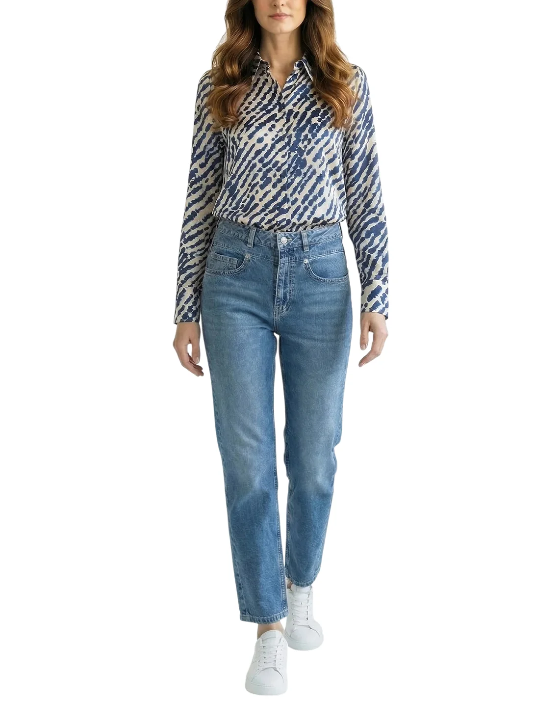 Сорочка виготовлена зі 100% віскози високої якості. Модель виконана в прямому крої. Має відкладний комір, планку з ґудзиками та довгі рукави з манжетами. Декорована оригінальним принтом.