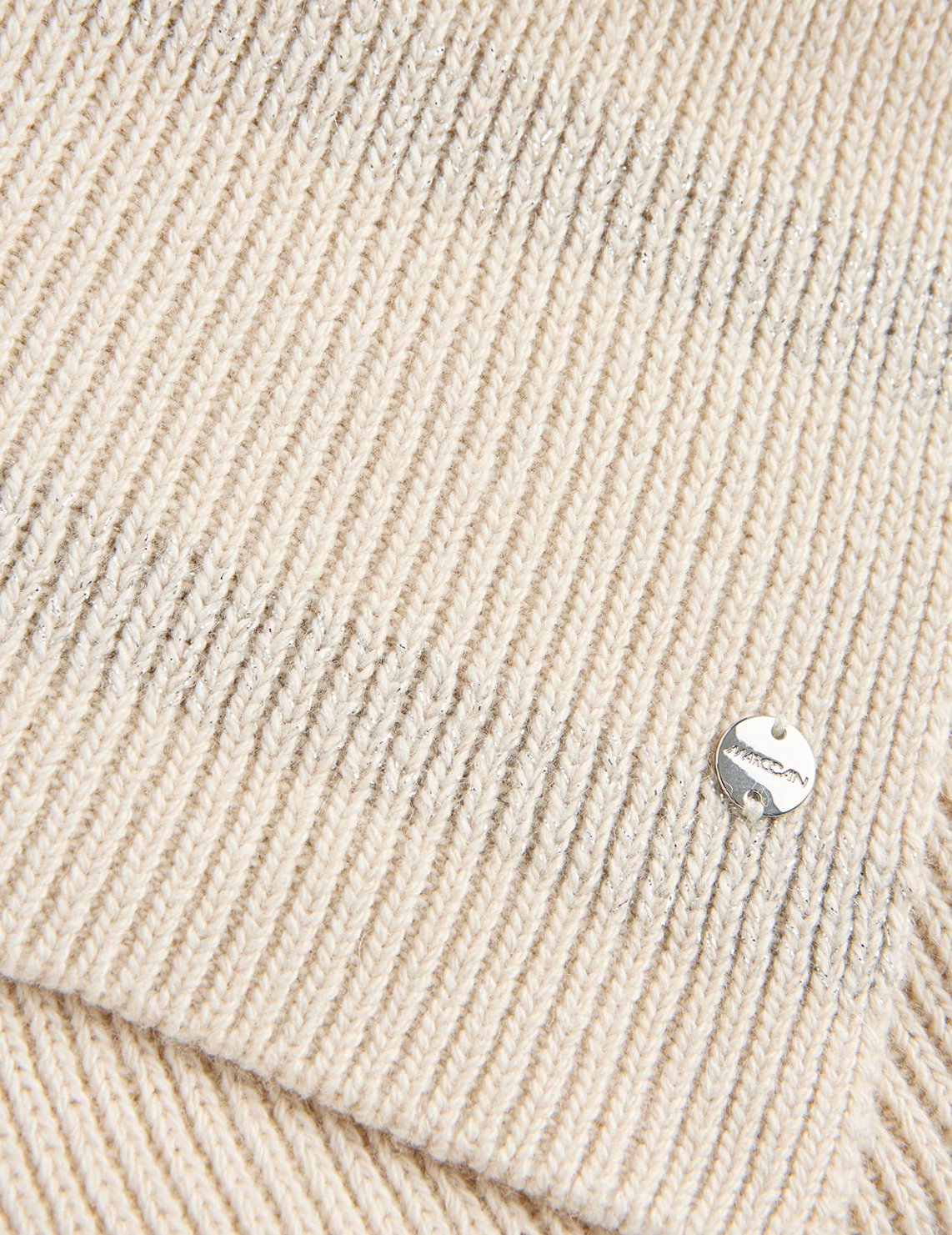 Шарф виготовлений з поліаміду, віскози, вовни, кашеміру та металізованого волокна. Модель має нашивку з логотипом бренду та принт у смужку.