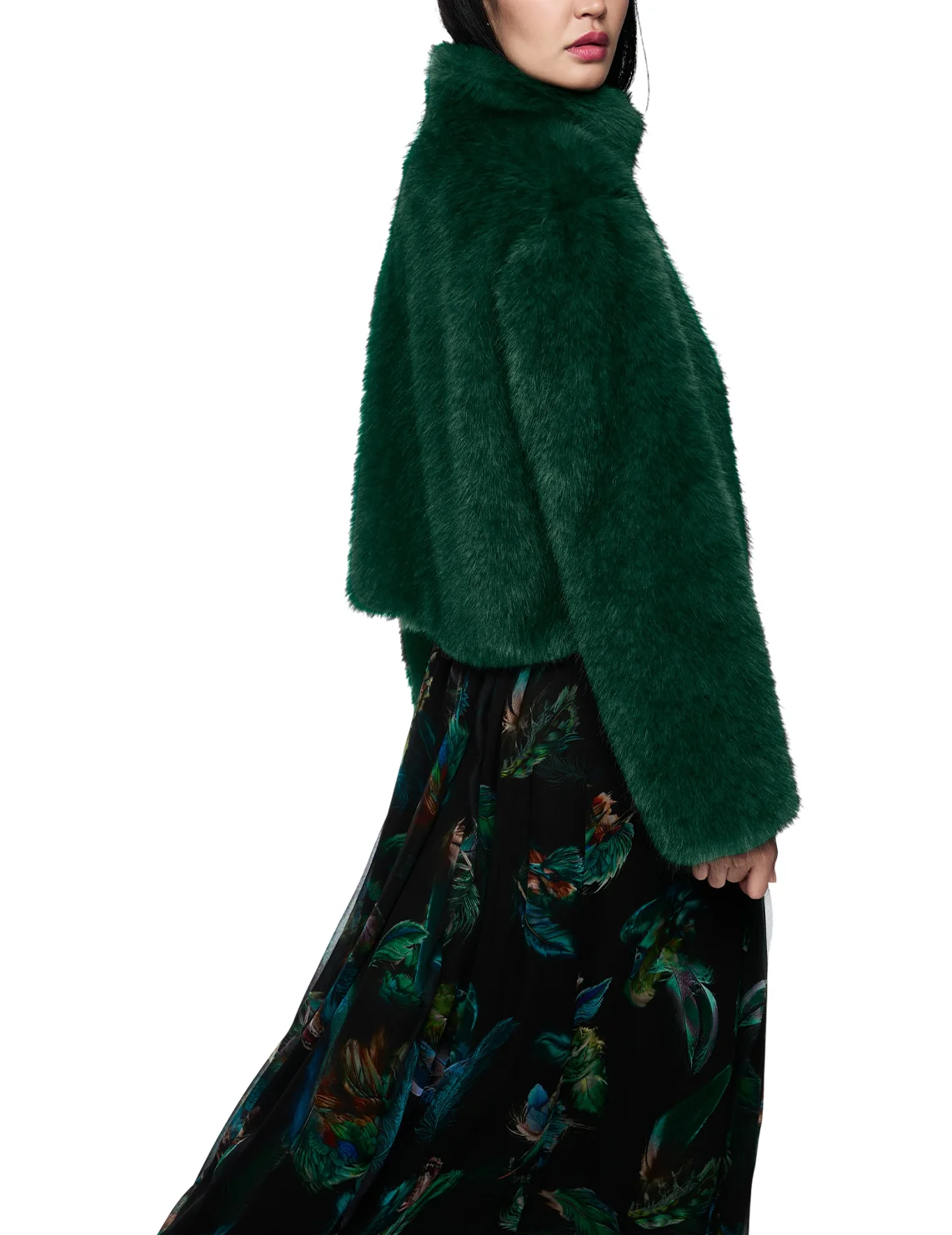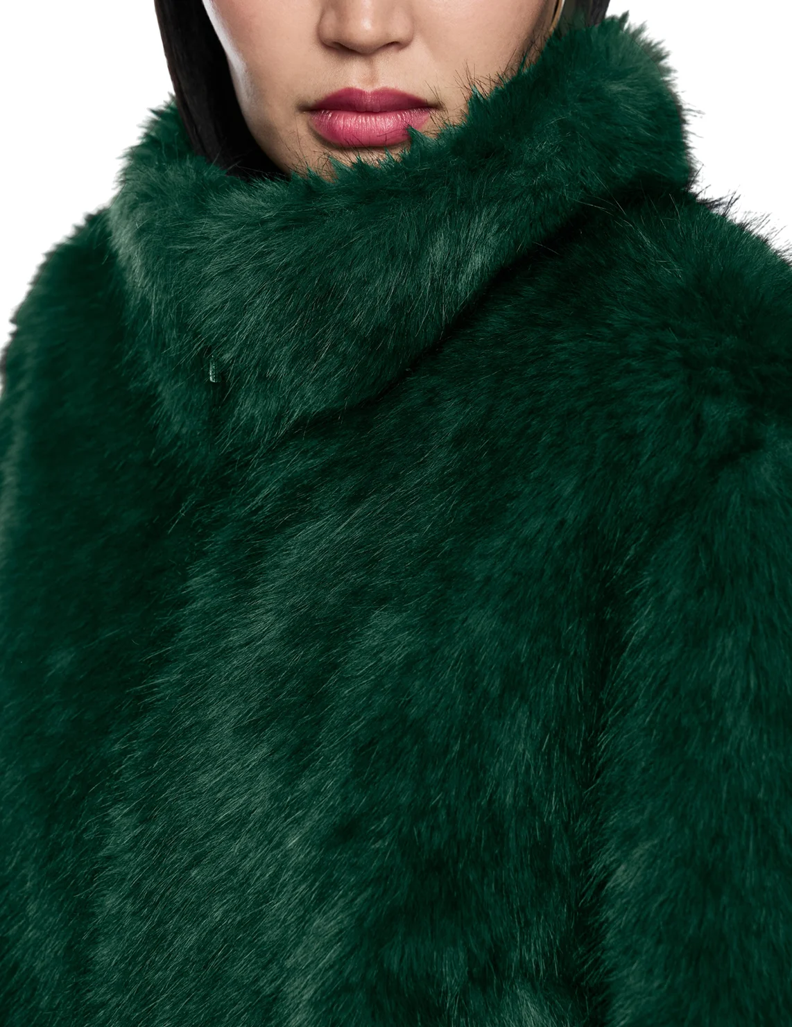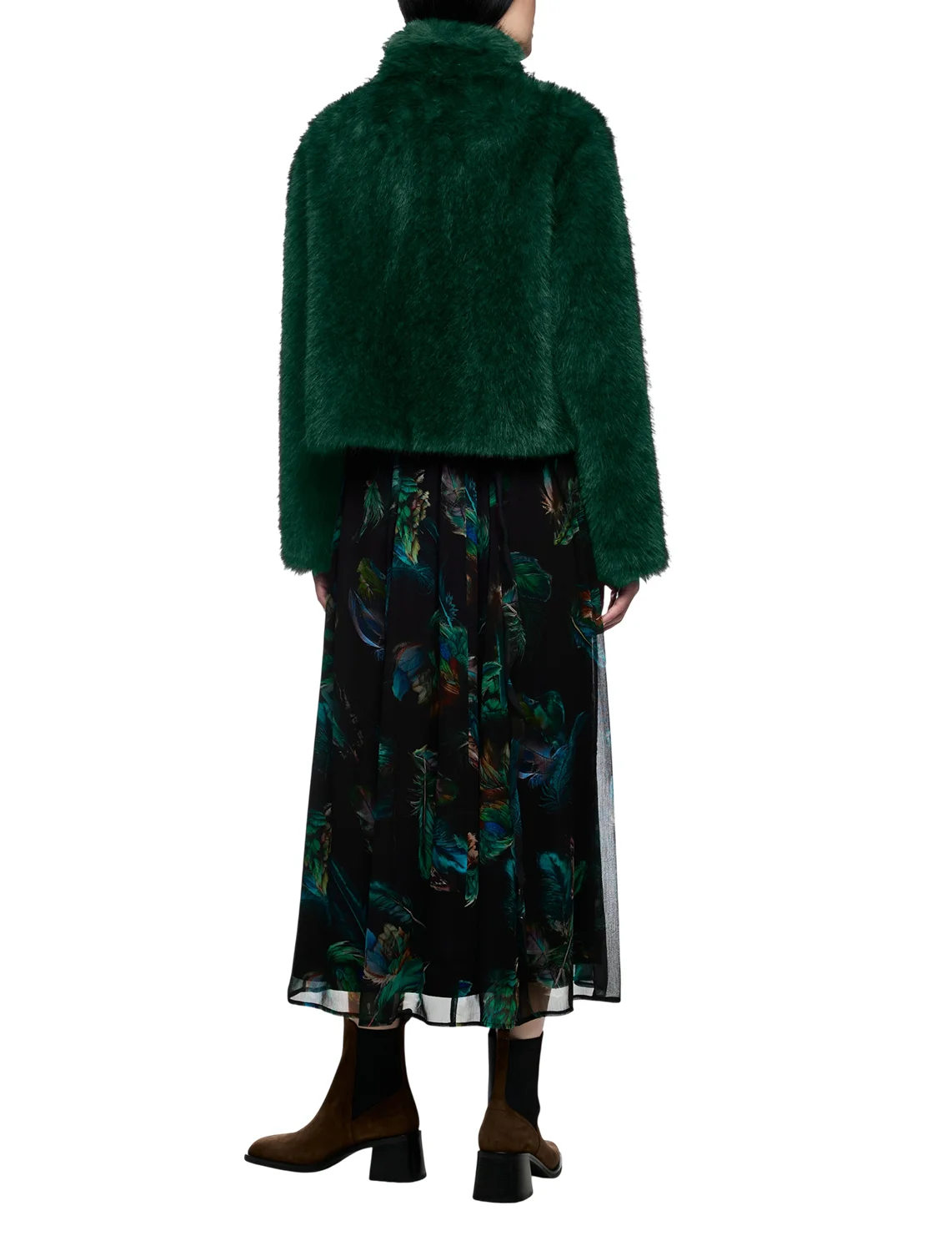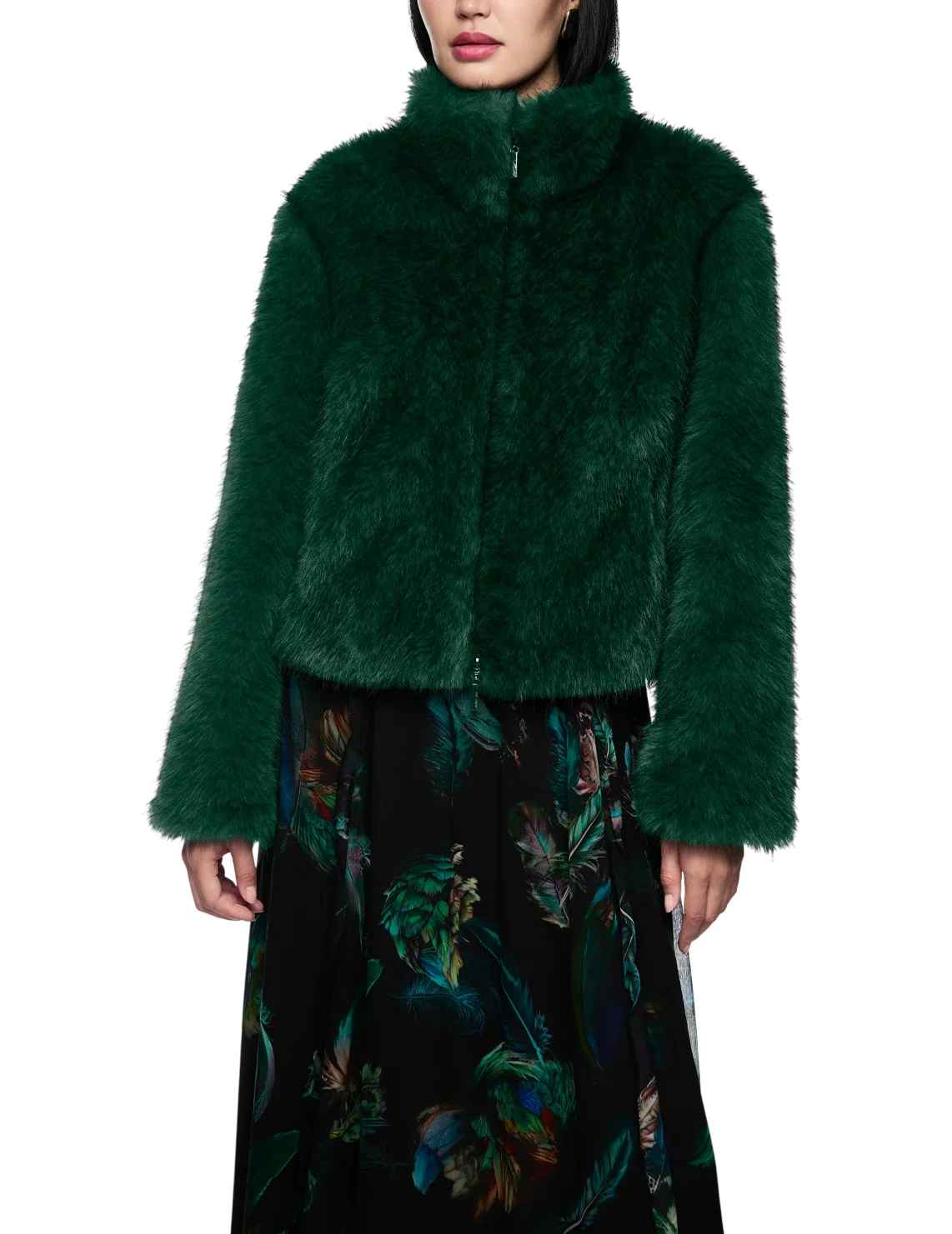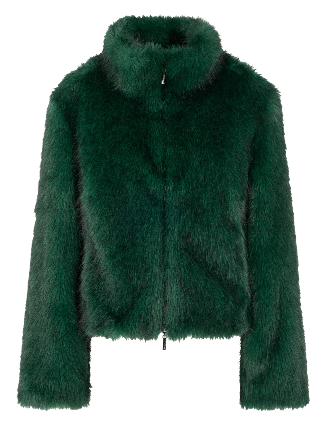 Шуба виготовлена зі 100% поліестеру, підкладка також із поліестеру. Модель виконана в прямому крої. Має комір-стійку, прорізні кишені, довгі рукави та двосторонню застібку на блискавці.
