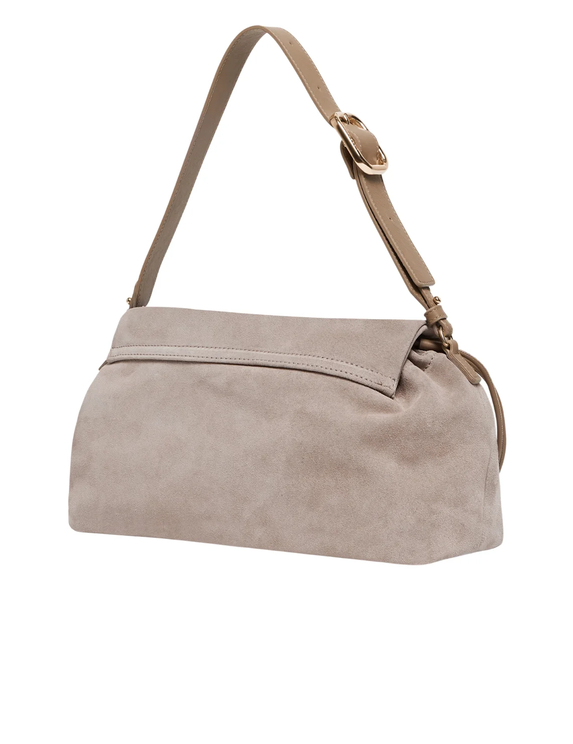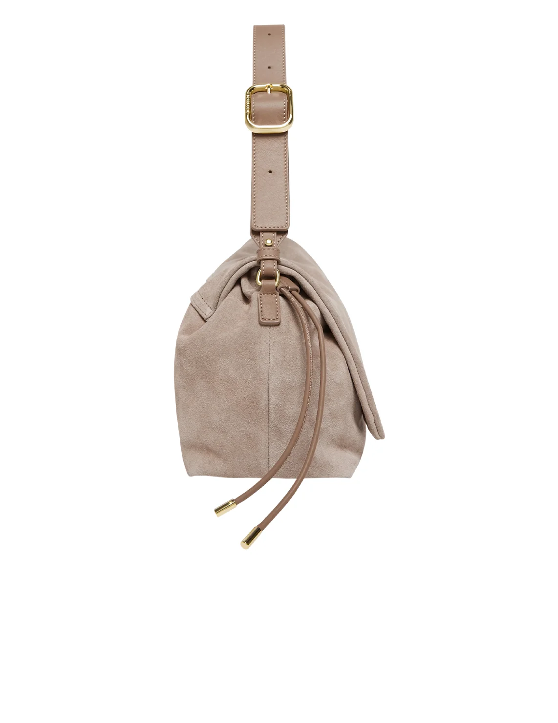 Сумка виготовлена з натуральної шкіри, підкладка з бавовни. Модель має регульований ремінь, клапан із магнітною застібкою, куліску та внутрішню кишеню на блискавці. Дизайн доповнено тисненням із логотипом бренду.