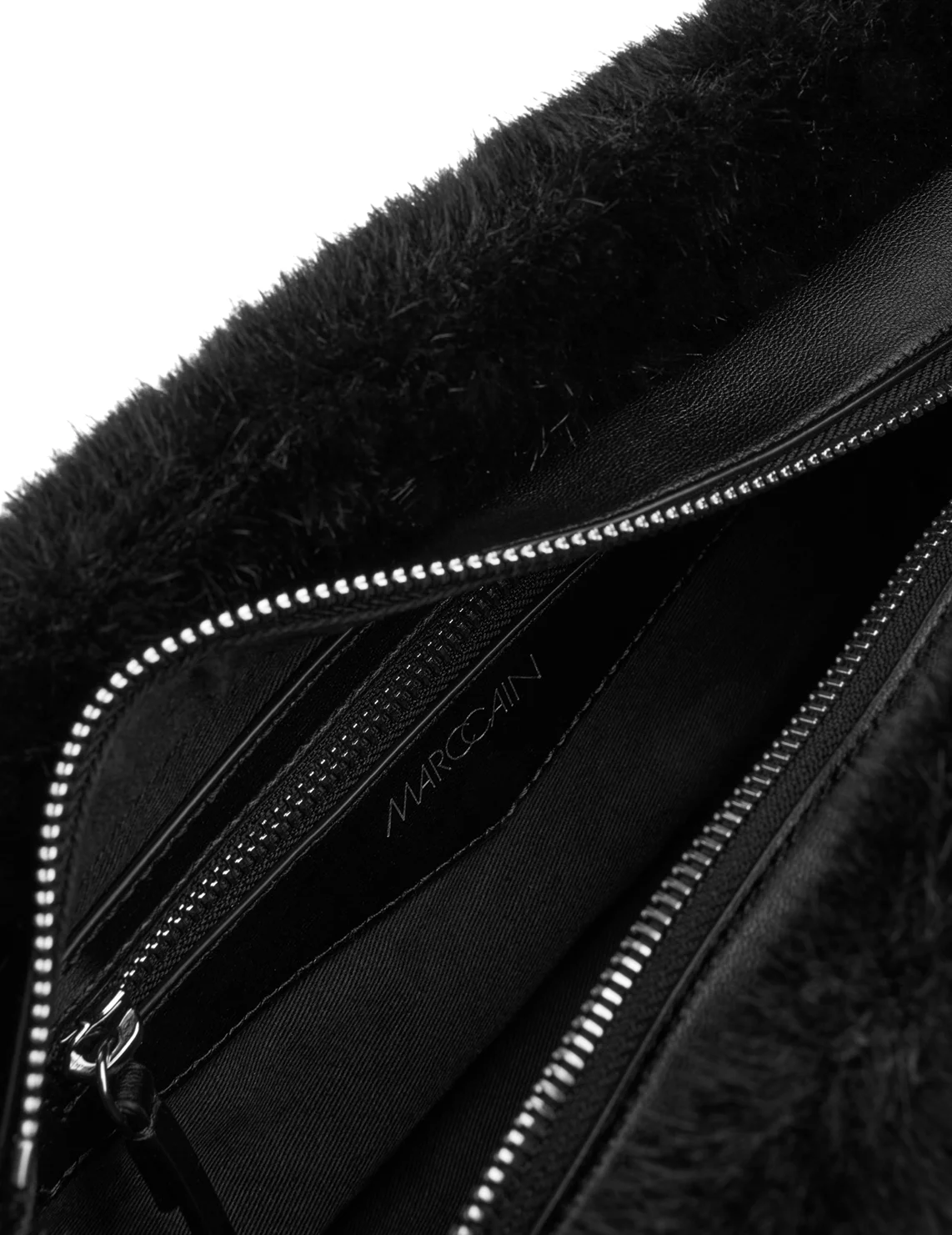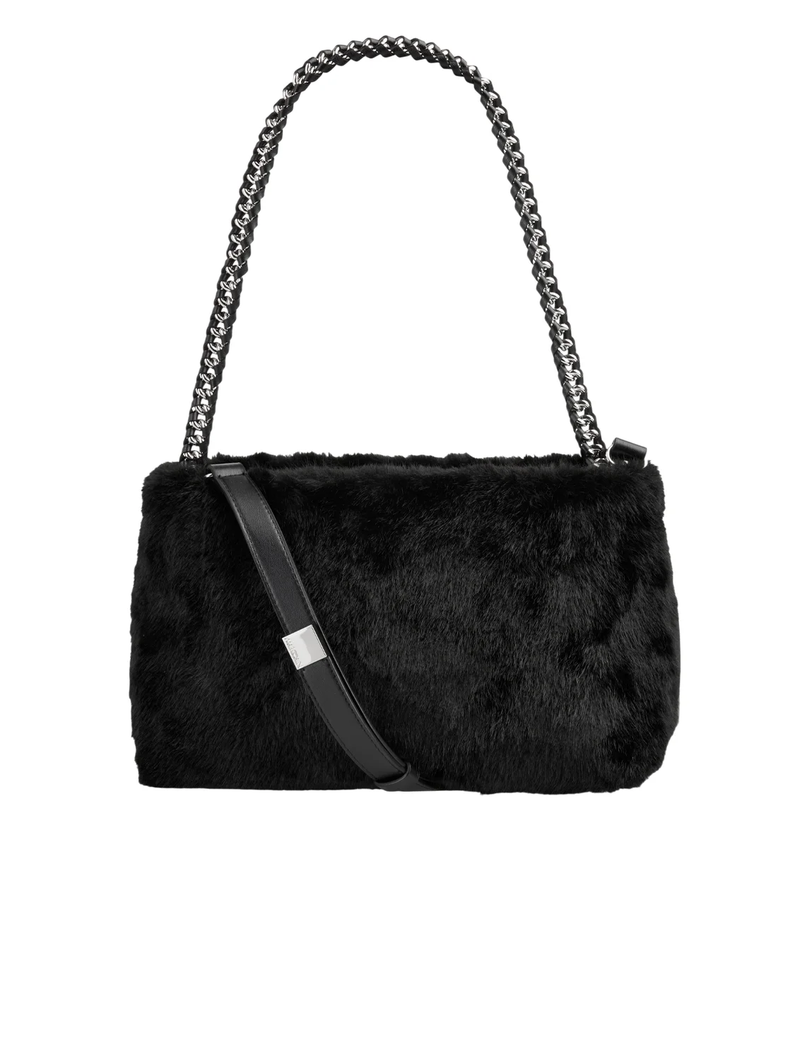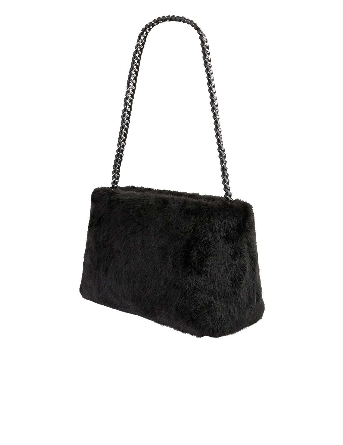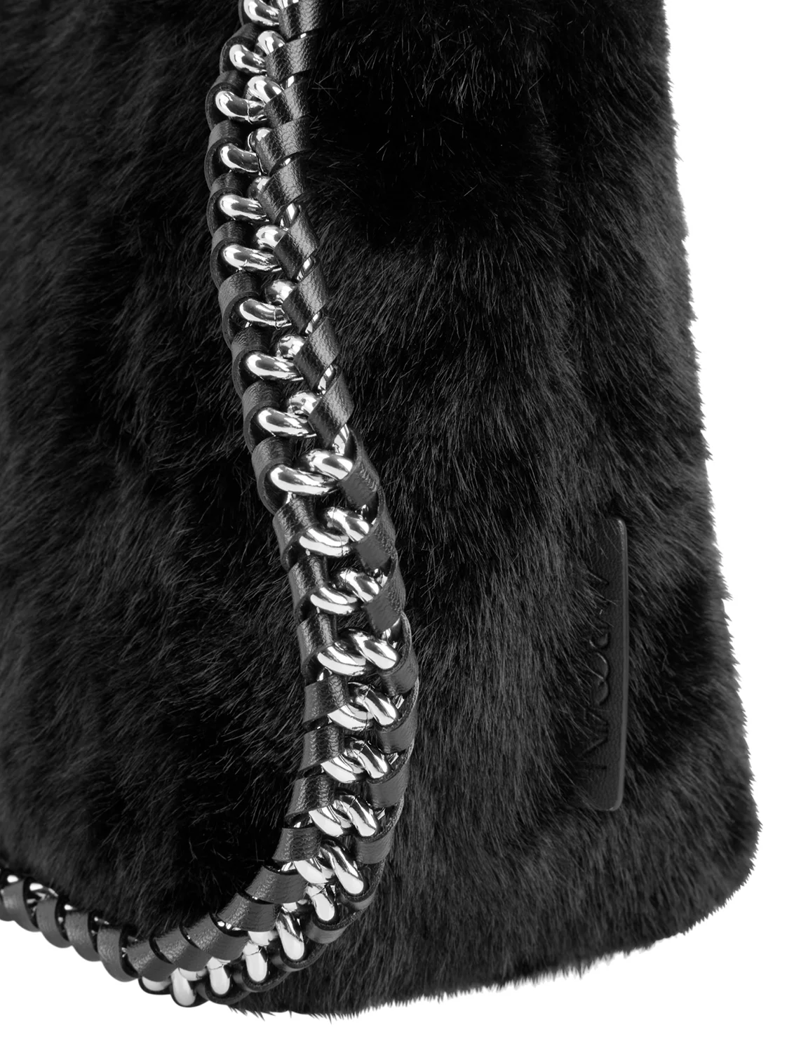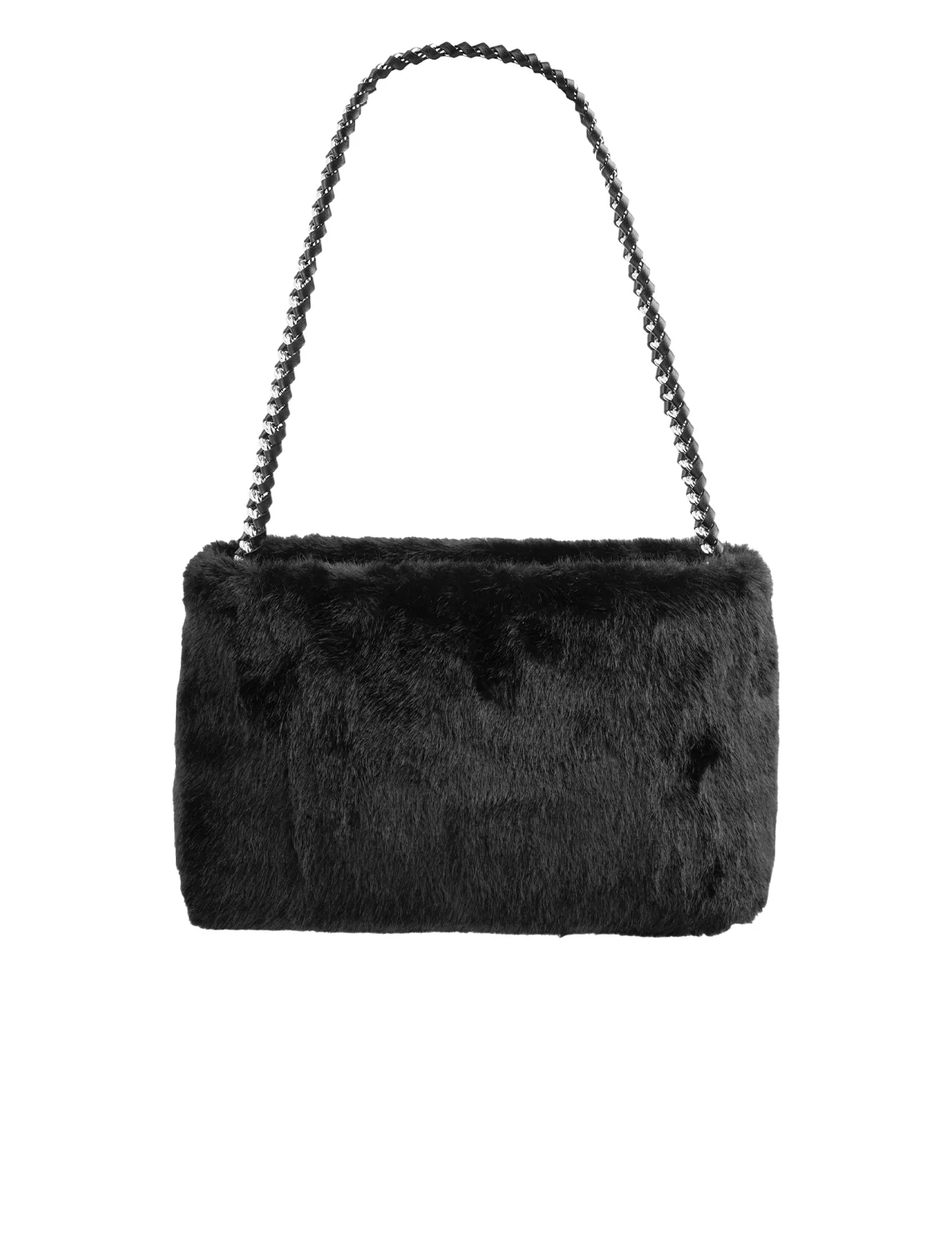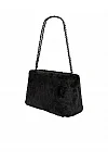 Хутряна сумка виготовлена зі 100% поліестеру, підкладка з бавовни. Модель має внутрішню кишеню на блискавці, ручку у вигляді ланцюжка, знімний плечовий ремінь і застібку-блискавку.