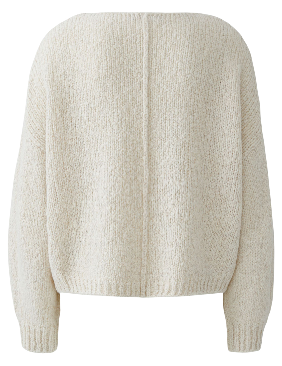 Светр виготовлений із поліакрилу, вовни, поліаміду та мохеру. Модель виконана у вільному крої. Має круглий виріз горловини, занижену плечову лінію та довгі рукави з манжетами.