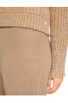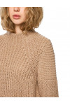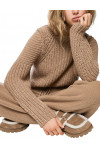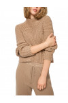 Светр виготовлено з вовни, кашеміру, поліаміду, шовку та поліестеру. Модель виконана в прямому крої. Має комір-стійку та довгі рукави з манжетами.