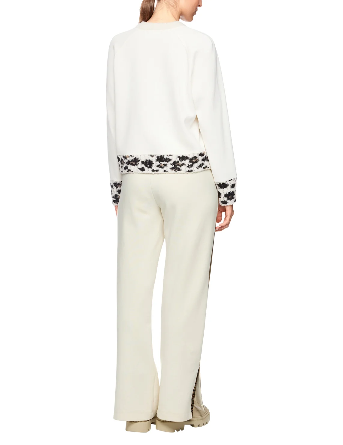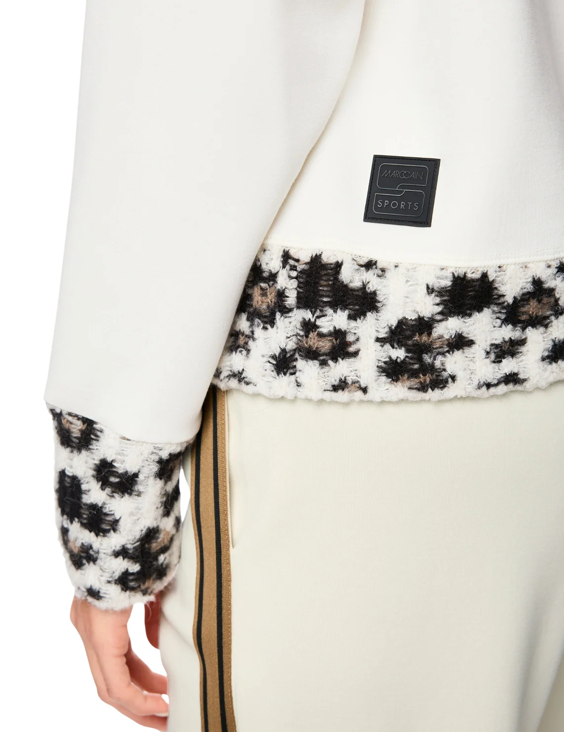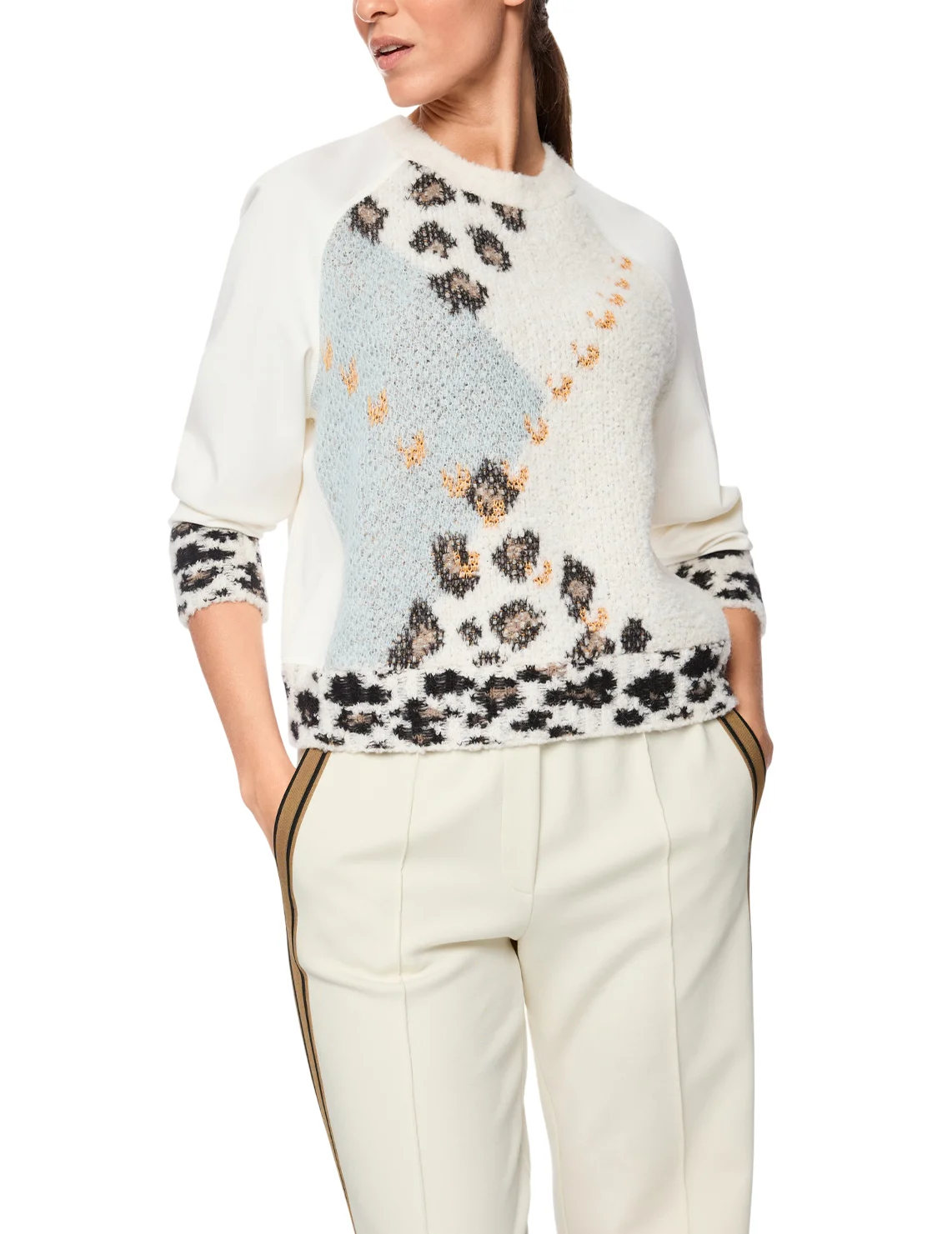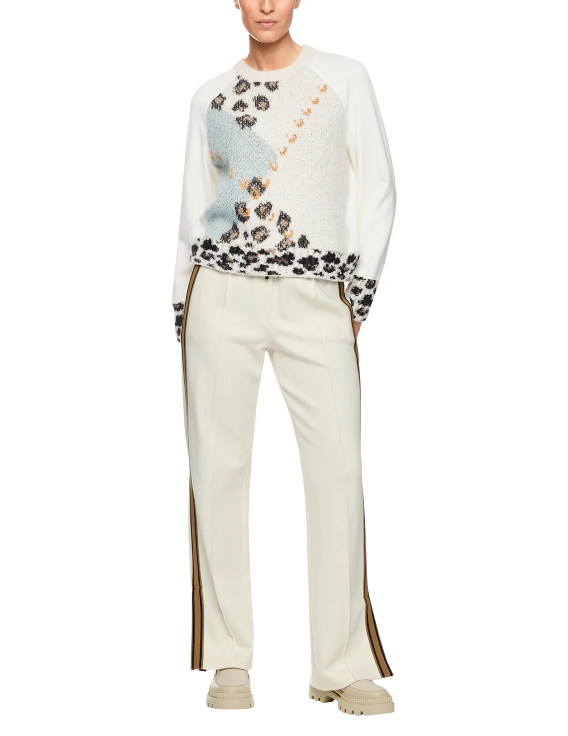Светр виготовлений із поліаміду, віскози та еластану. Модель виконана у вільному крої. Має круглий виріз горловини, занижену плечову лінію та довгі рукави з манжетами. Декорований оригінальним принтом.