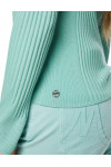 Светр виготовлений із вовни, віскози, поліаміду та кашеміру. Модель виконана в приталеному крої. Має комір-стійку та довгі рукави з манжетами.