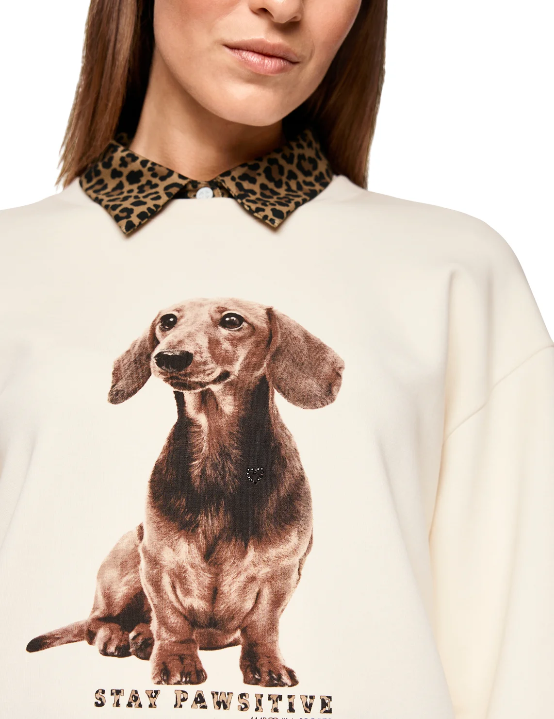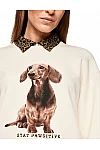 Світшот виготовлений із бавовни, поліестеру та еластану. Модель виконана у вільному крої. Має круглий виріз горловини, занижену плечову лінію та довгі рукави з манжетами. Декорований оригінальним принтом.
