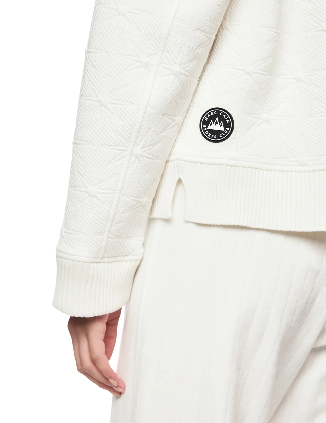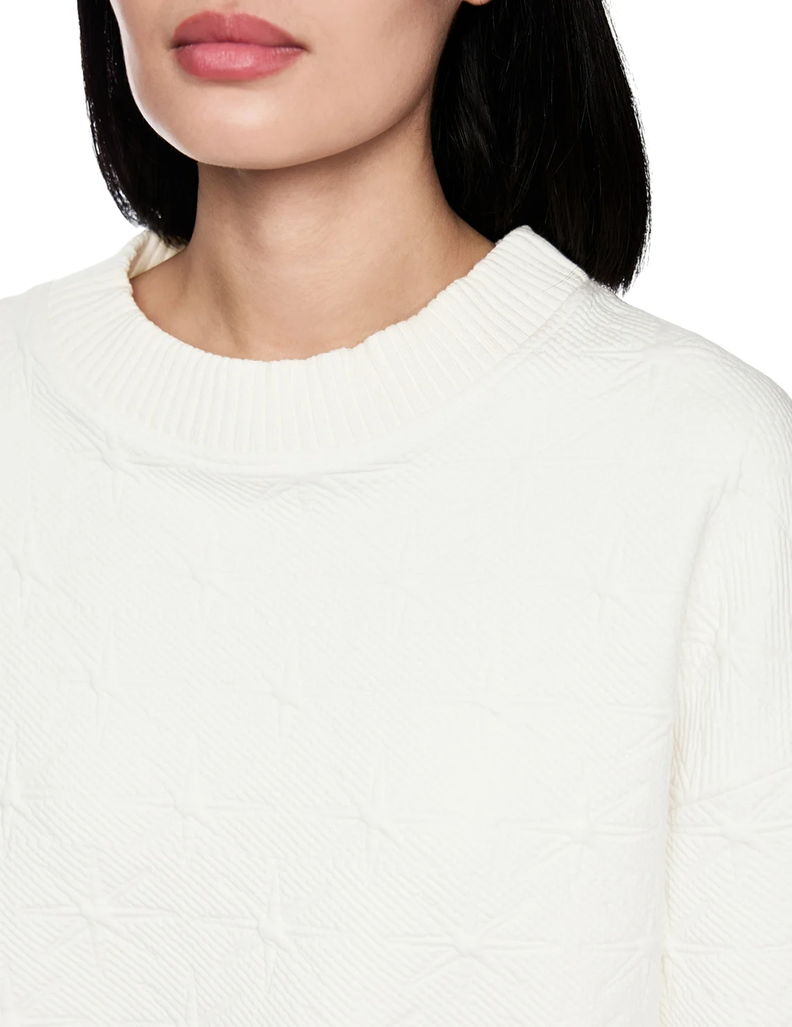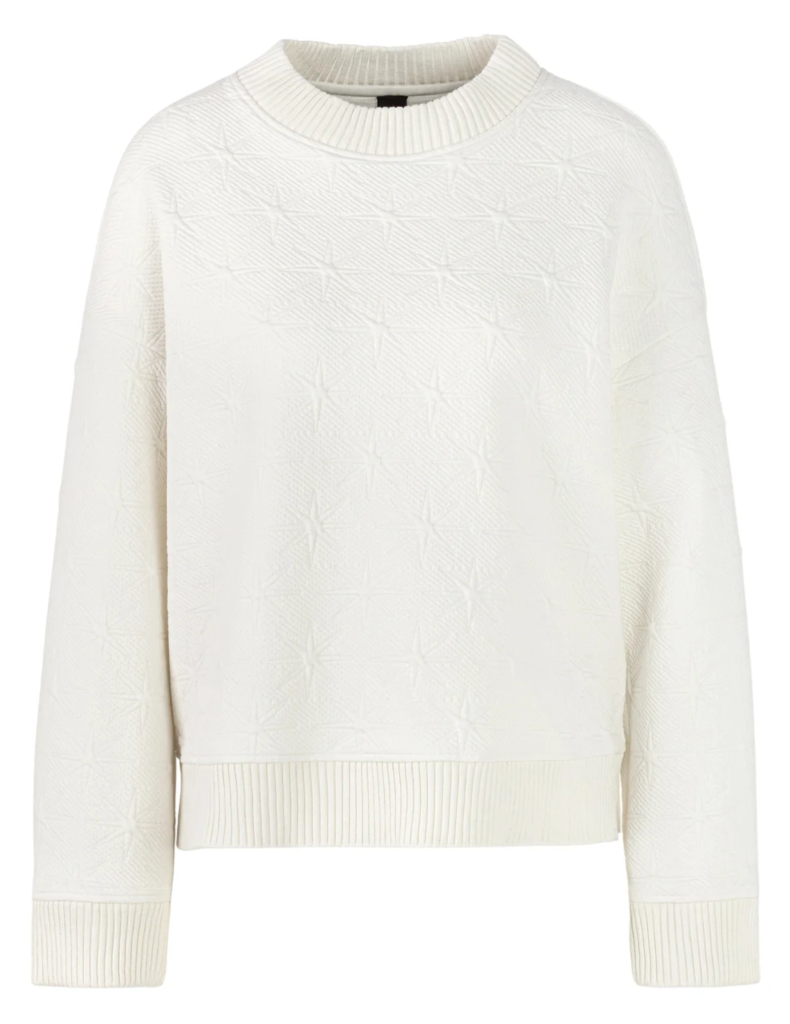 Світшот виготовлений із бавовни, поліестеру та еластану. Модель виконана у вільному крої. Має круглий виріз горловини, занижену плечову лінію та довгі рукави з манжетами. Декорований оригінальним візерунком.