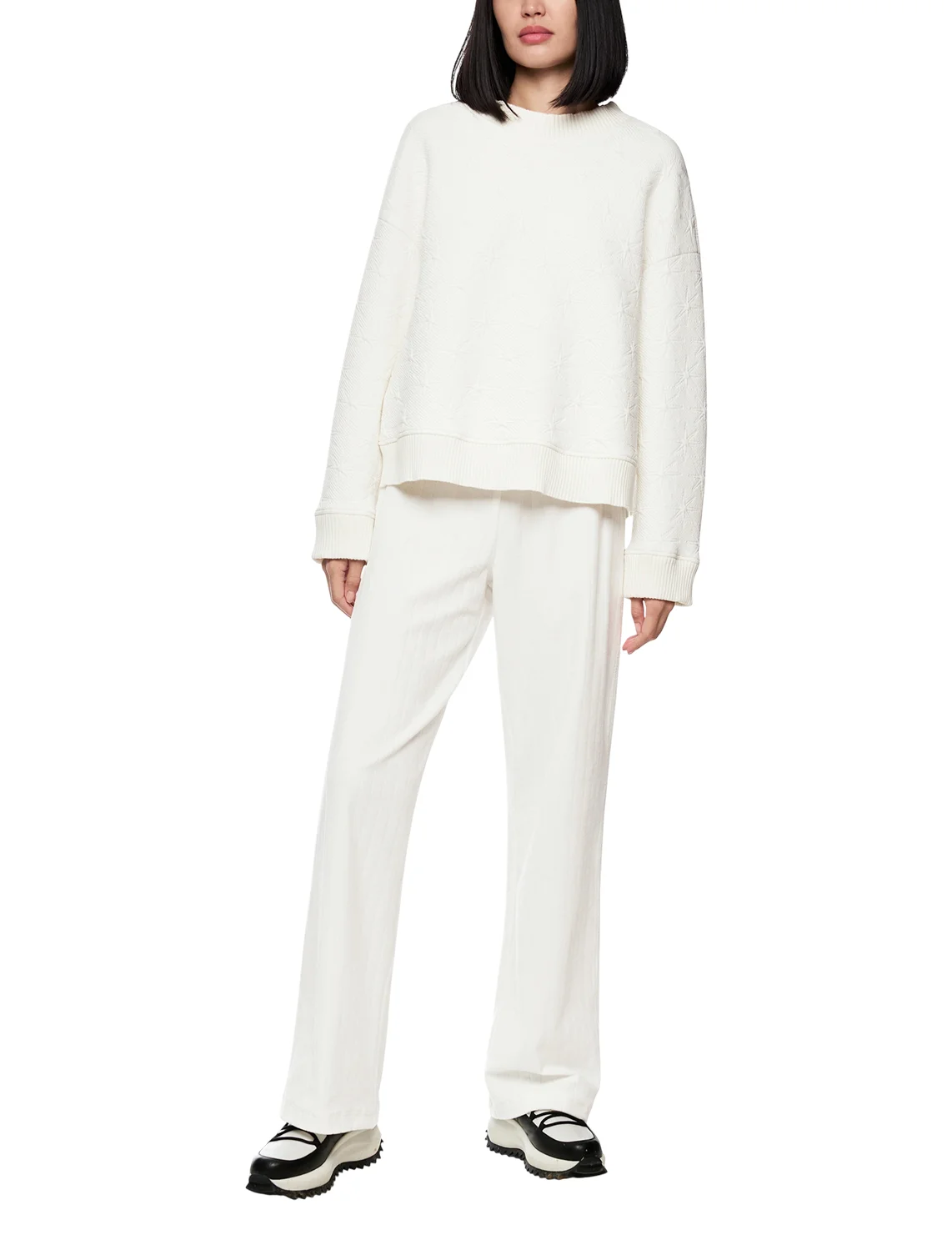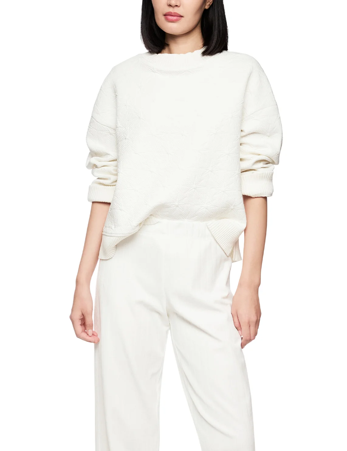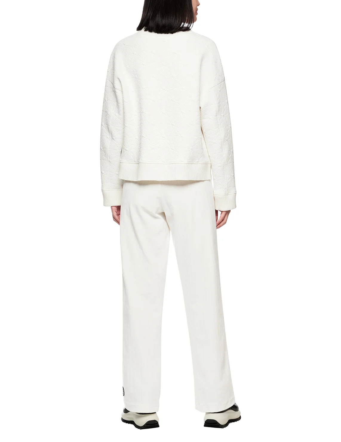 Світшот виготовлений із бавовни, поліестеру та еластану. Модель виконана у вільному крої. Має круглий виріз горловини, занижену плечову лінію та довгі рукави з манжетами. Декорований оригінальним візерунком.