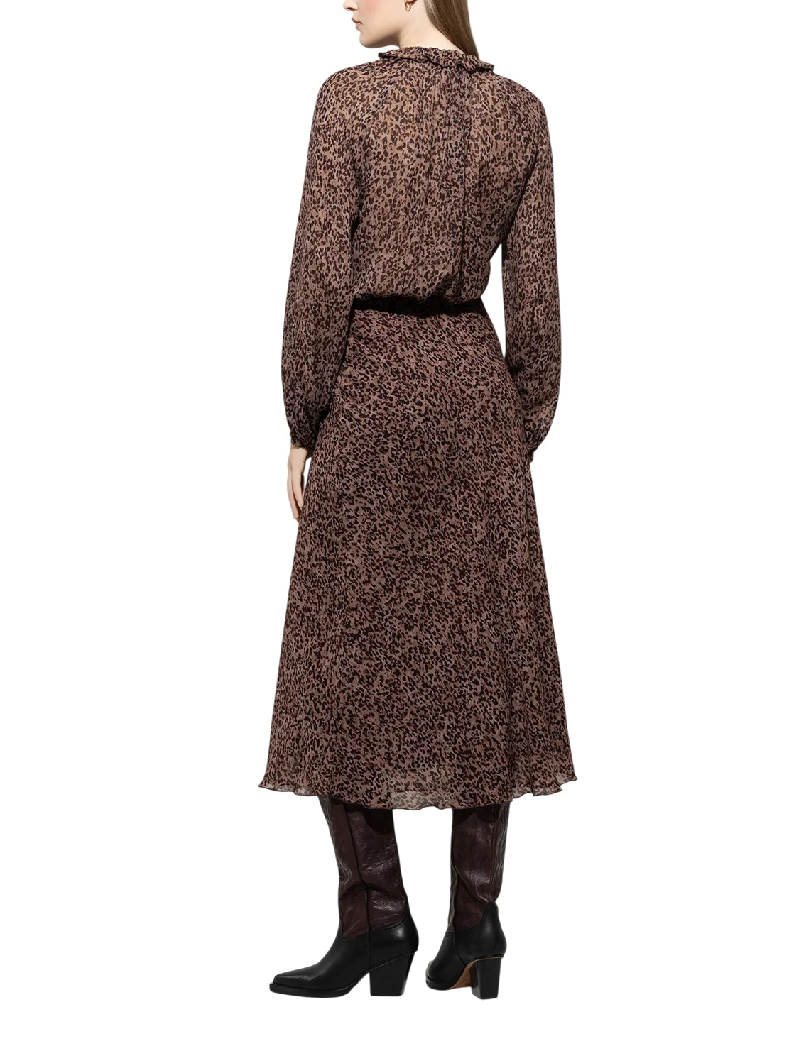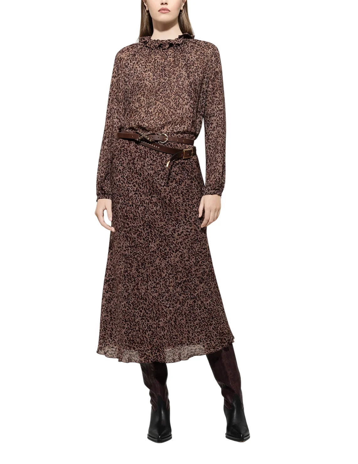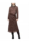 Спідниця виготовлена зі 100% віскози, підкладка також з віскози. Модель довжини міді виконана в розкльошеному крої. Має еластичний пояс та анімалістичний принт.