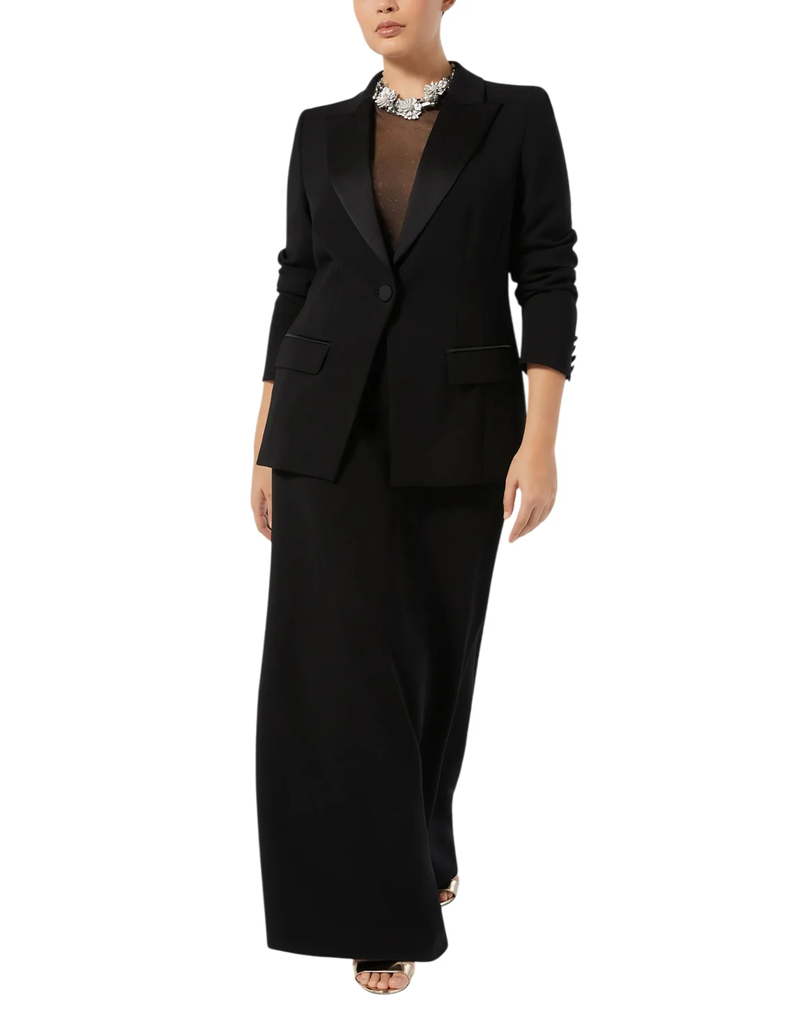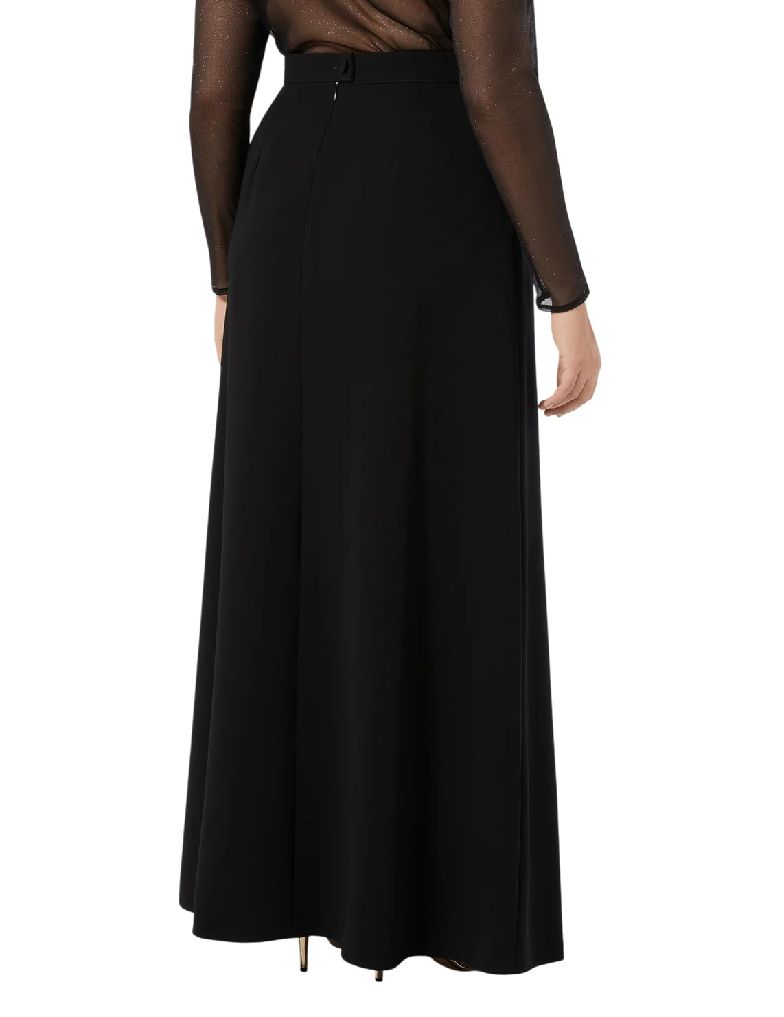 Спідниця виготовлена з триацетату і поліестеру, підкладка з ацетату і поліестеру. Модель довжини максі виконана в розкльошеному крої. Має приховану застібку-блискавку та ґудзик ззаду.